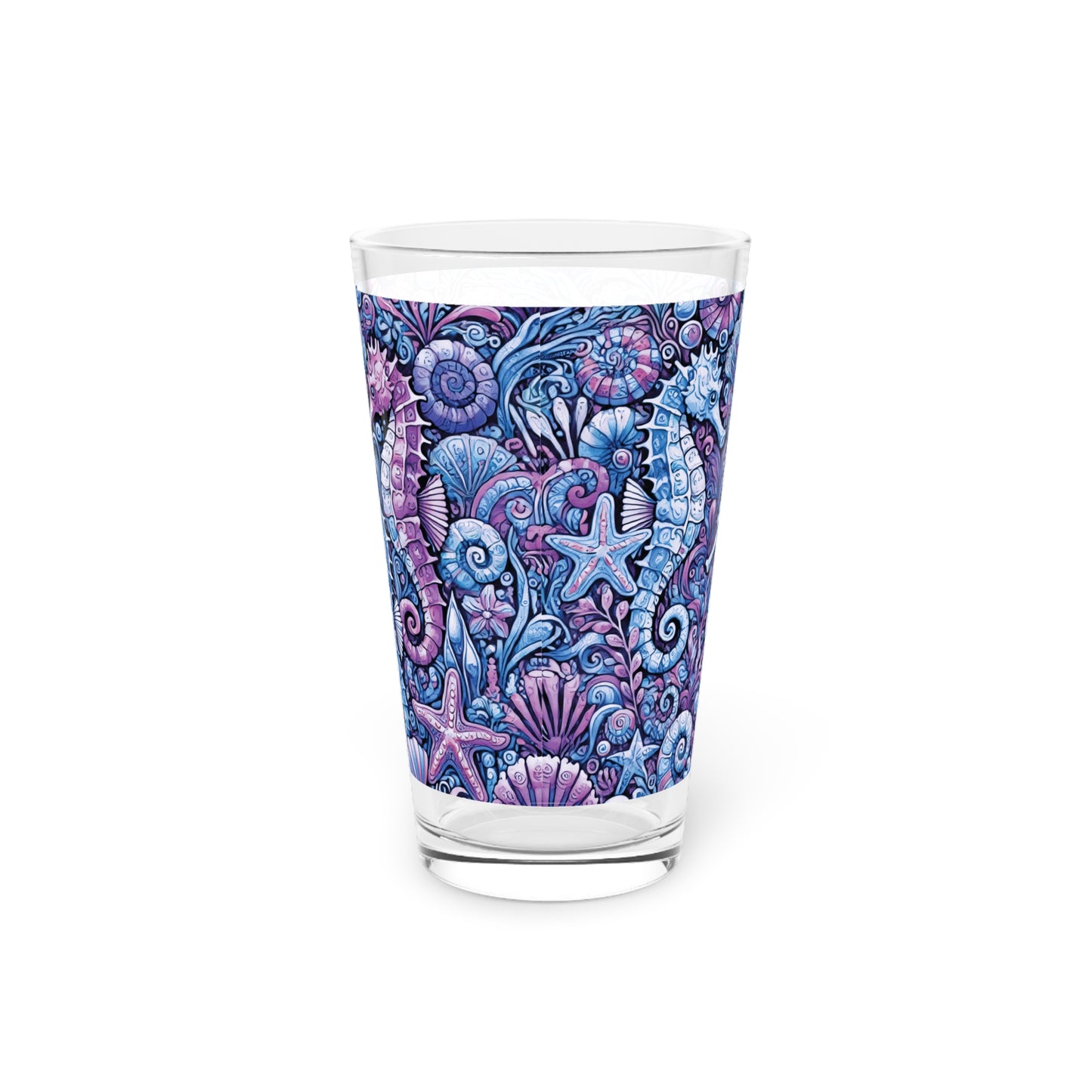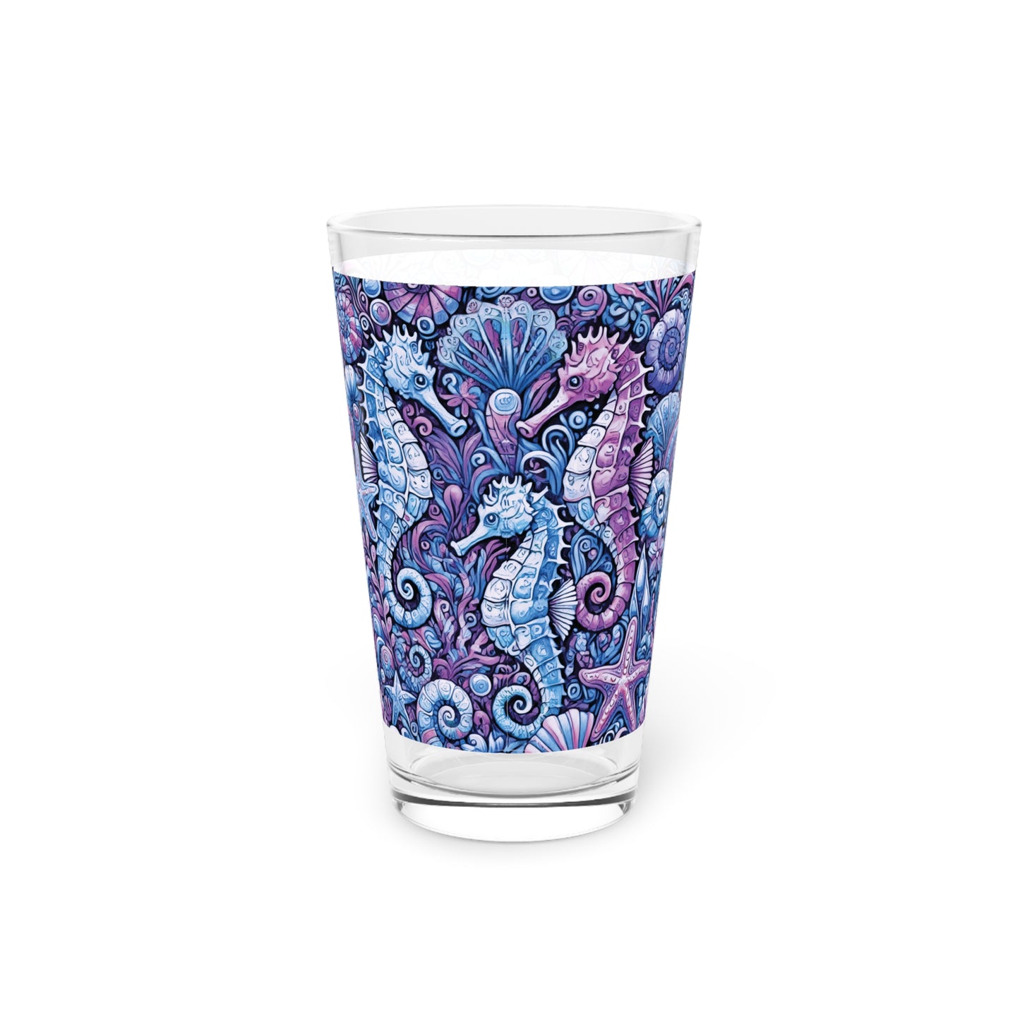 Pint Glass, 16oz - Seahorse Trio Blue
