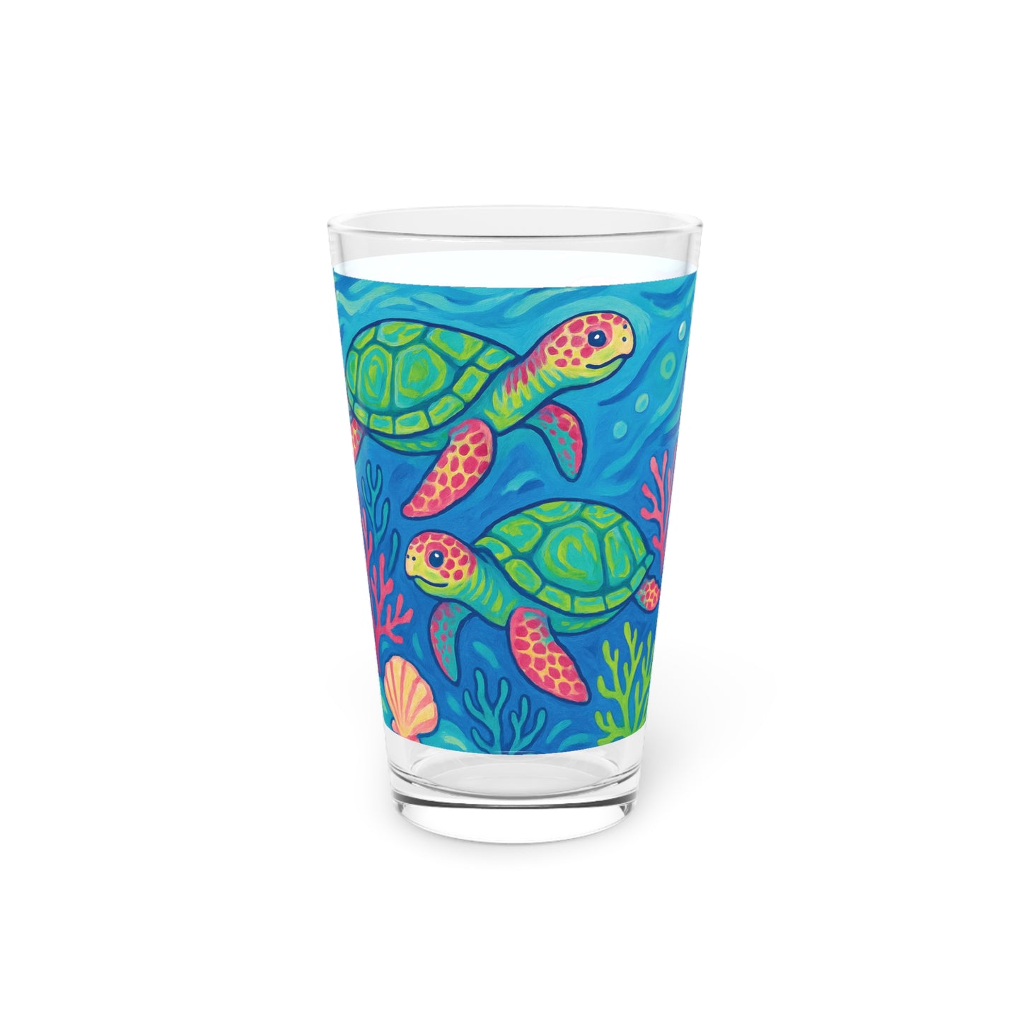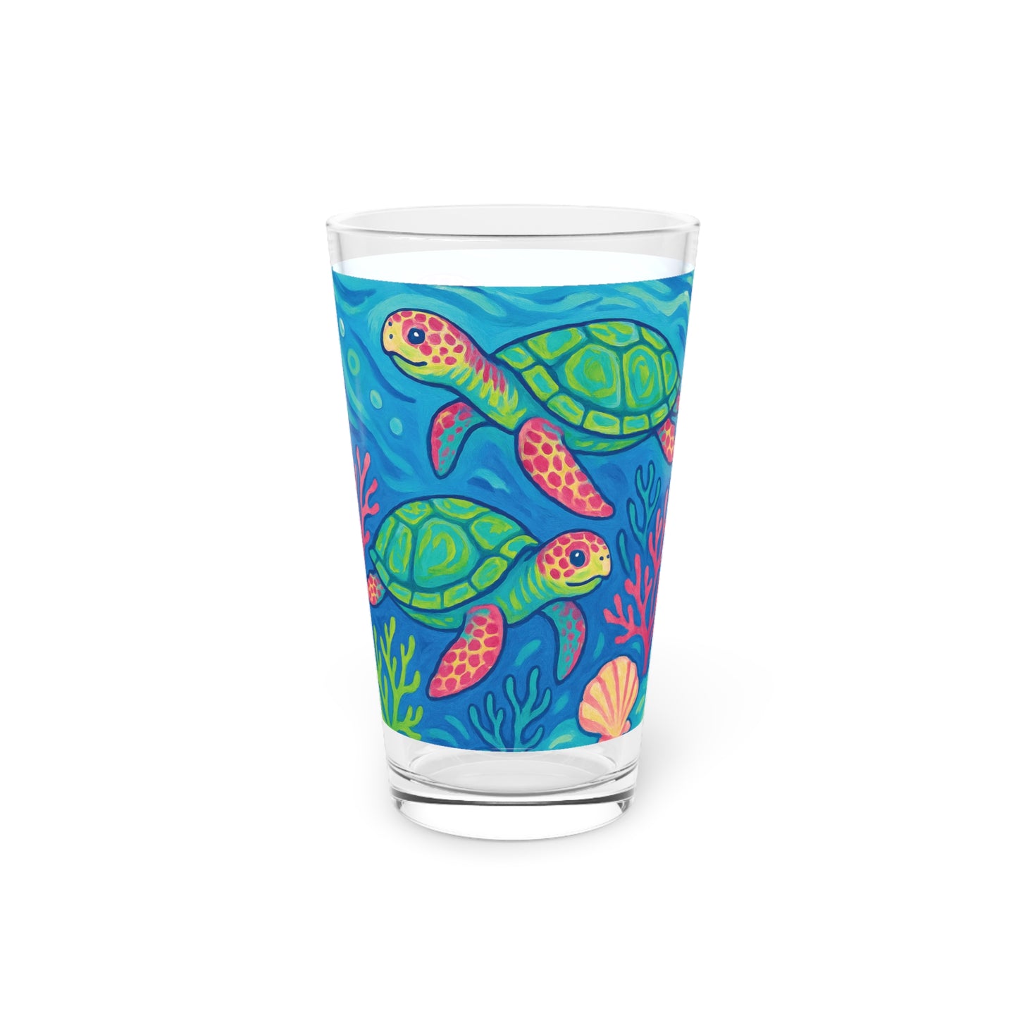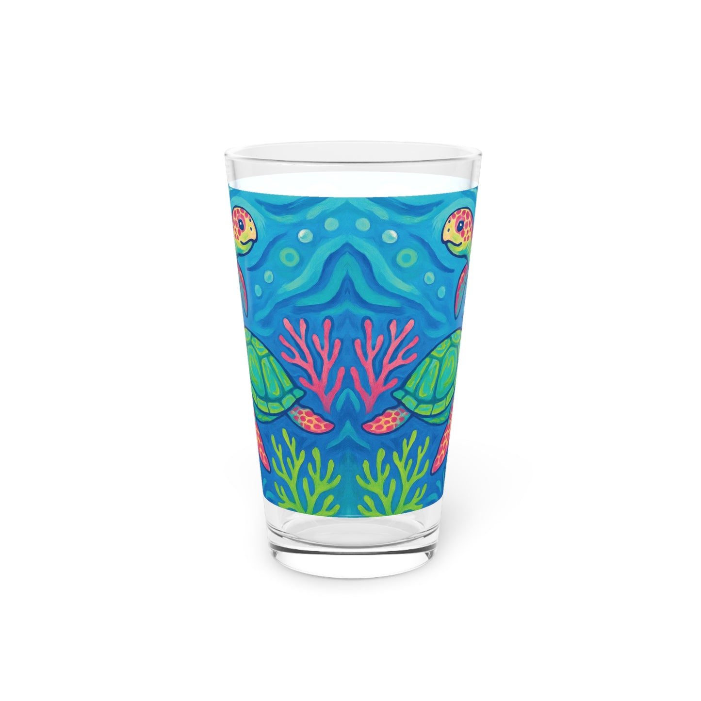 Pint Glass, 16oz - Turtles and Coral
