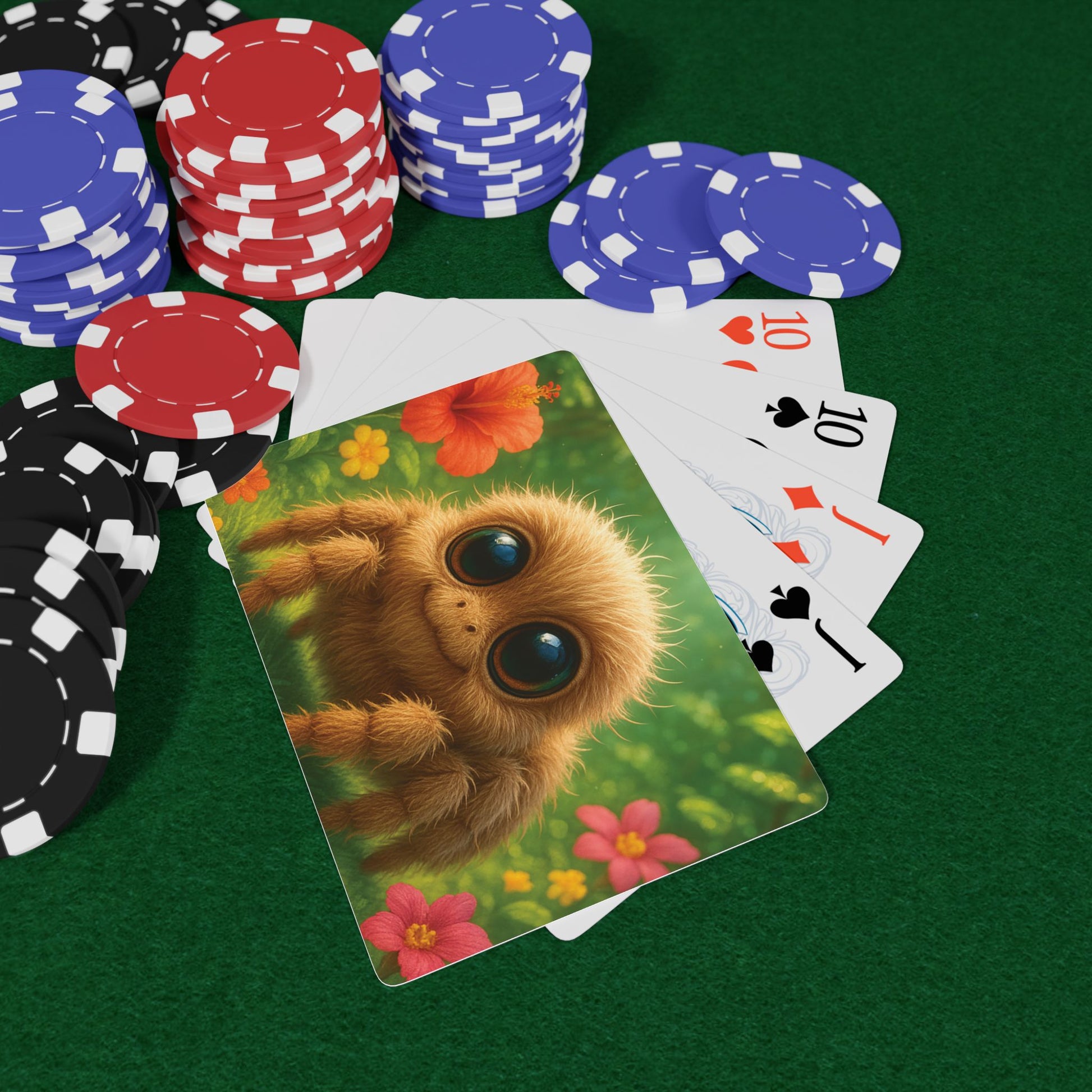 Elevate your game night with our baby spider in a rainforest taking you on a virtual tropical vacation. Crafted from smooth, premium-coated cardstock, these cards slide effortlessly across the table, ensuring perfect shuffling and dealing every time. Ideal for poker enthusiasts and casual gamers alike, this deck brings friends and family together for some friendly competition. Perfect for birthdays, game nights, or holiday gatherings, these cards create a lively and fun atmosphere. They also make a great gift for any poker lover! Enjoy a night filled with strategy and camaraderie with this beautifully designed deck.