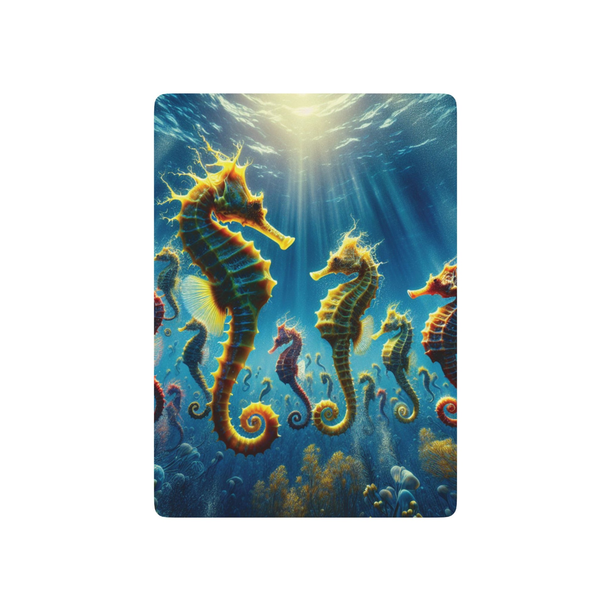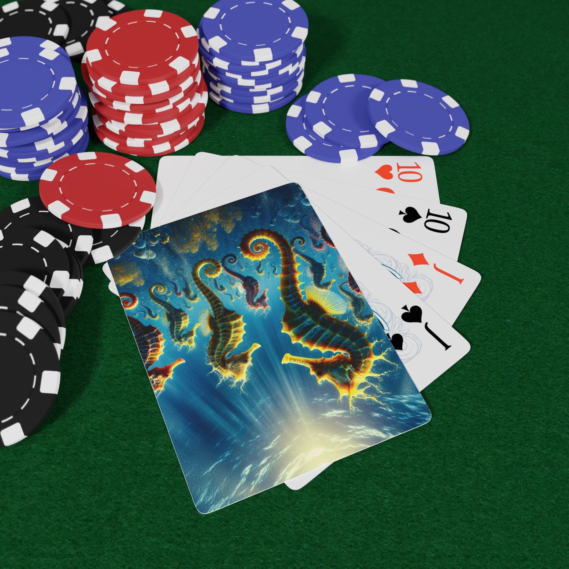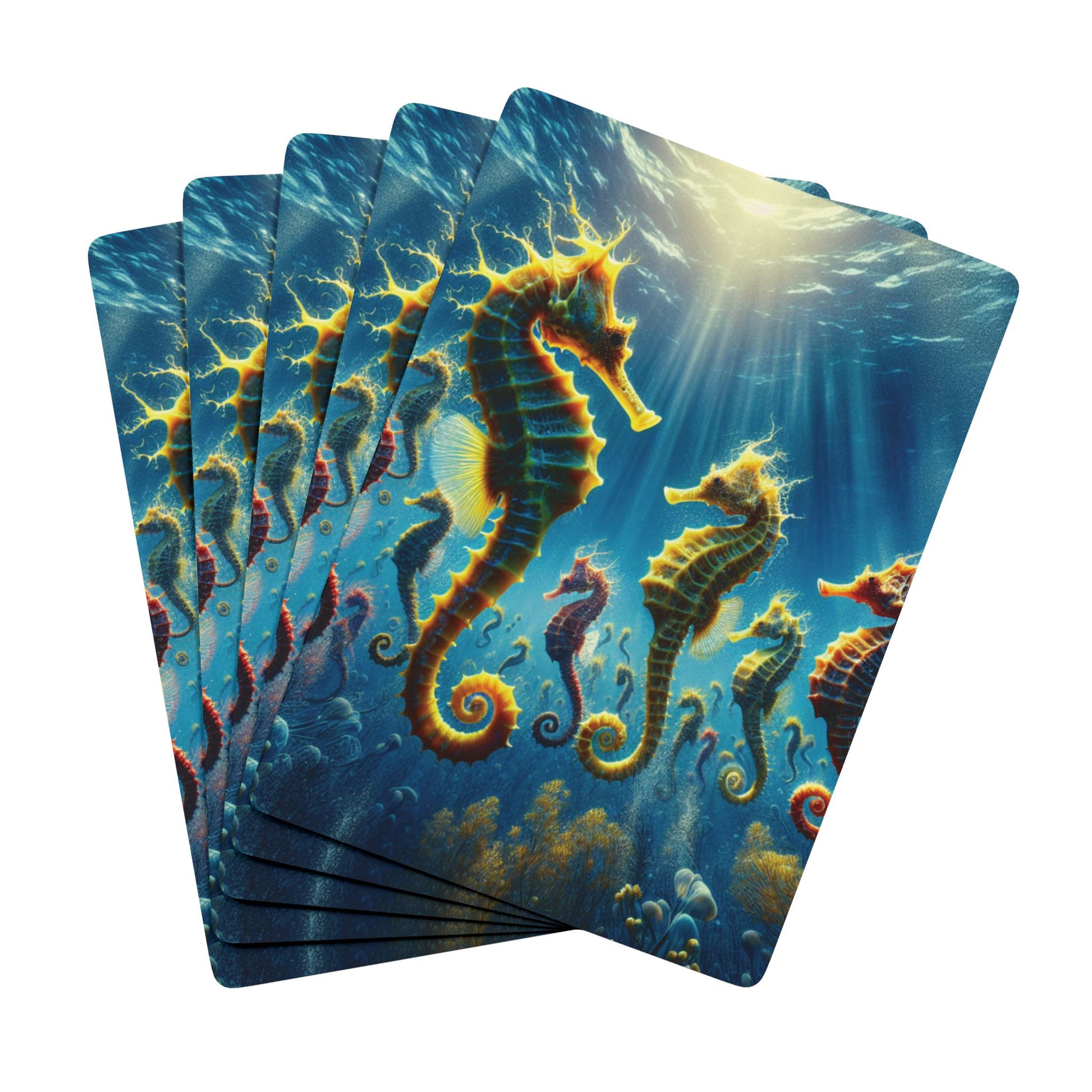 Elevate your game night with our design of seahorses at a party taking you on a virtual tropical vacation. Crafted from smooth, premium-coated cardstock, these cards slide effortlessly across the table, ensuring perfect shuffling and dealing every time. Ideal for poker enthusiasts and casual gamers alike, this deck brings friends and family together for some friendly competition. Perfect for birthdays, game nights, or holiday gatherings, these cards create a lively and fun atmosphere. They also make a great gift for any poker lover! Enjoy a night filled with strategy and camaraderie with this beautifully designed deck.