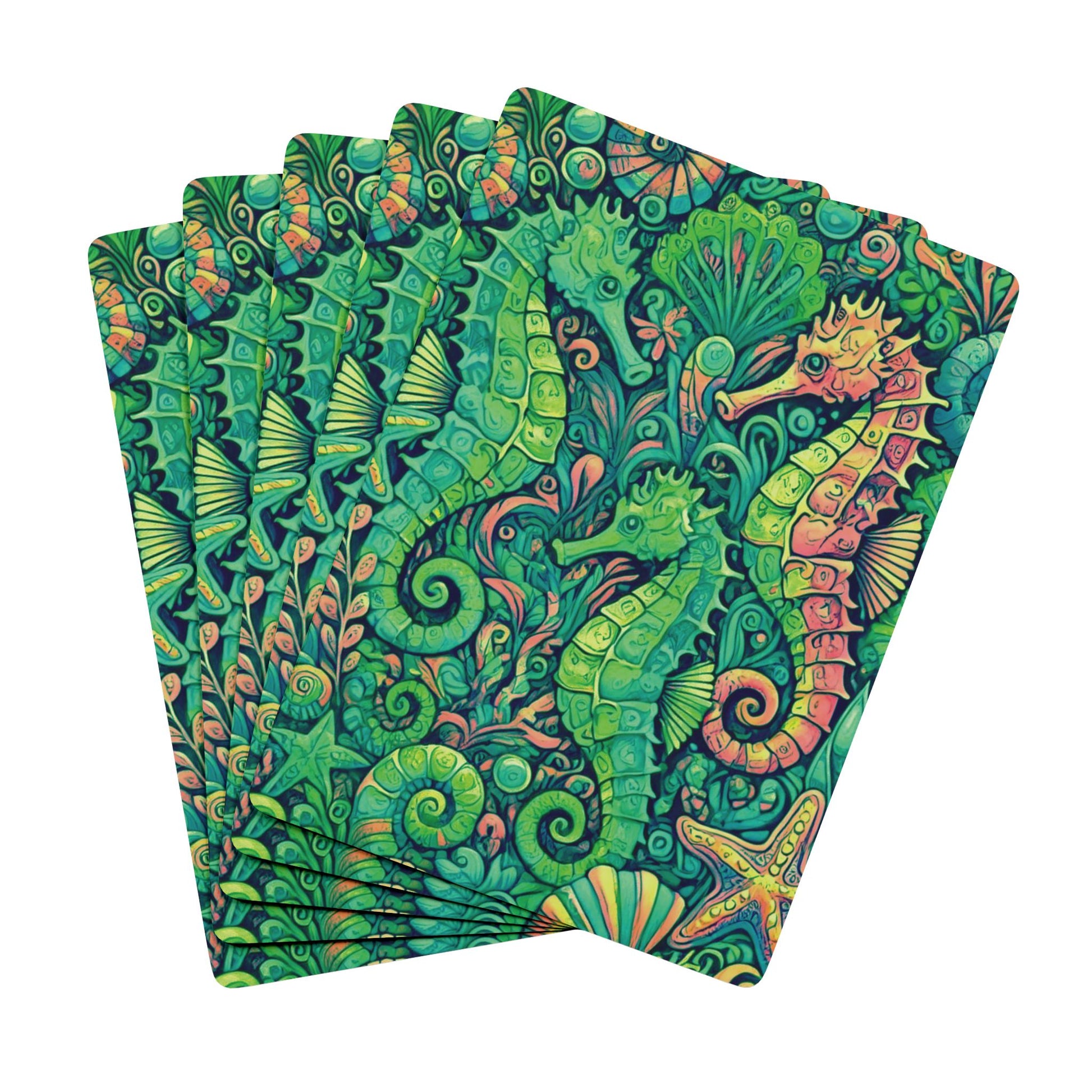Elevate your game night with our lovely seahorse design. Each card boasts art that pops, making every hand exciting and visually engaging. Crafted from smooth, premium-coated cardstock, these cards slide effortlessly across the table, ensuring perfect shuffling and dealing every time. Ideal for poker enthusiasts and casual gamers alike, this deck brings friends and family together for some friendly competition. Perfect for birthdays, game nights, or holiday gatherings, these cards create a lively and fun atmosphere. They also make a great gift for any poker lover! Enjoy a night filled with strategy and camaraderie with this beautifully designed deck.