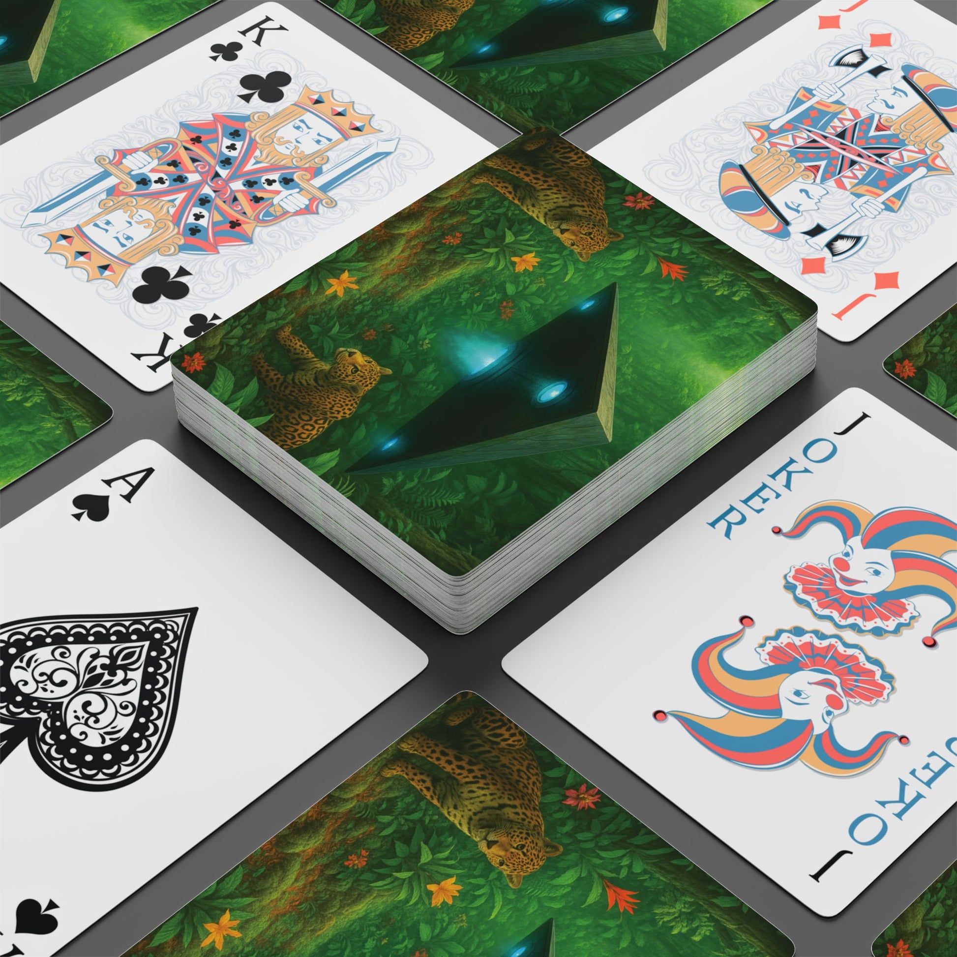 Elevate your game night with our design of UFO and jaguars taking you on a virtual tropical vacation. Crafted from smooth, premium-coated cardstock, these cards slide effortlessly across the table, ensuring perfect shuffling and dealing every time. Ideal for poker enthusiasts and casual gamers alike, this deck brings friends and family together for some friendly competition. Perfect for birthdays, game nights, or holiday gatherings, these cards create a lively and fun atmosphere. They also make a great gift for any poker lover! Enjoy a night filled with strategy and camaraderie with this beautifully designed deck.