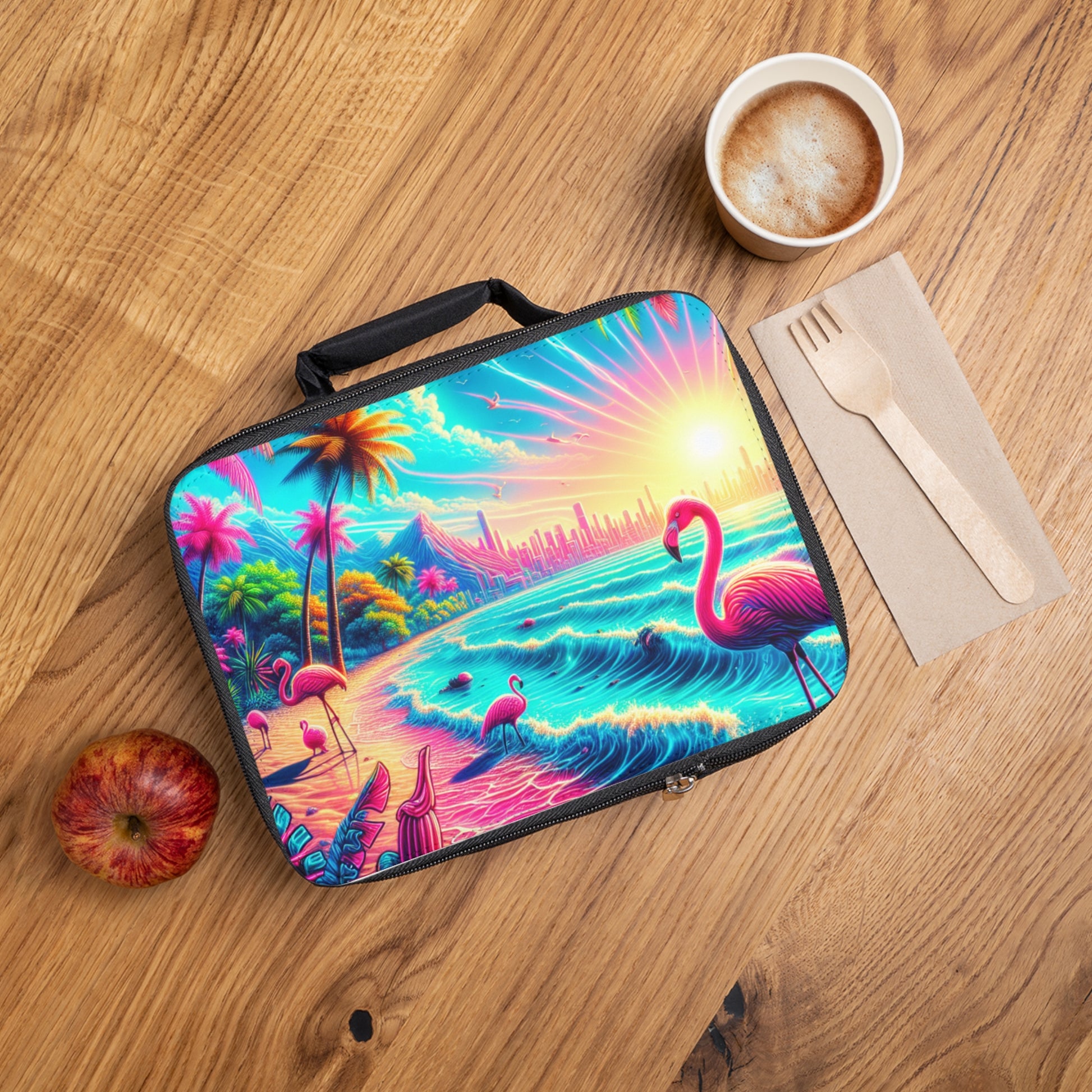 Pop Art Flamingo Beach Lunch Bag - Eco-Friendly Insulated Tote, Adult and Child Lunchbox / Perfect for Picnics, Beach Outings