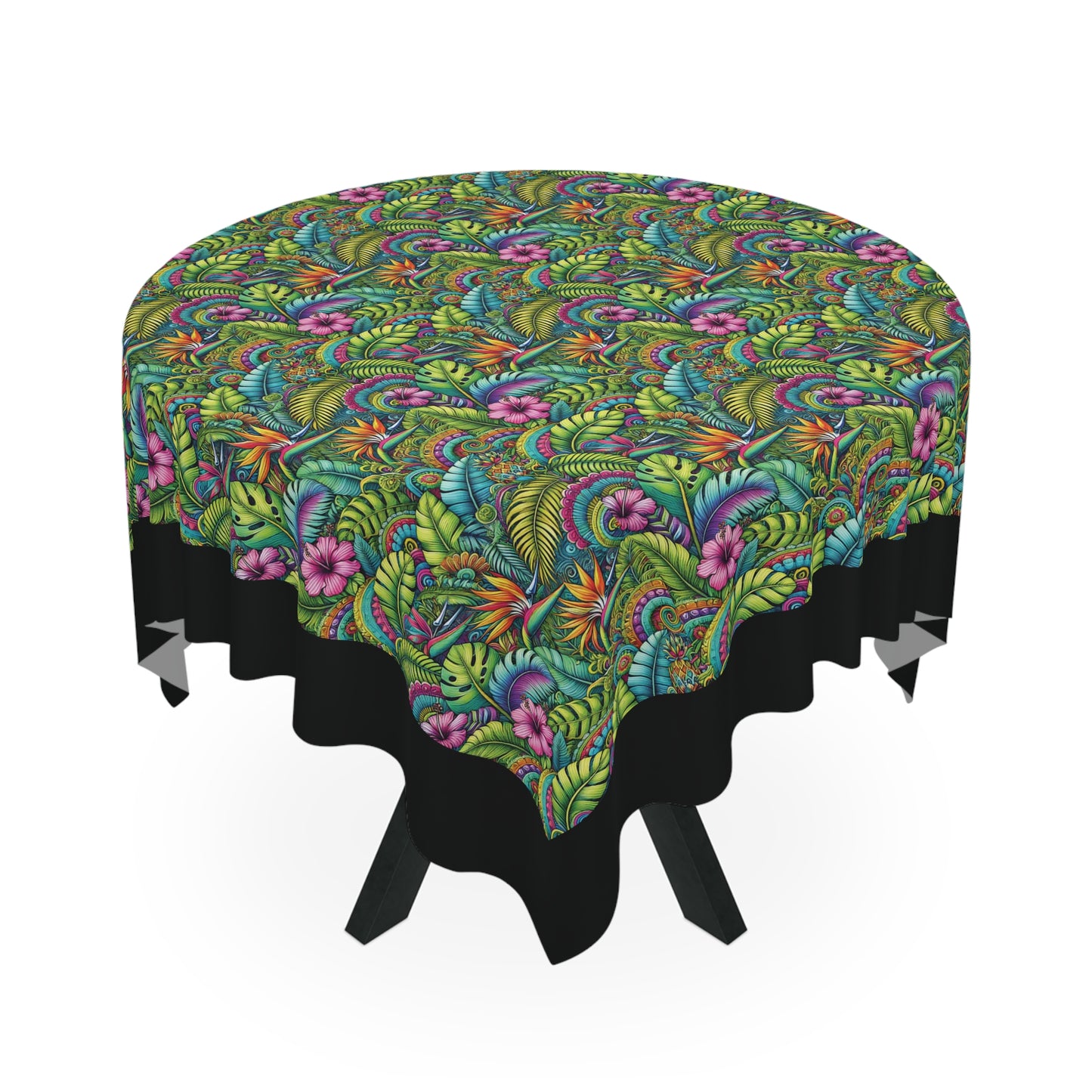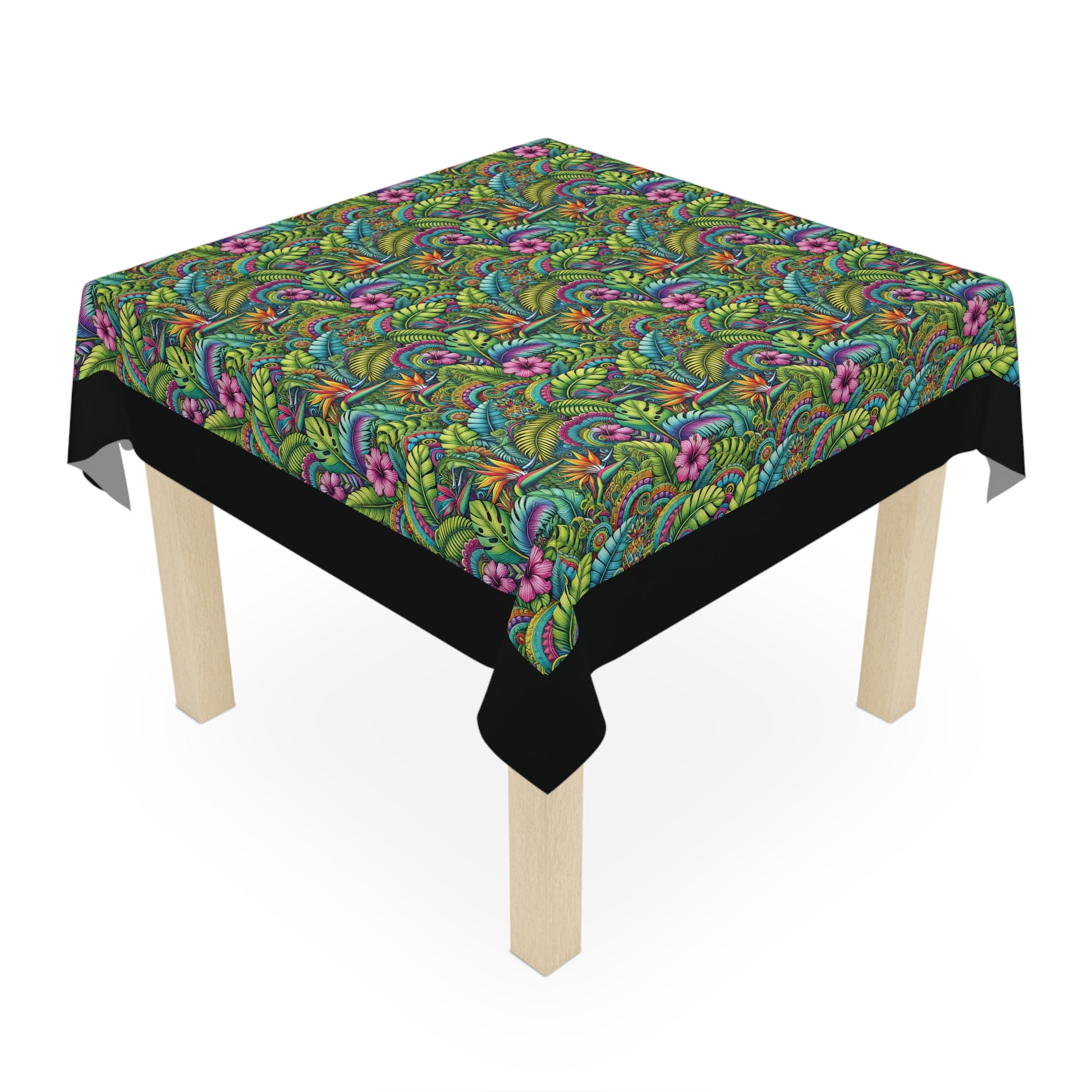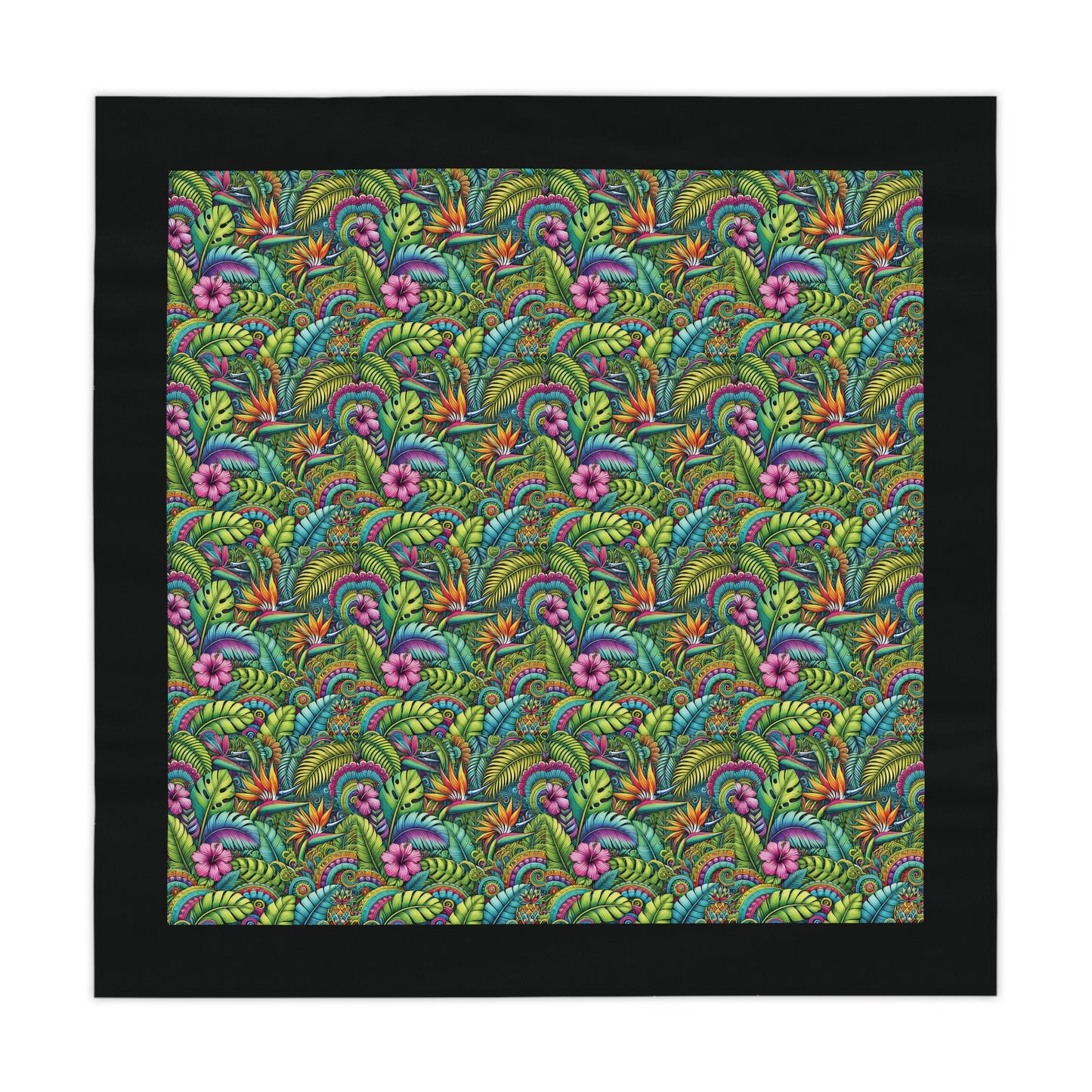 Rainforest Blooms/Black ~ Square Tablecloth, 55" x 55"