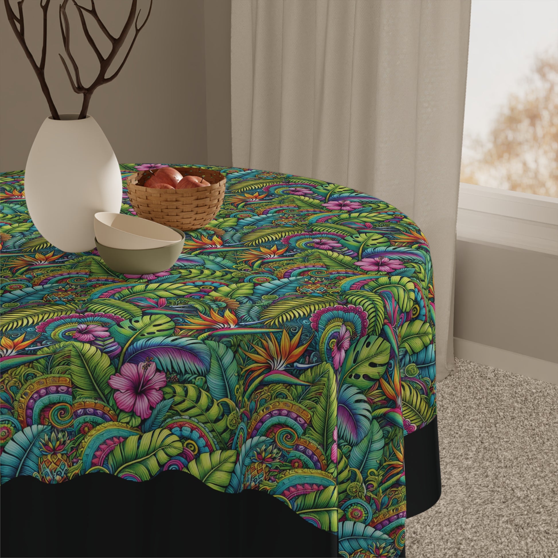Add lovely tropical flowers to your dining experience with this beautiful tablecloth. Crafted from 100% polyester, this one-size 55.1" x 55.1" square table decor it's not only durable but also retains its shape while drying quickly. The full-print design brings to life a stunning array of colors, making it the perfect centerpiece for any meal or gathering. Lightweight and soft to the touch, this tablecloth creates an inviting atmosphere, ideal for both casual family dinners and festive occasions. Perfect for those who love to host, entertain, or simply enjoy a beautifully adorned table. This tablecloth is ideal for holidays, celebrations, or cozy dinners at home, enriching every event with its lively charm. Suitable for enthusiasts of home decor, gardening, and nature-inspired designs, it adds a splash of style to any setting.