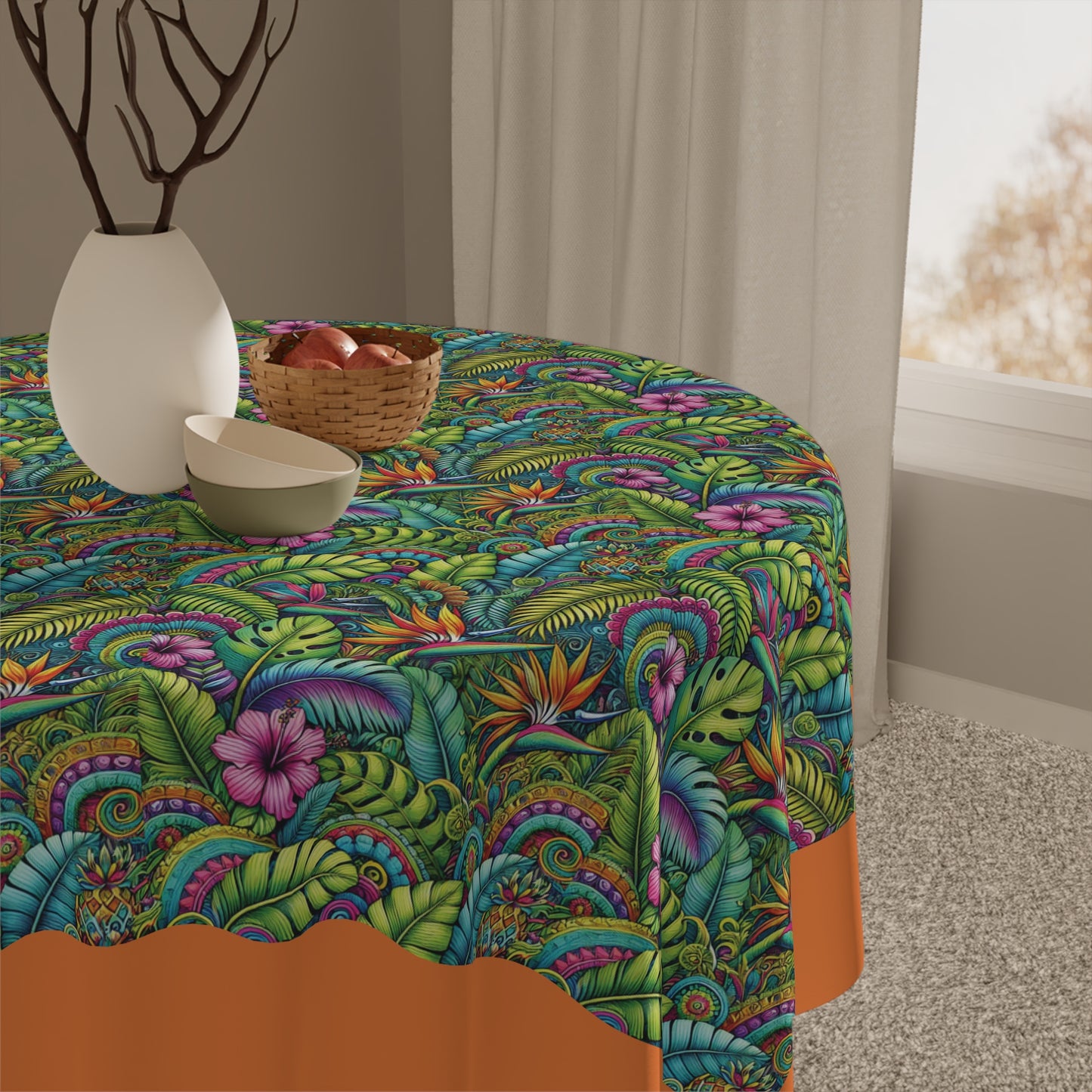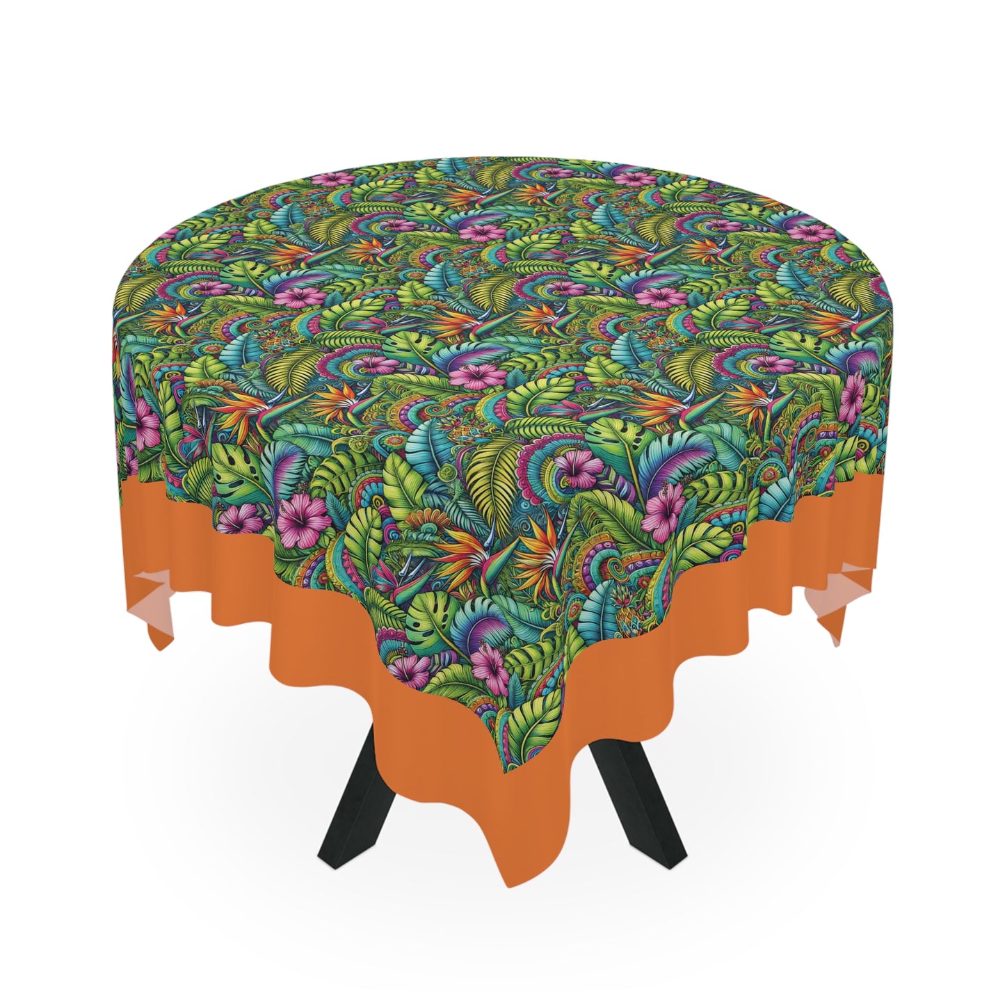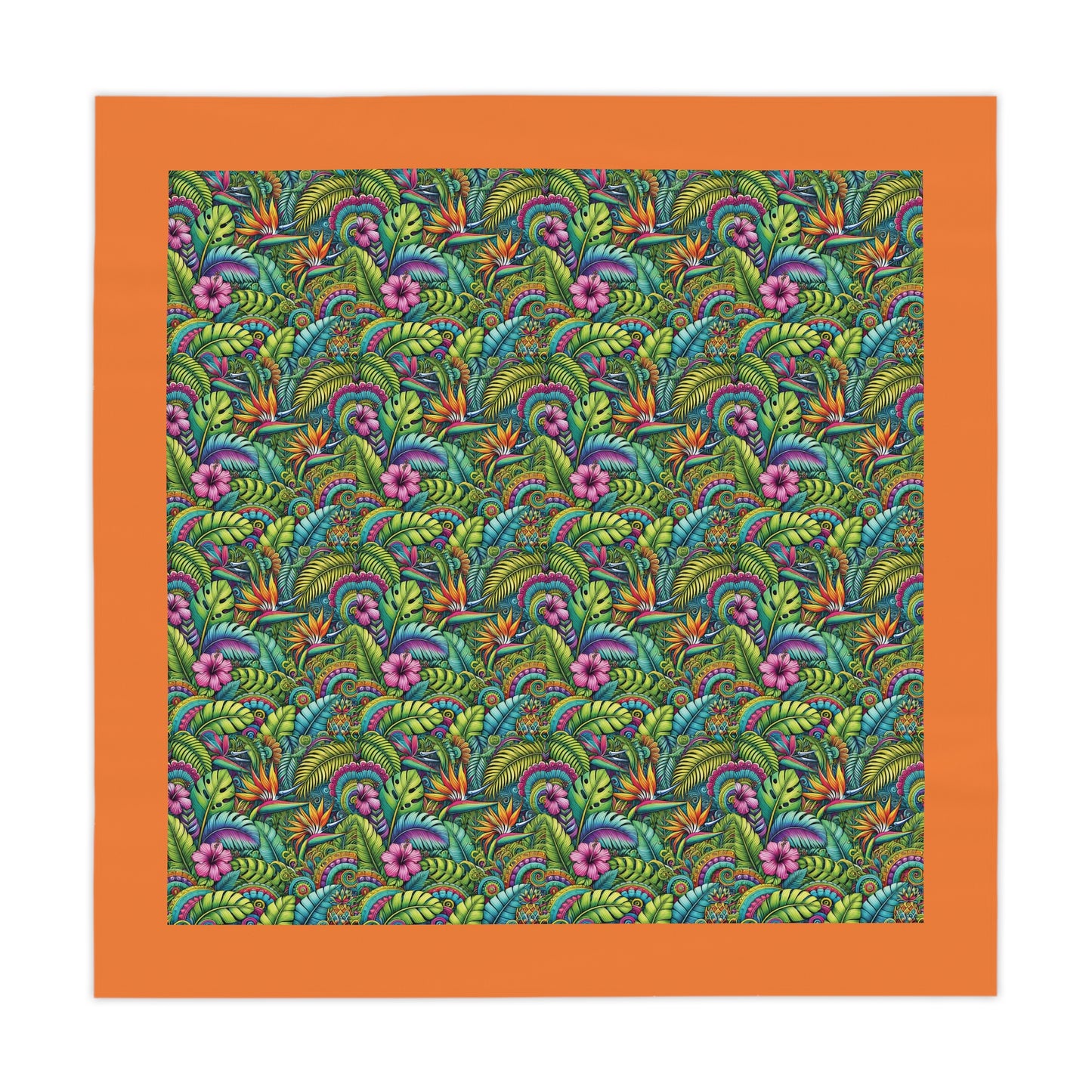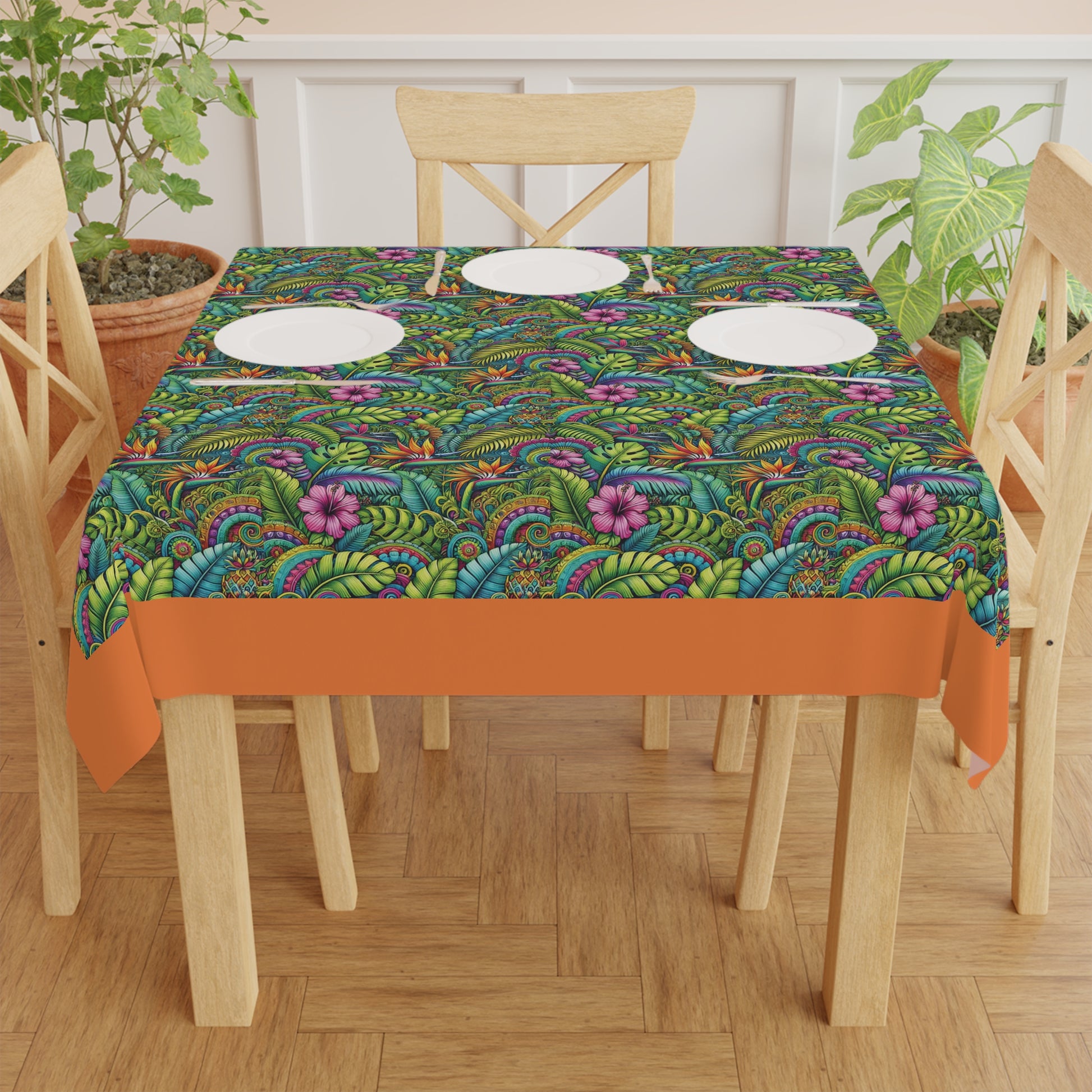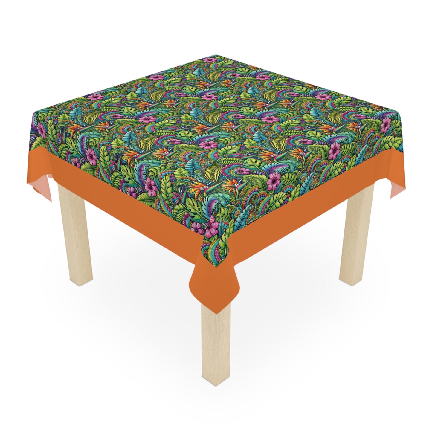 Rainforest Blooms/Crusta Orange ~ Square Tablecloth, 55" x 55"