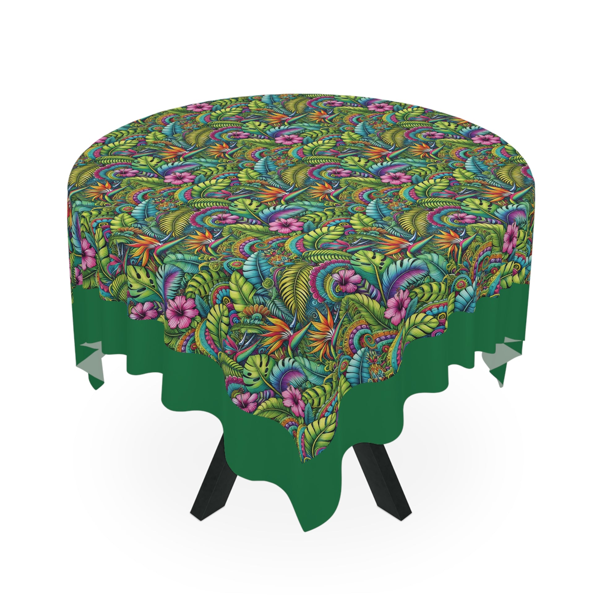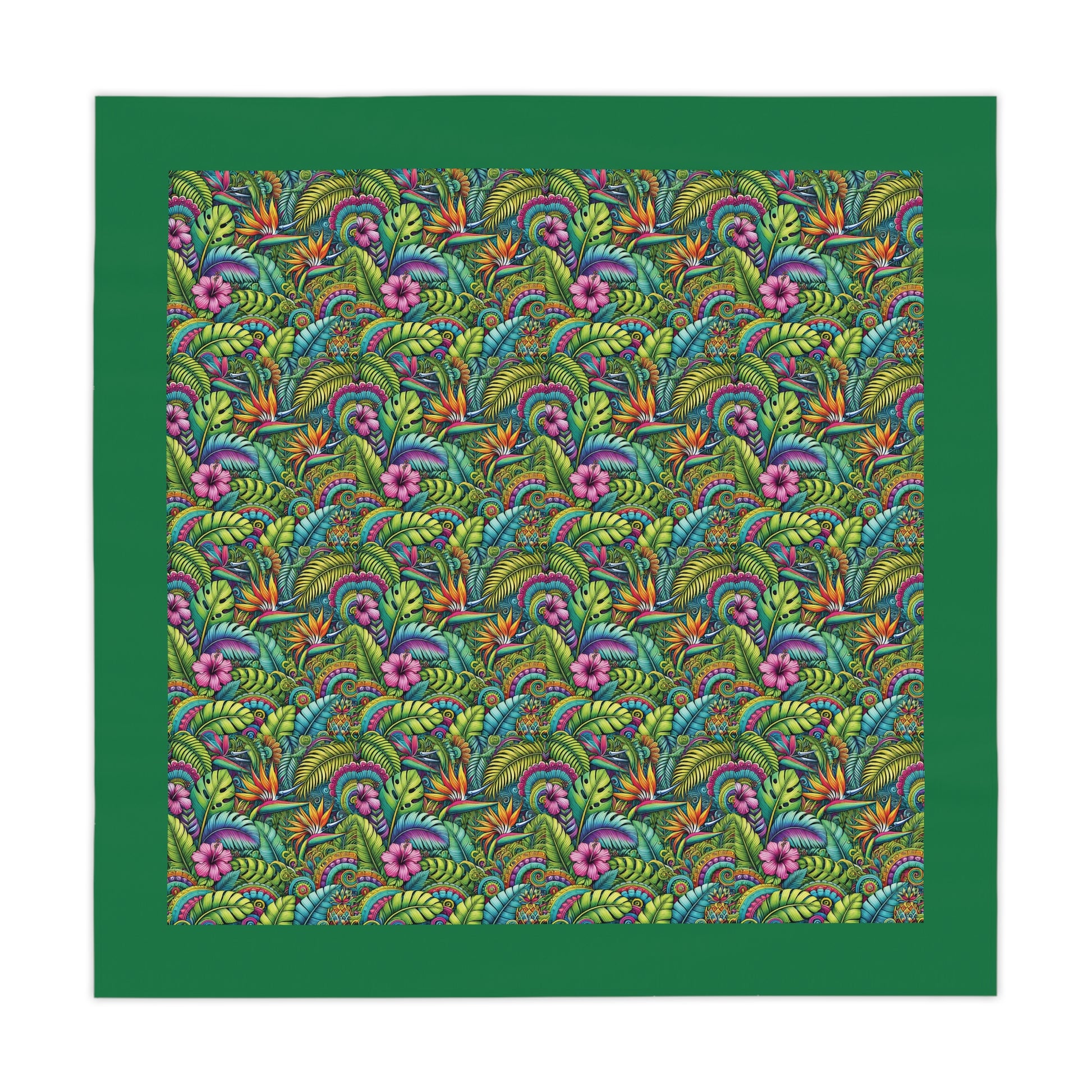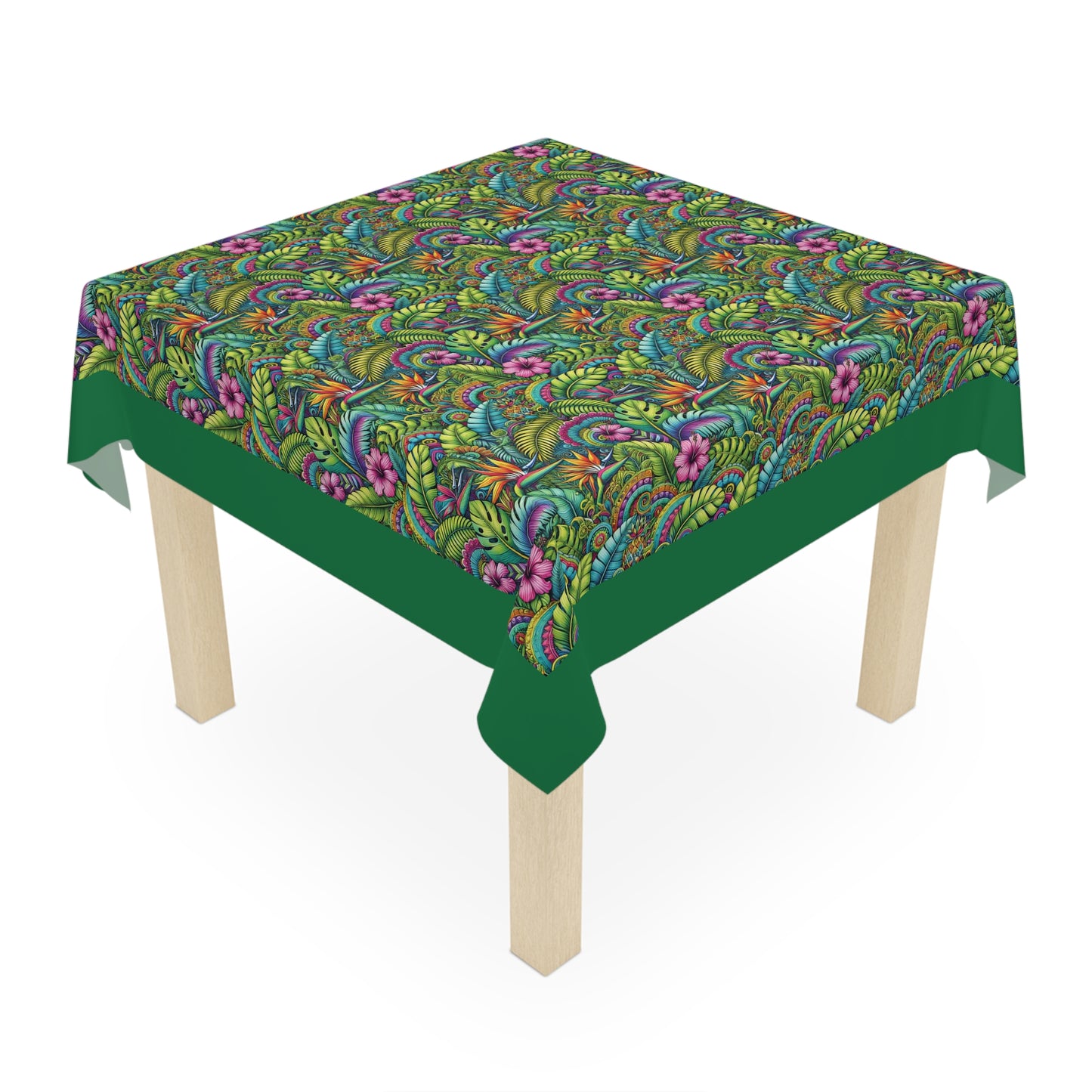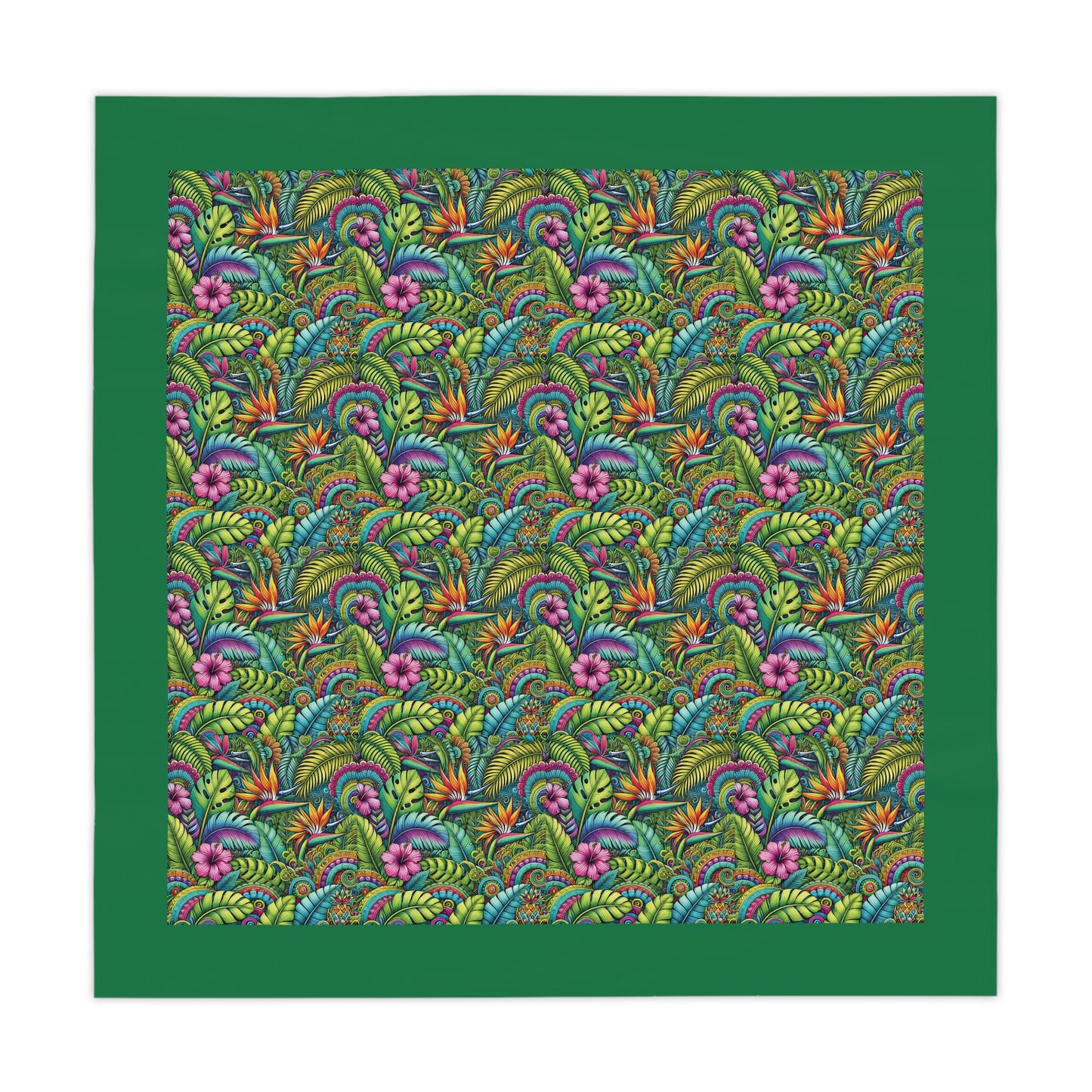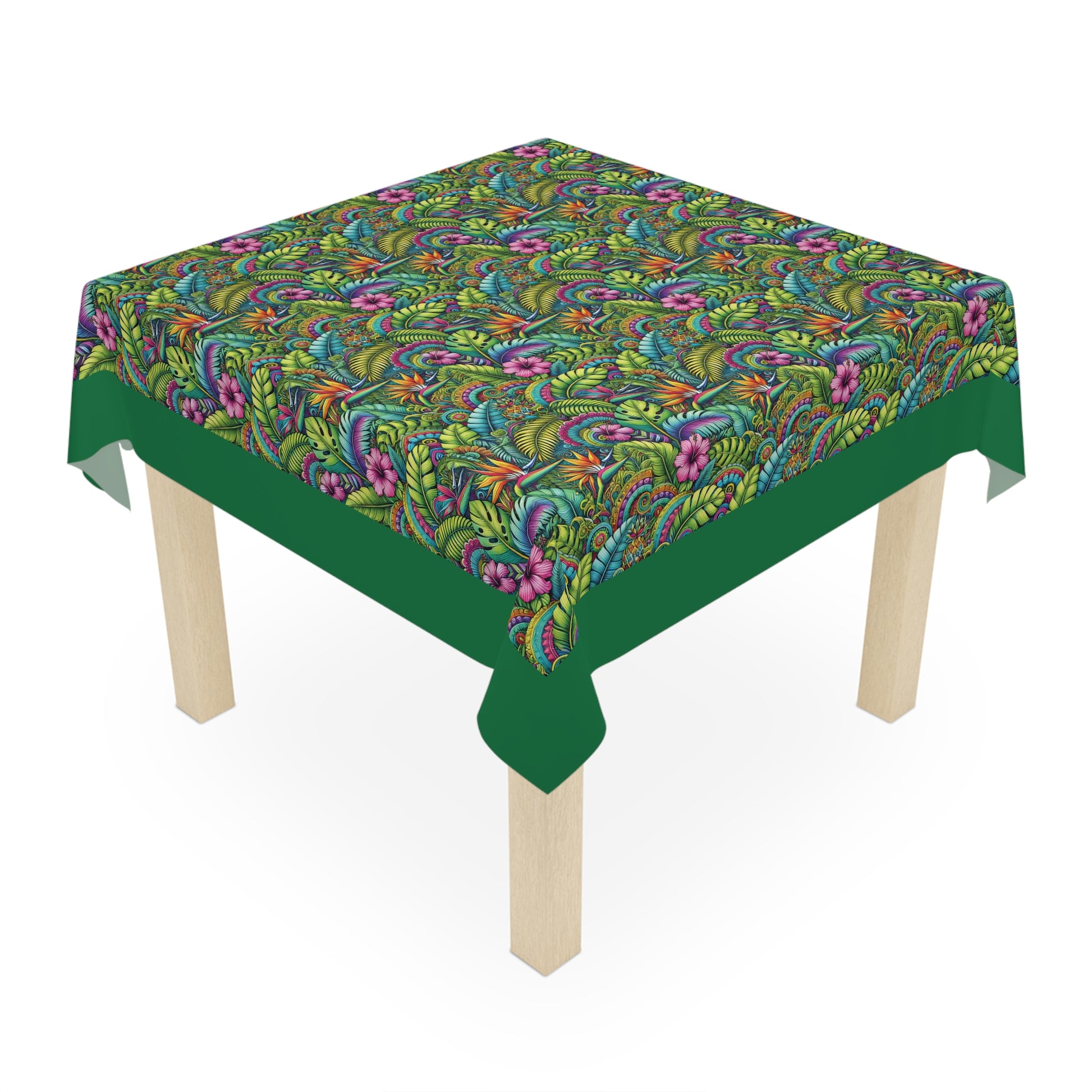 Rainforest Blooms/Dark Green ~ Square Tablecloth, 55" x 55"