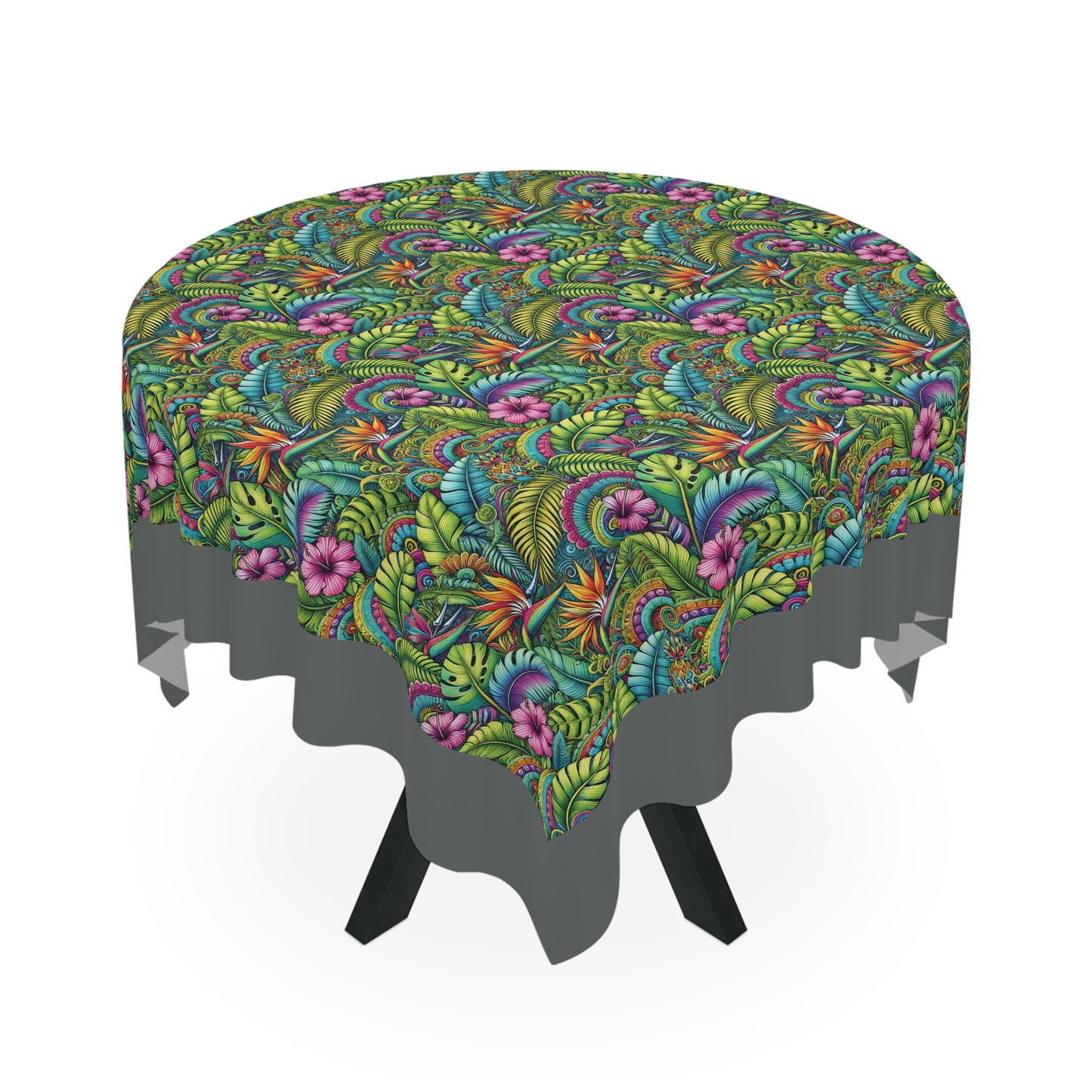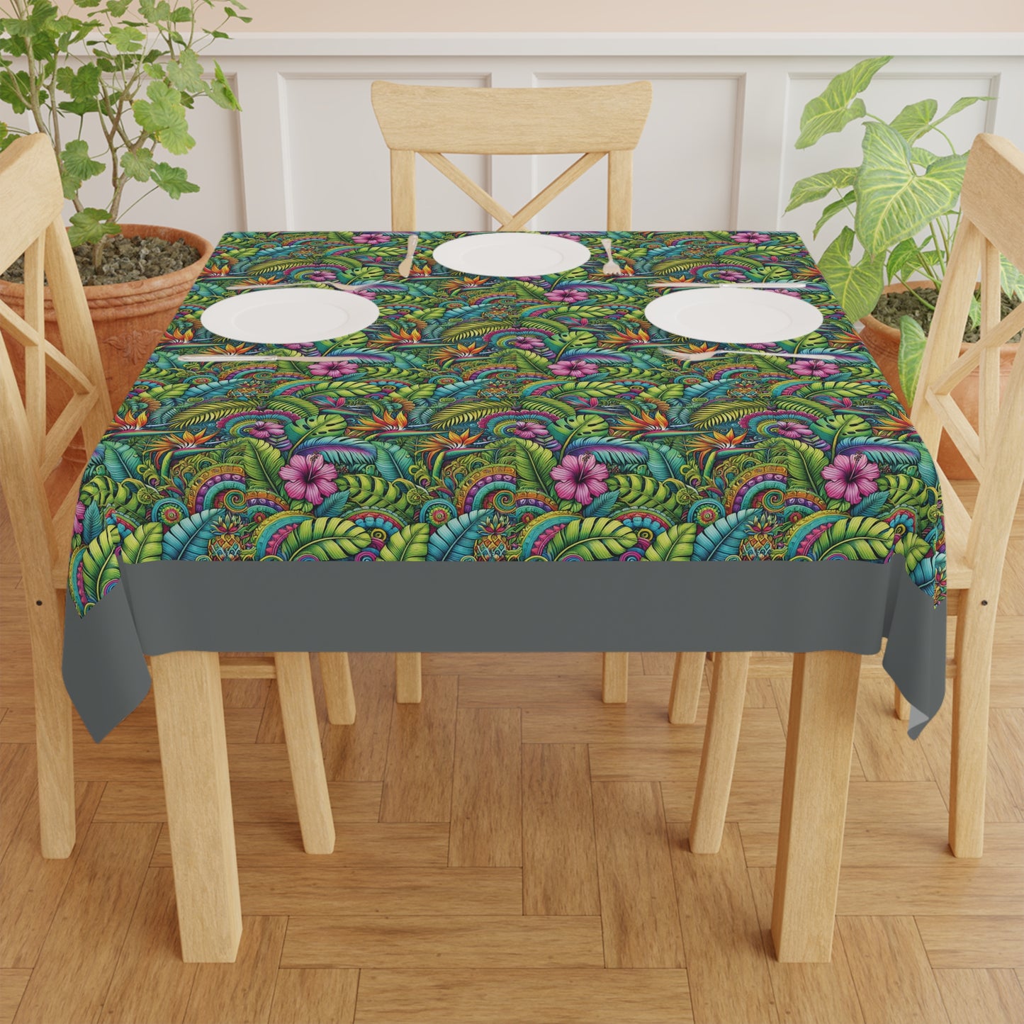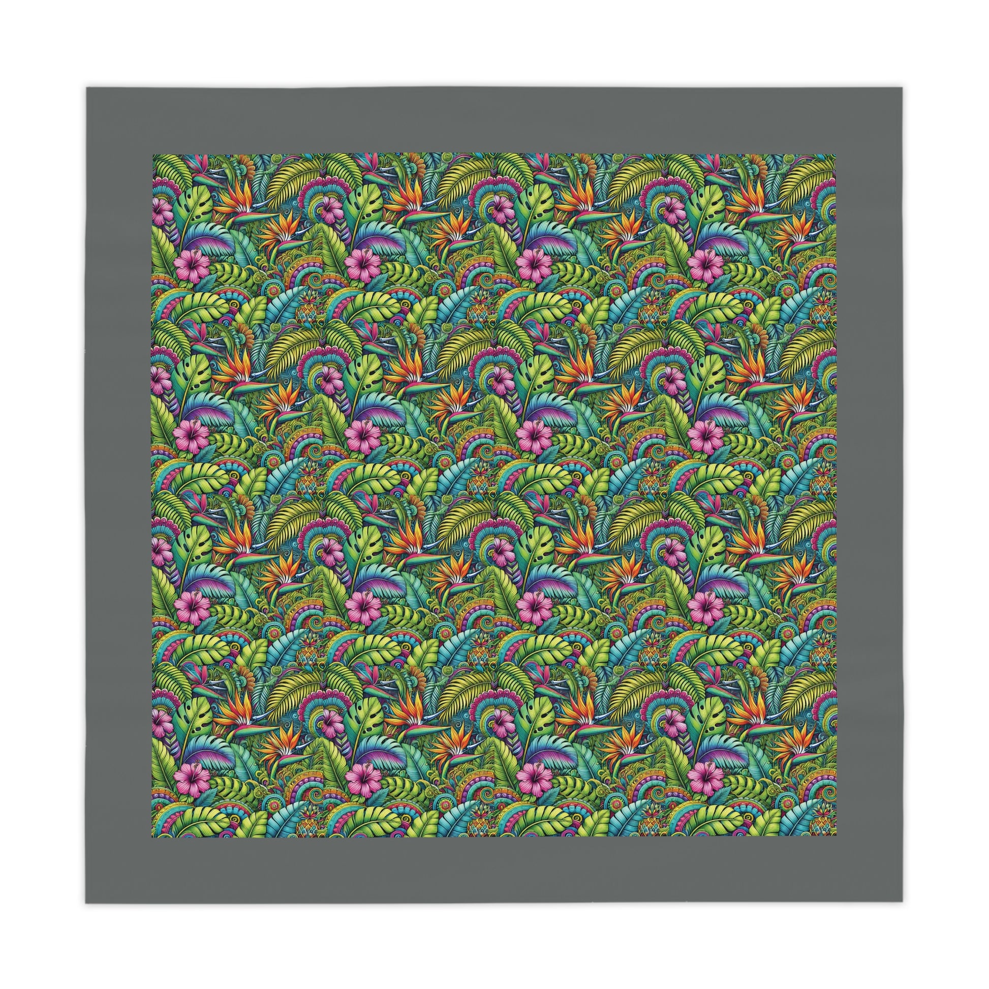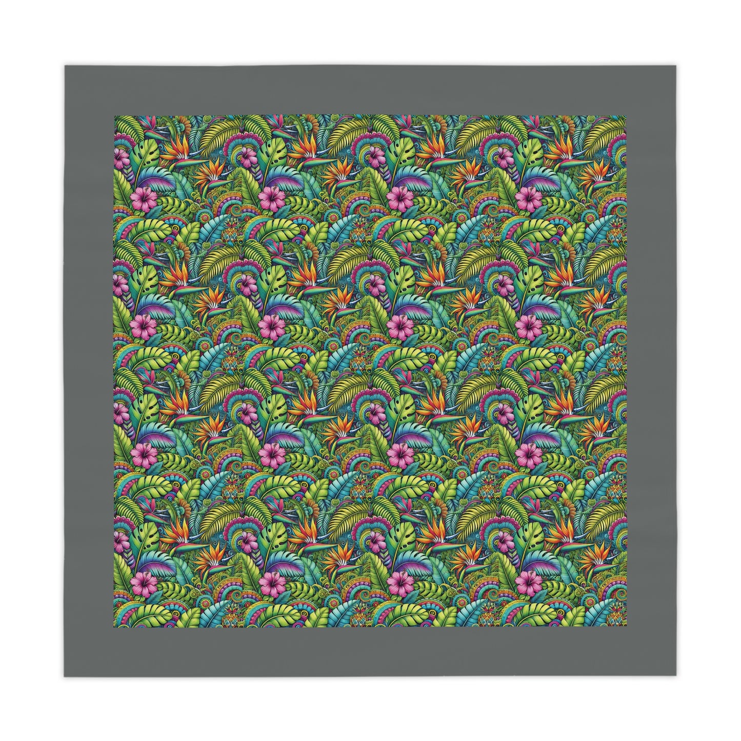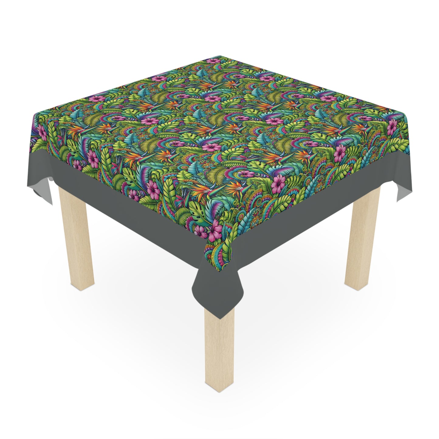 Rainforest Blooms/Dark Grey ~ Square Tablecloth, 55" x 55"