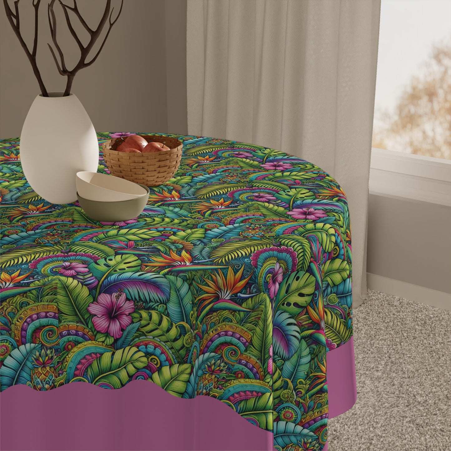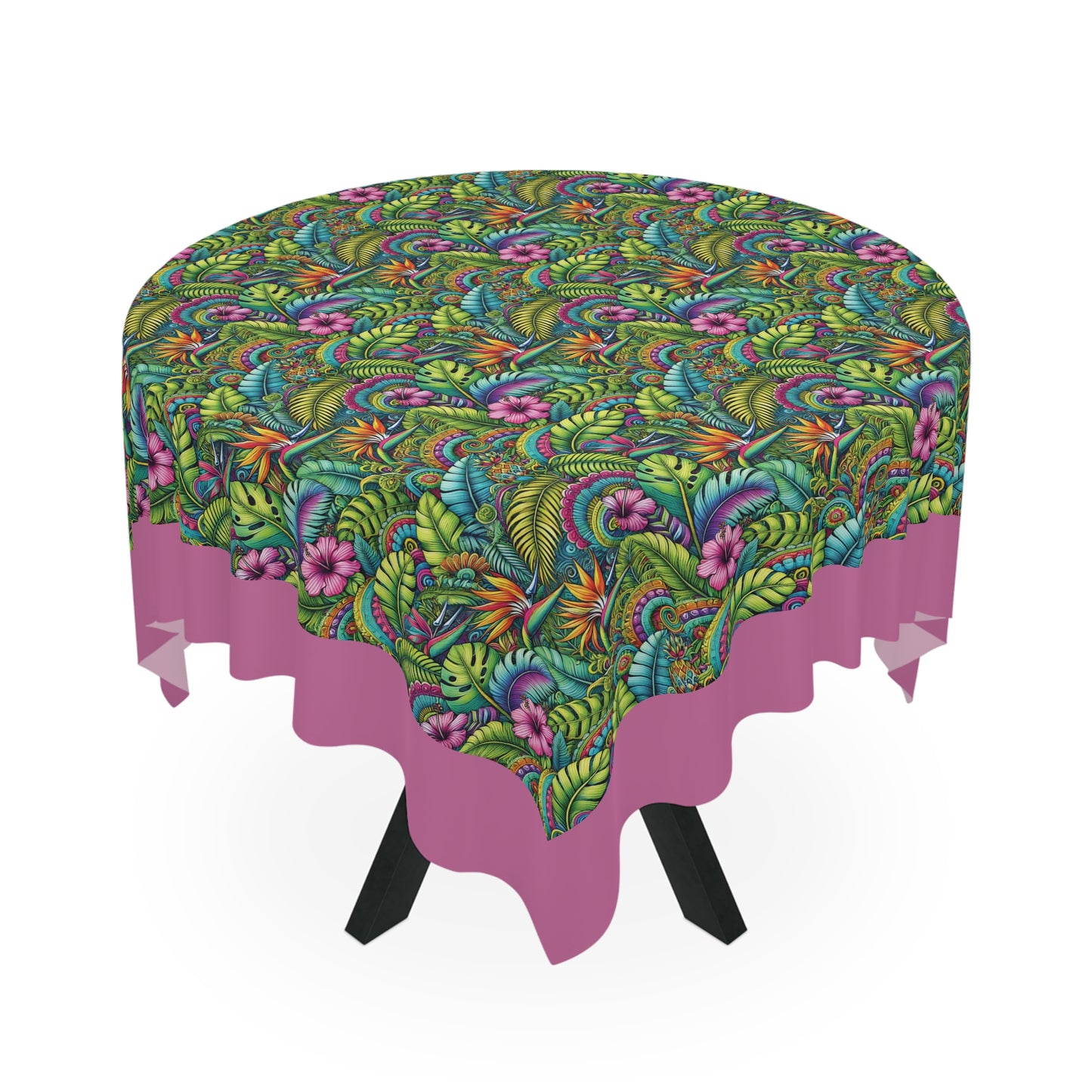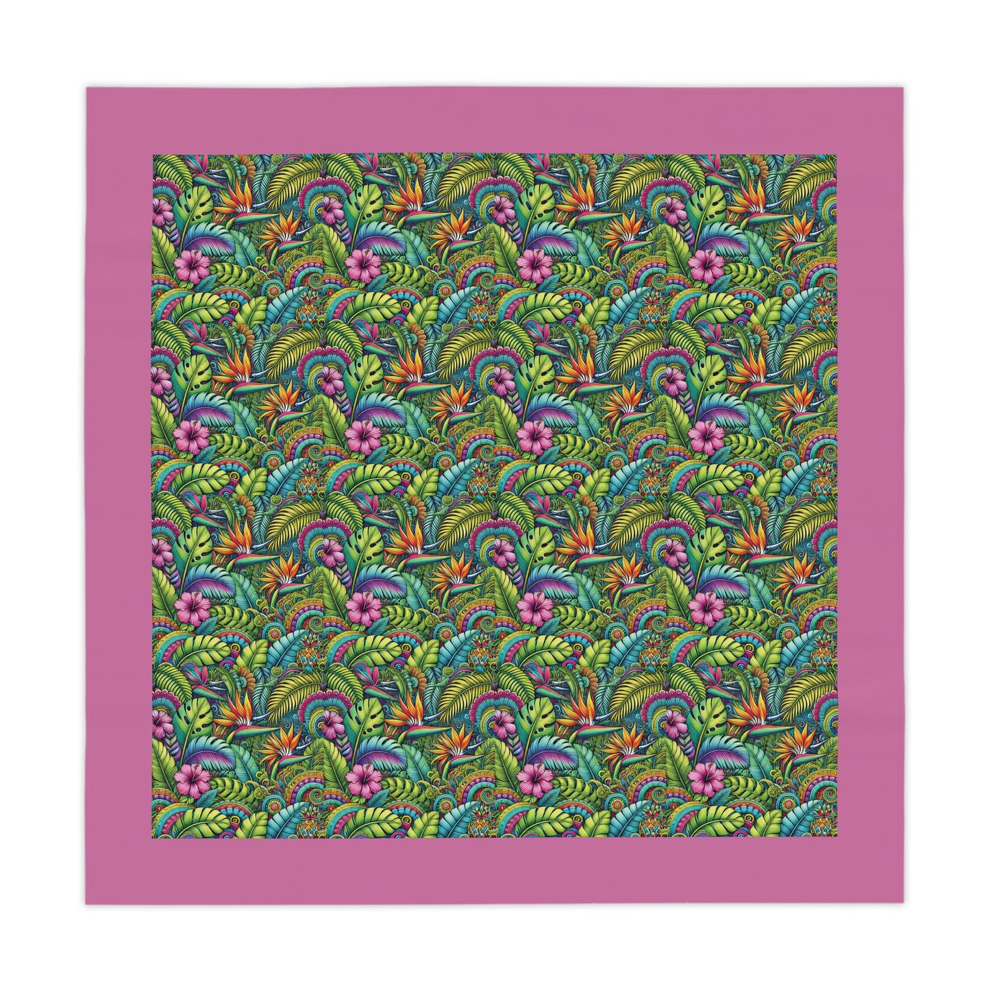 Add lovely tropical flowers to your dining experience with this beautiful tablecloth. Crafted from 100% polyester, this one-size 55.1" x 55.1" square table decor it's not only durable but also retains its shape while drying quickly. The full-print design brings to life a stunning array of colors, making it the perfect centerpiece for any meal or gathering. Lightweight and soft to the touch, this tablecloth creates an inviting atmosphere, ideal for both casual family dinners and festive occasions. Perfect for those who love to host, entertain, or simply enjoy a beautifully adorned table. This tablecloth is ideal for holidays, celebrations, or cozy dinners at home, enriching every event with its lively charm. Suitable for enthusiasts of home decor, gardening, and nature-inspired designs, it adds a splash of style to any setting.