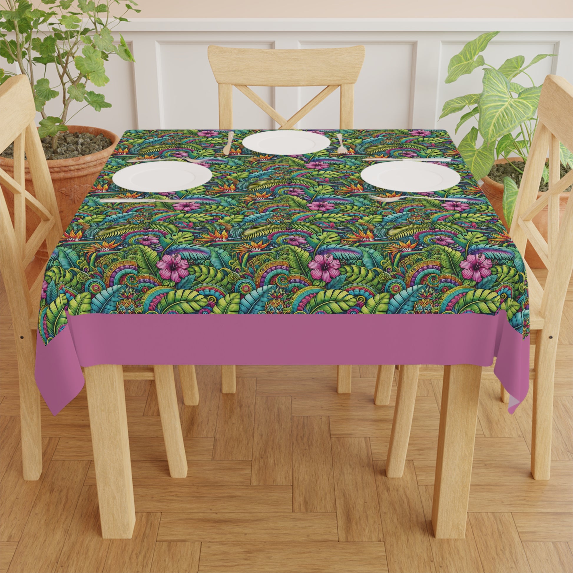 Rainforest Blooms/Lt. Pink ~ Square Tablecloth, 55" x 55"
