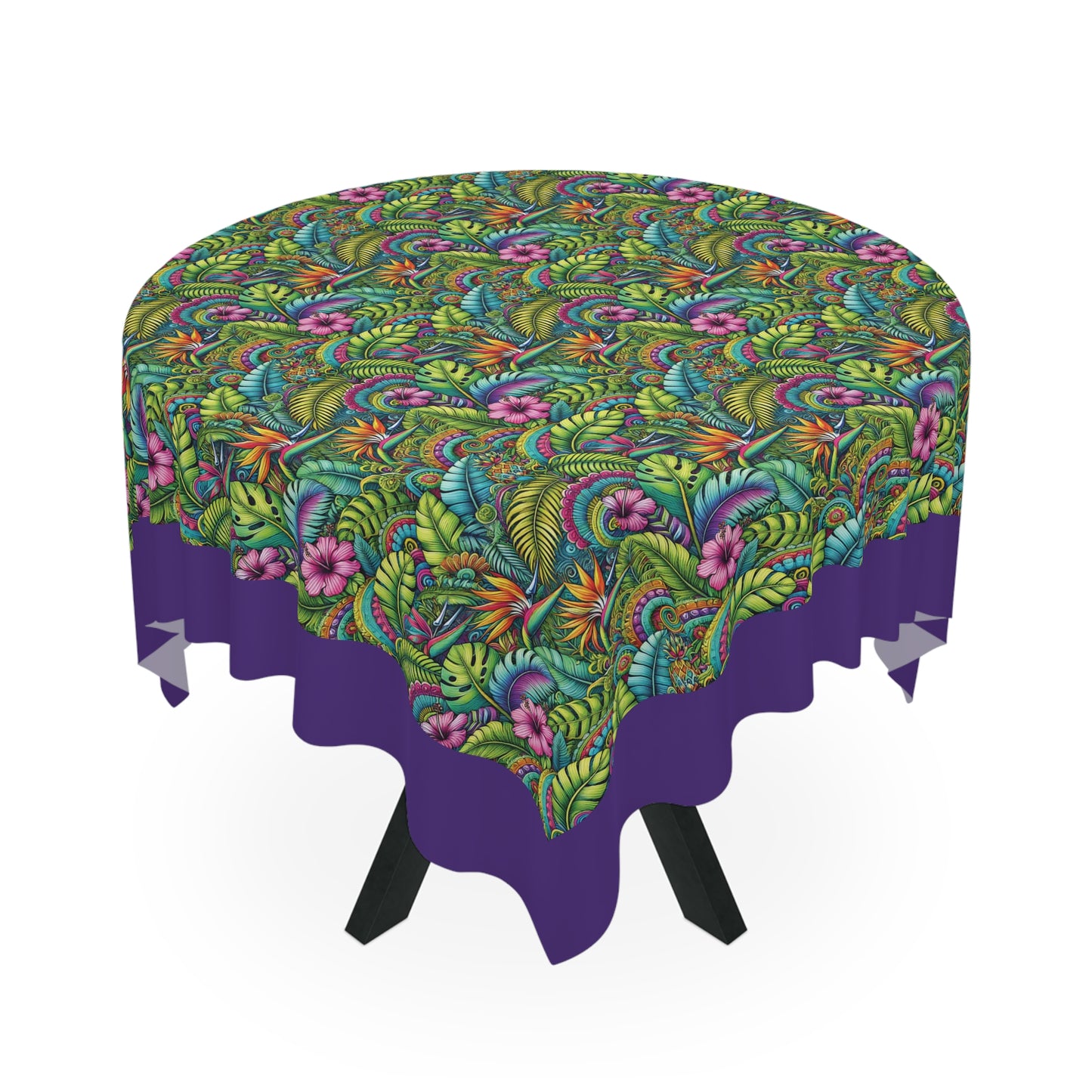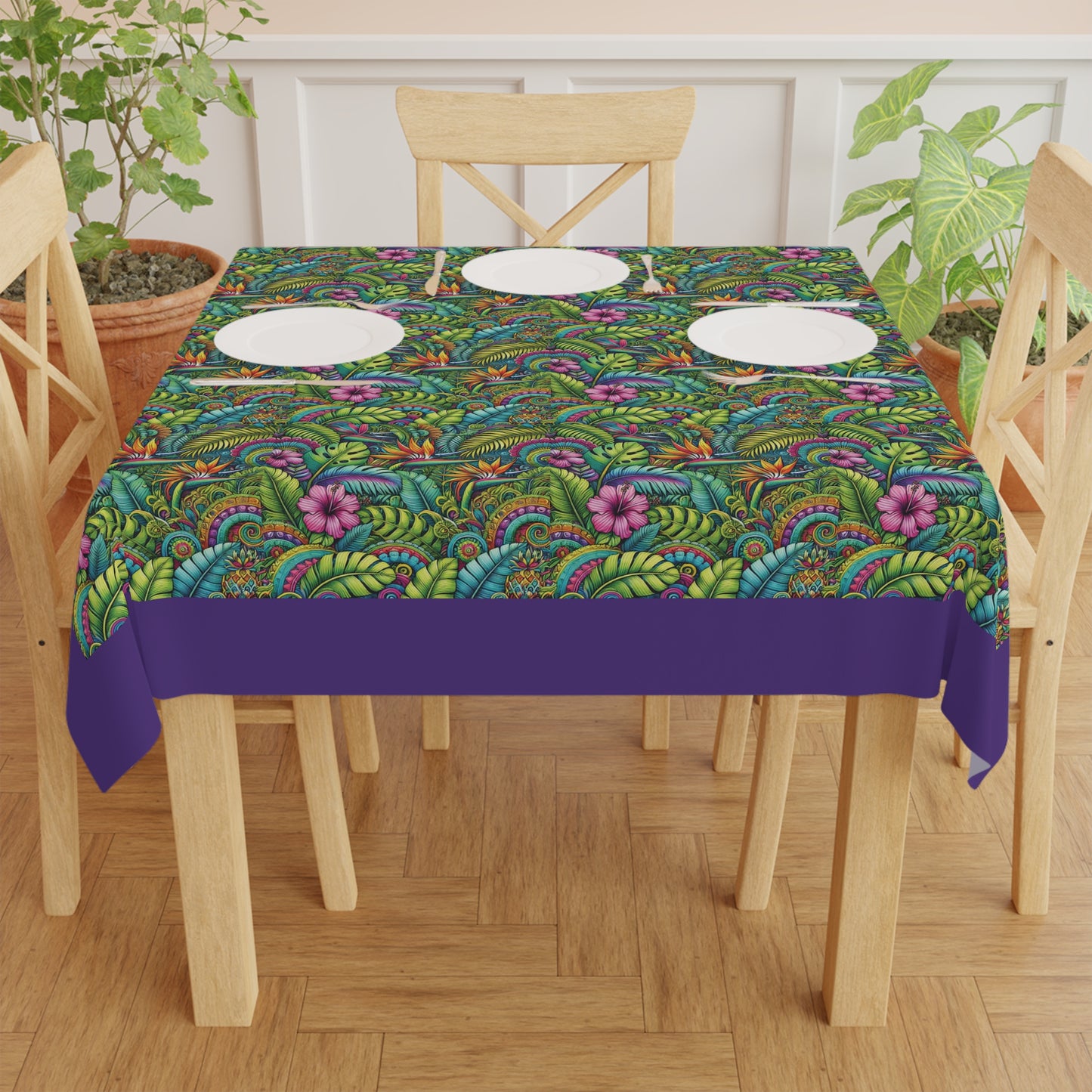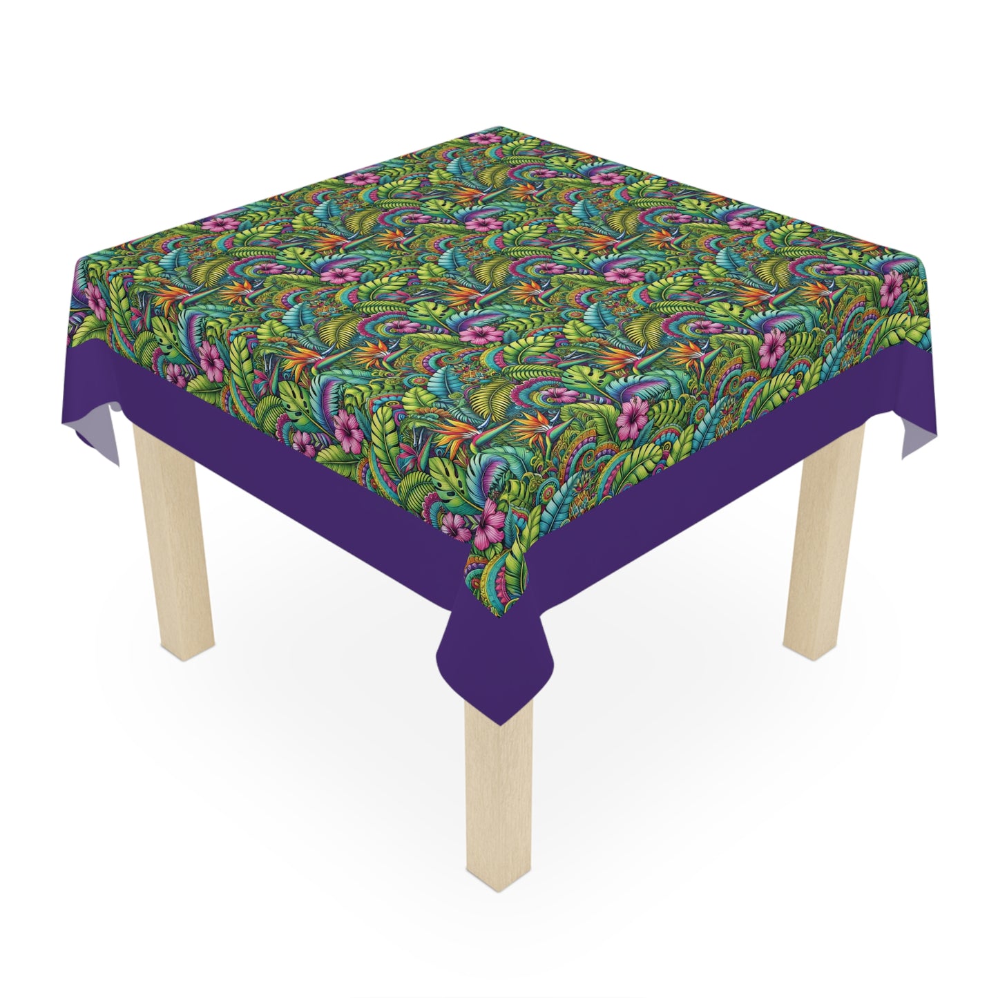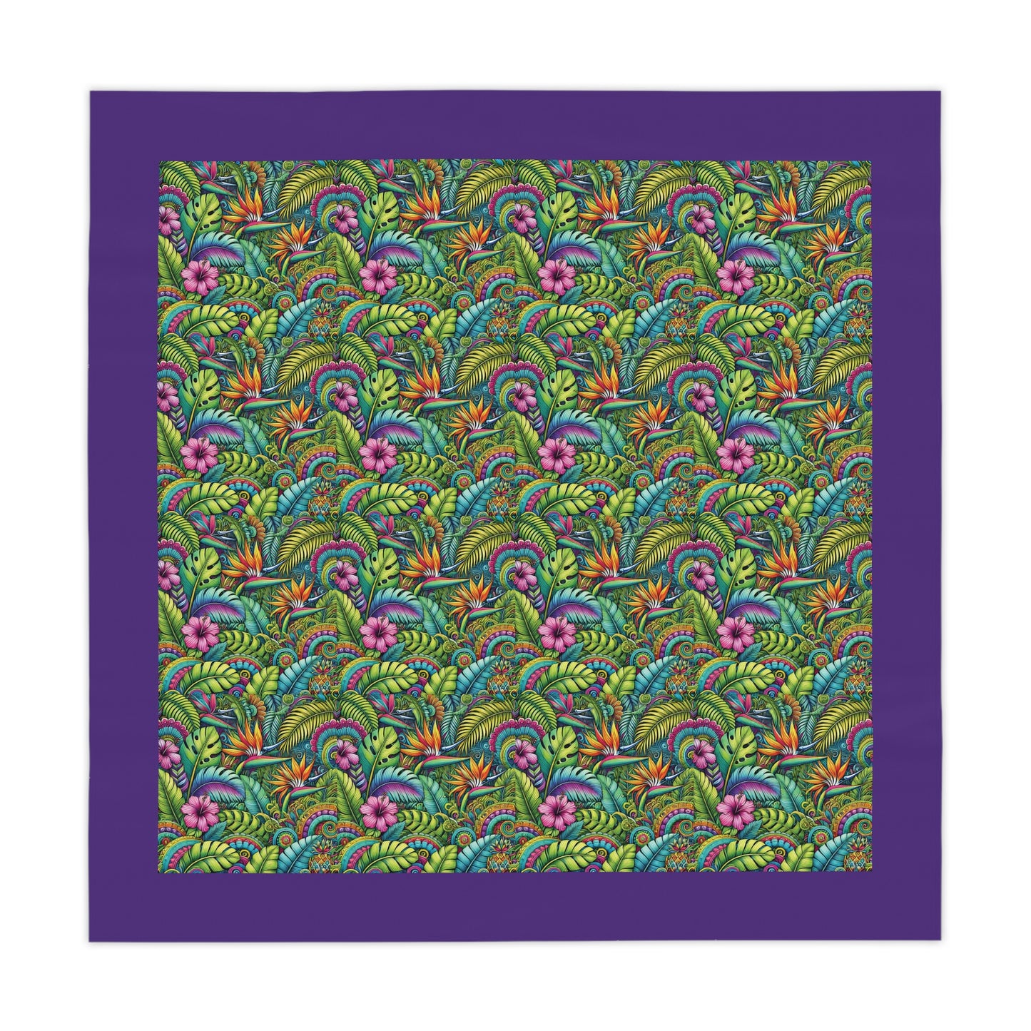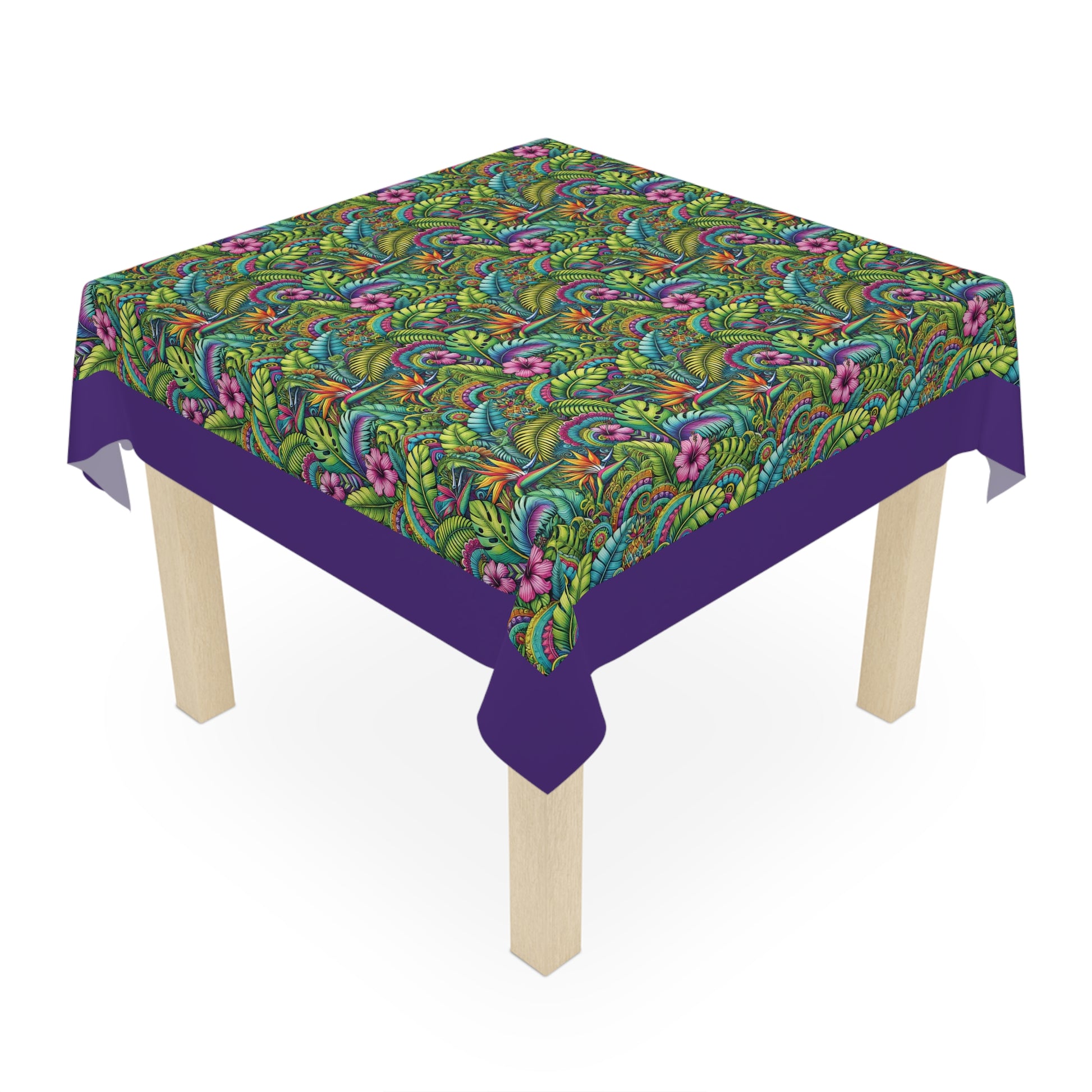 Rainforest Blooms/Purple ~ Square Tablecloth, 55" x 55"