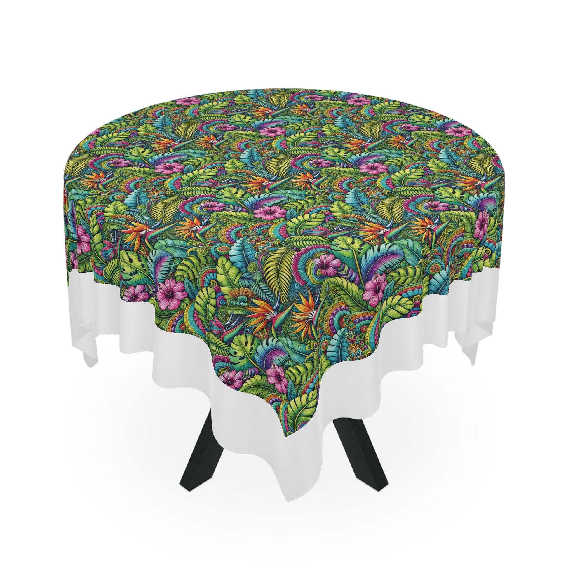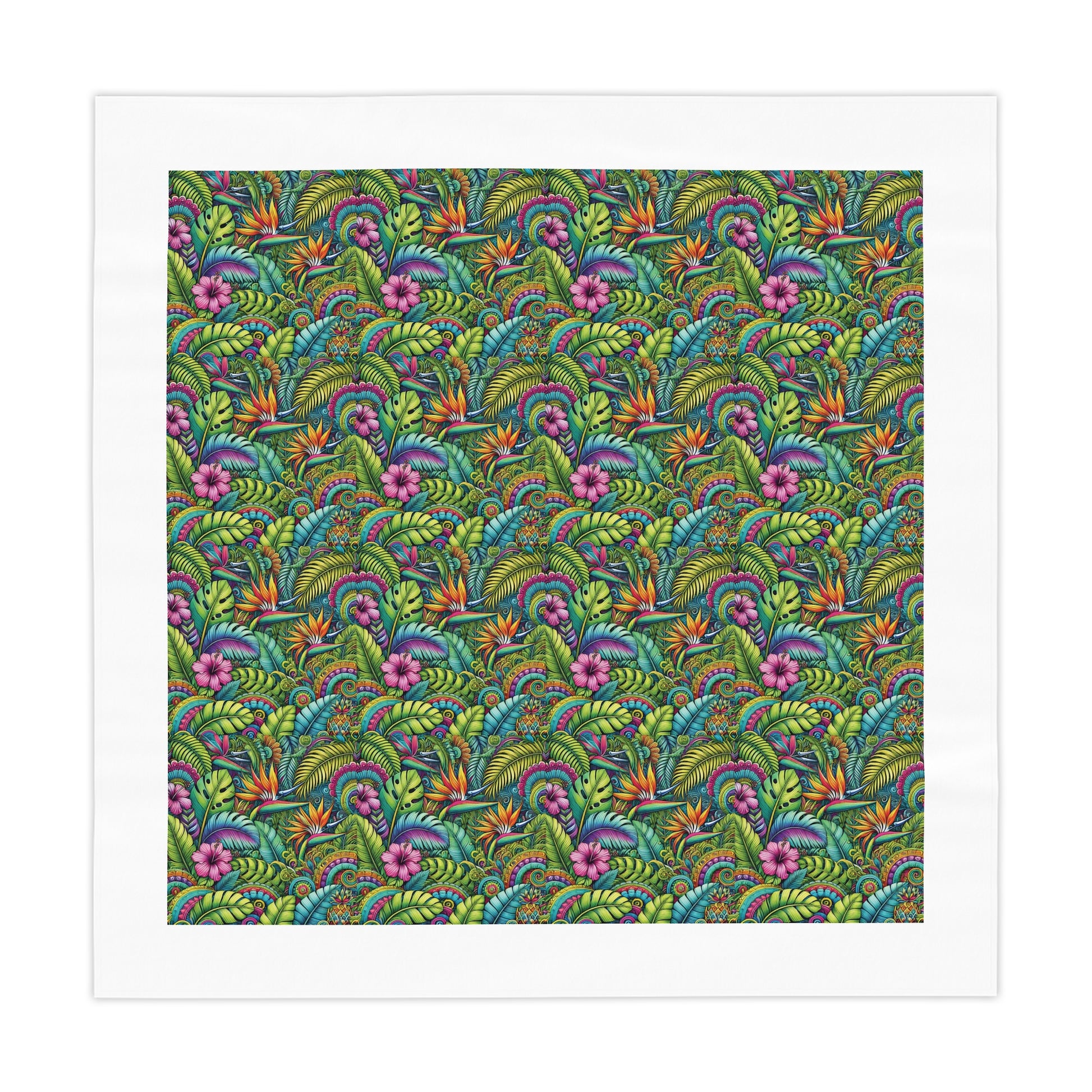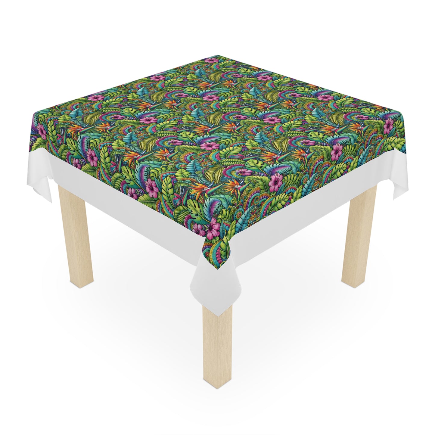 Add lovely tropical flowers to your dining experience with this beautiful tablecloth. Crafted from 100% polyester, this one-size 55.1" x 55.1" square table decor it's not only durable but also retains its shape while drying quickly. The full-print design brings to life a stunning array of colors, making it the perfect centerpiece for any meal or gathering. Lightweight and soft to the touch, this tablecloth creates an inviting atmosphere, ideal for both casual family dinners and festive occasions. Perfect for those who love to host, entertain, or simply enjoy a beautifully adorned table. This tablecloth is ideal for holidays, celebrations, or cozy dinners at home, enriching every event with its lively charm. Suitable for enthusiasts of home decor, gardening, and nature-inspired designs, it adds a splash of style to any setting.