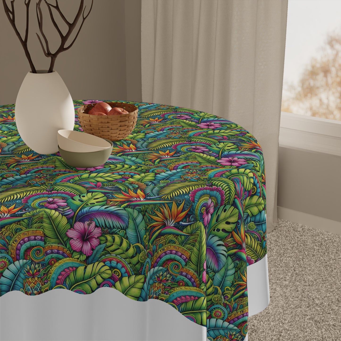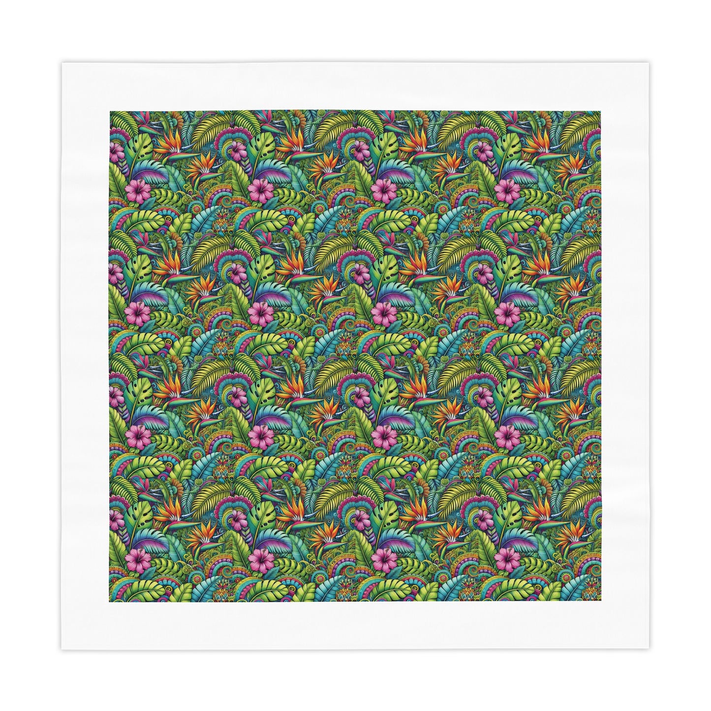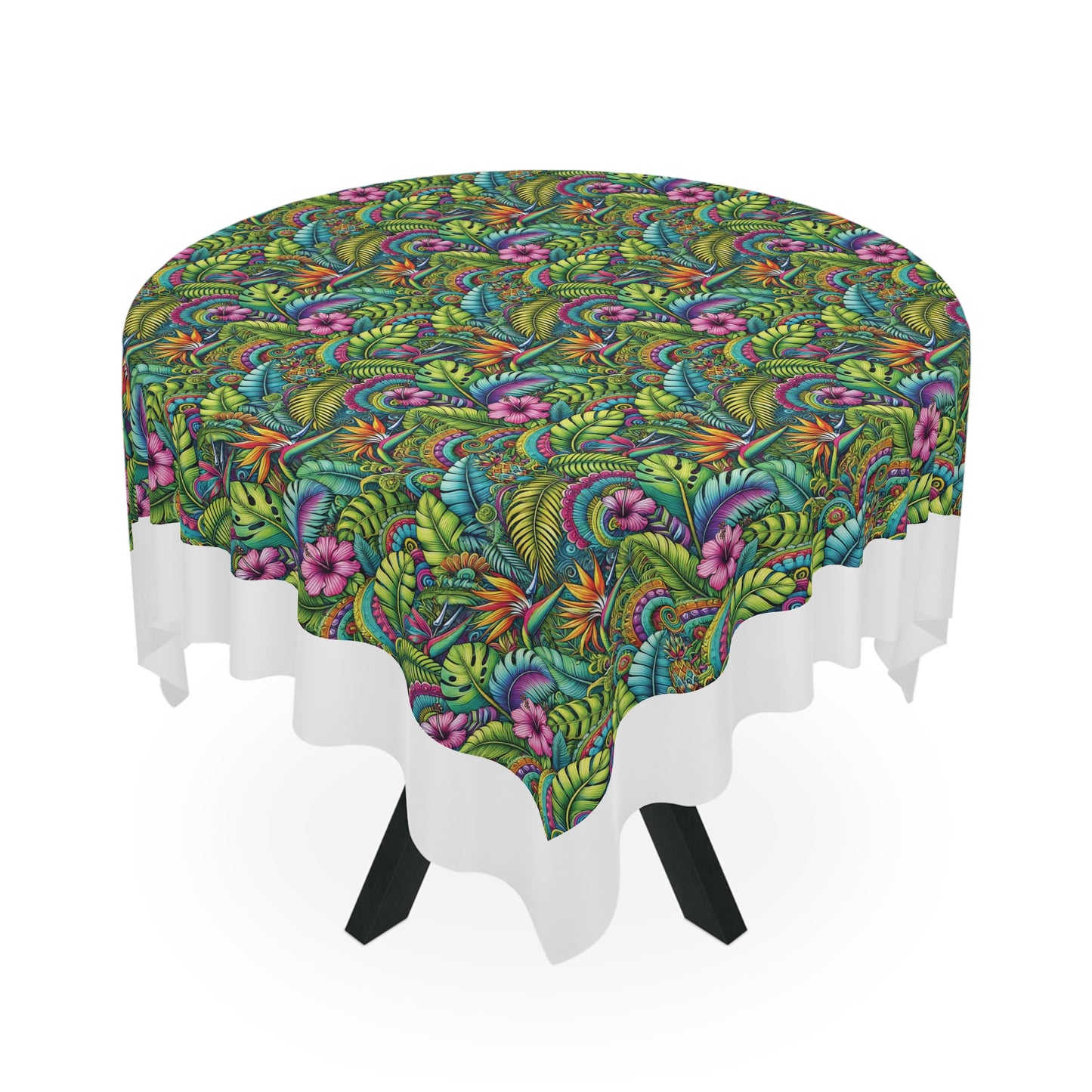 Add lovely tropical flowers to your dining experience with this beautiful tablecloth. Crafted from 100% polyester, this one-size 55.1" x 55.1" square table decor it's not only durable but also retains its shape while drying quickly. The full-print design brings to life a stunning array of colors, making it the perfect centerpiece for any meal or gathering. Lightweight and soft to the touch, this tablecloth creates an inviting atmosphere, ideal for both casual family dinners and festive occasions. Perfect for those who love to host, entertain, or simply enjoy a beautifully adorned table. This tablecloth is ideal for holidays, celebrations, or cozy dinners at home, enriching every event with its lively charm. Suitable for enthusiasts of home decor, gardening, and nature-inspired designs, it adds a splash of style to any setting.