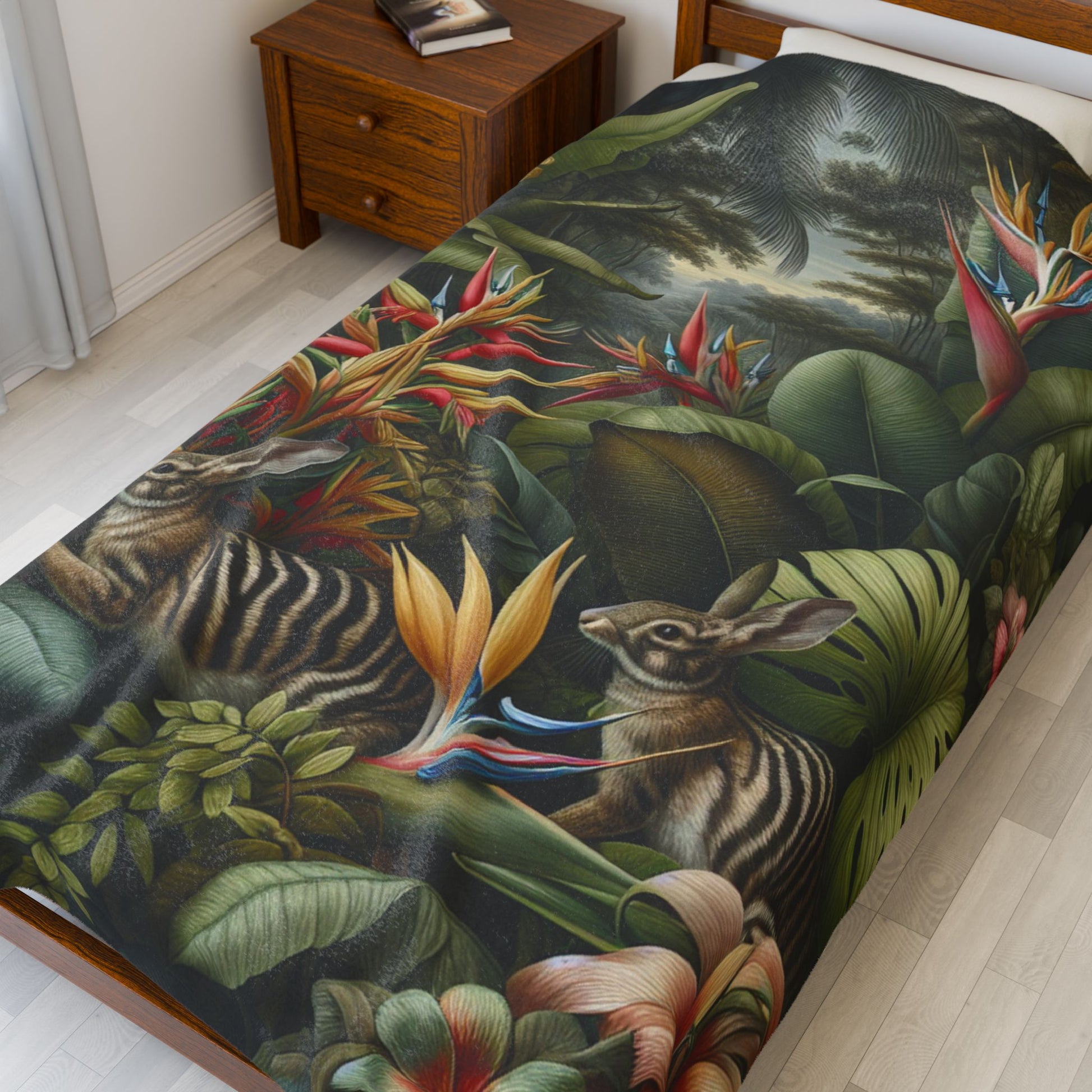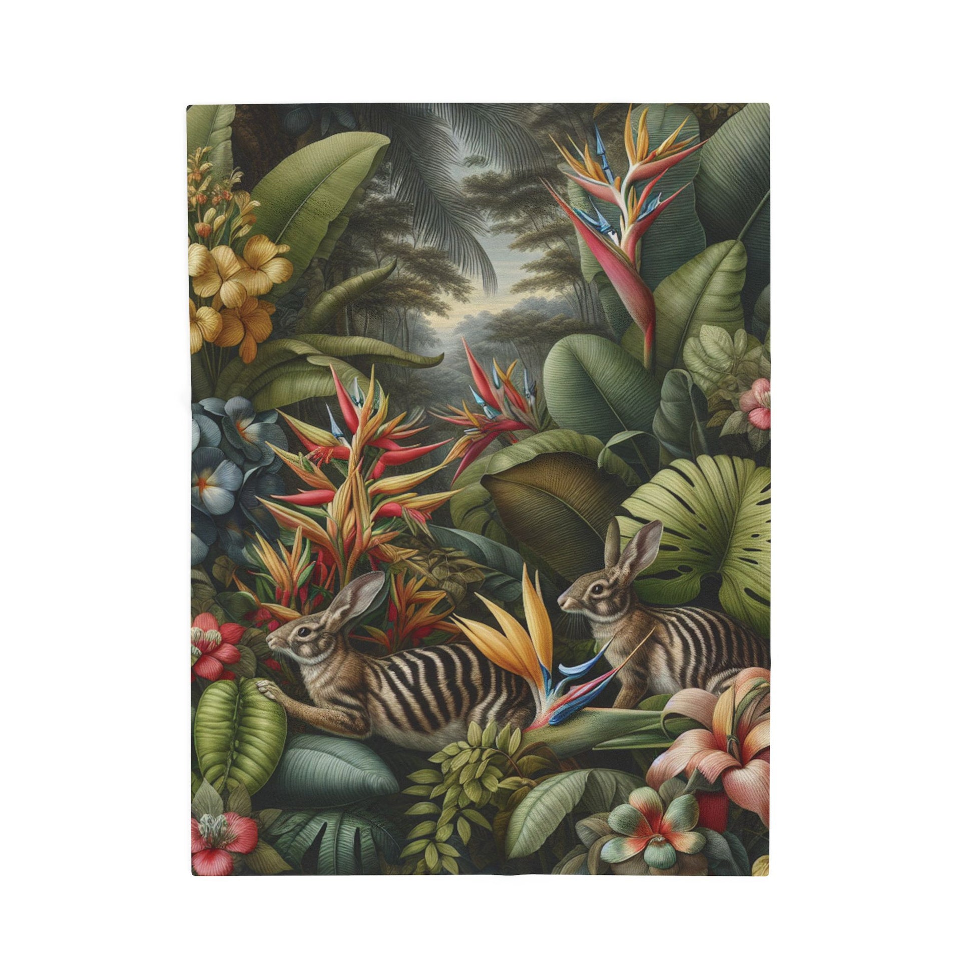 Rainforest Rabbit Outing Velveteen Plush Blanket - Cozy Home Decor for Rabbit Lovers