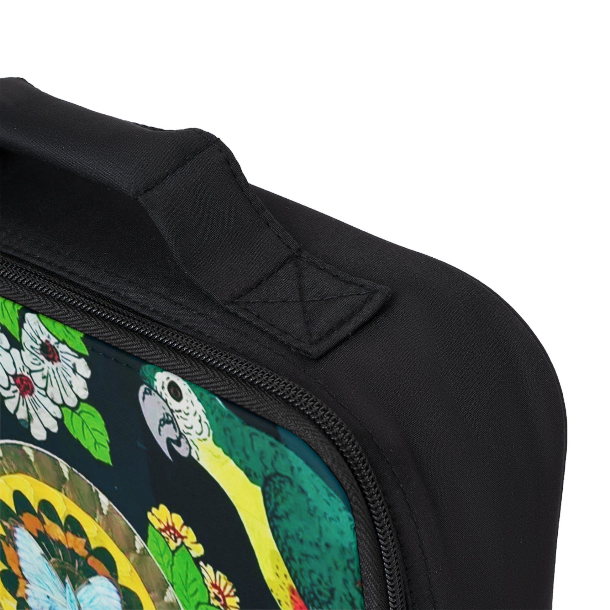 Introducing a vibrant and stylish Lunch Bag designed to elevate your lunchtime experience. With its eye-catching tropical design, this bag adds a touch of creativity to your daily routine. Made from photo of vintage Brazilian art tray created using real butterfly wings and reverse painting under glass; stunning! Perfect for work, school, picnics or beach outings, it promises to make mealtime enjoyable wherever you go. The insulated lining keeps your food fresh, making it ideal for busy professionals and students alike. Gift it to a loved one for start of a new jobj, birthdays, back-to-school season, or just to brighten their day!