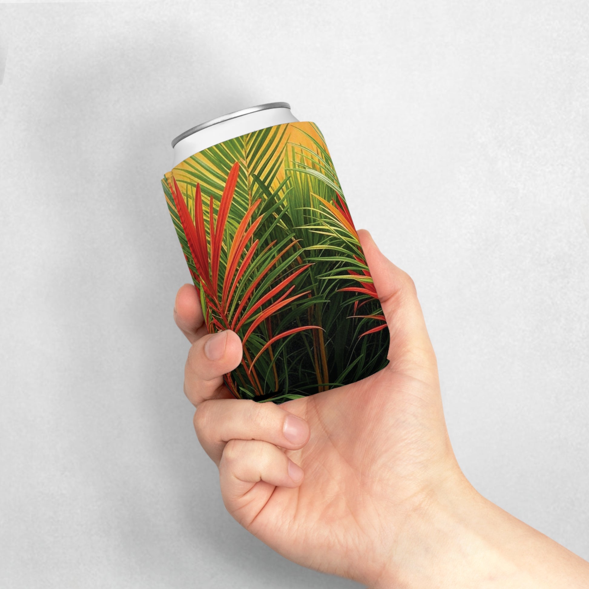 Red Flame Palms Can Cooler Sleeve - Perfect for Outdoor Picnics