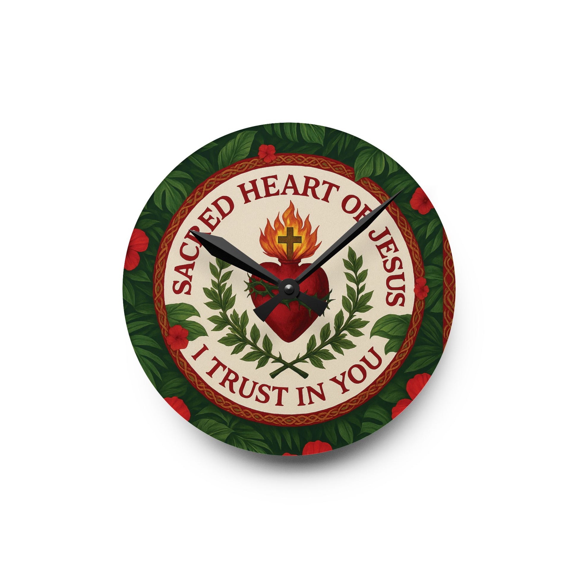 Religious Acrylic Wall Clock / Sacred Heart of Jesus Prayer