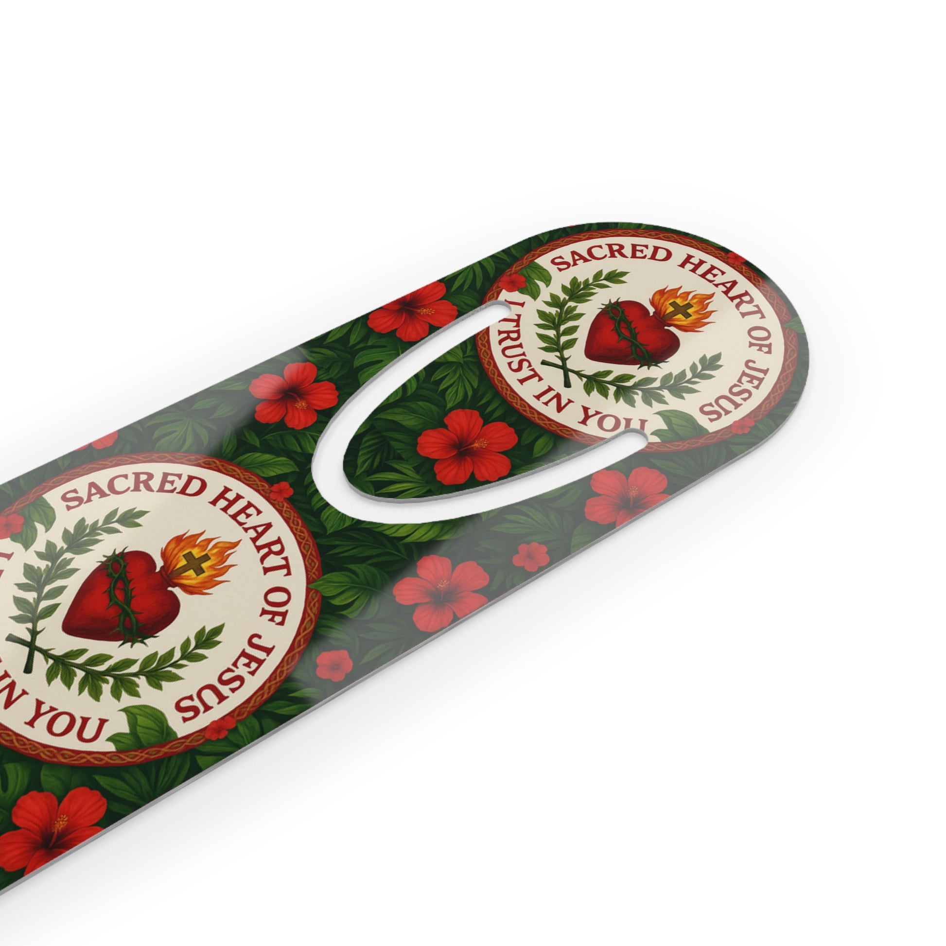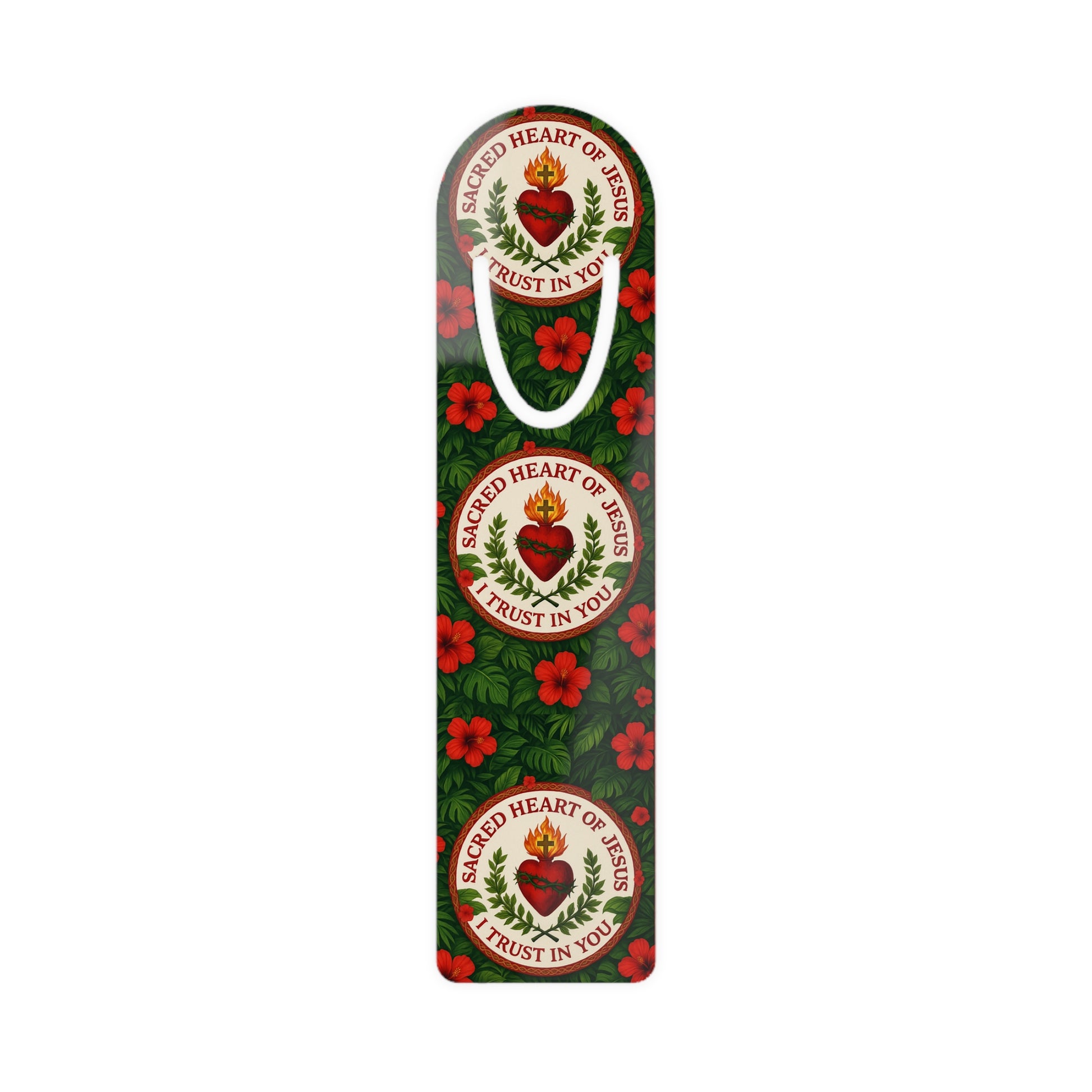 This one's for our bookworms out there. It's an excellent gifting choice for anyone with an insatiable literary appetite who also wants something to remind them of their love of God. Made with robust aluminum, with a top slot that holds single pages in place. Features our exclusive design with "Sacred Heart of Jesus, I Trust in You" prayer and lovely rainforest flowers. A functional piece of art!