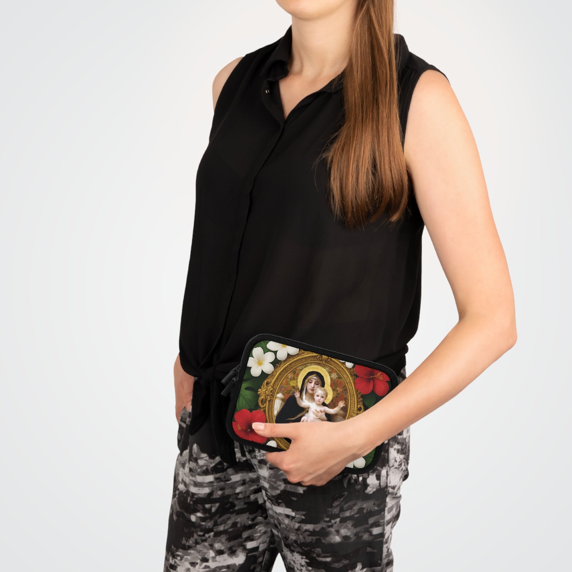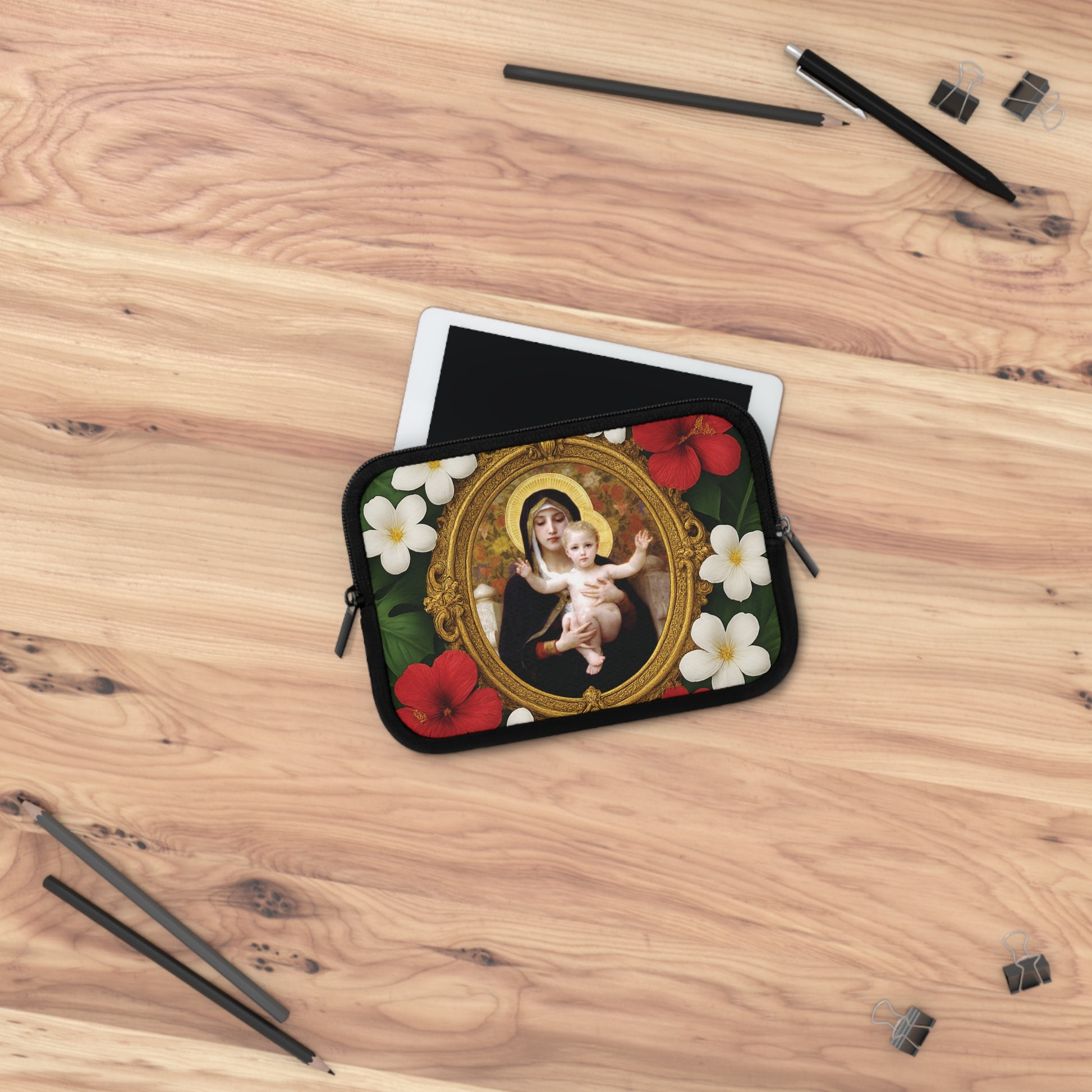 Religious Floral Laptop Computer Sleeve, Portable Tech Gift / Virgin of the Lilies