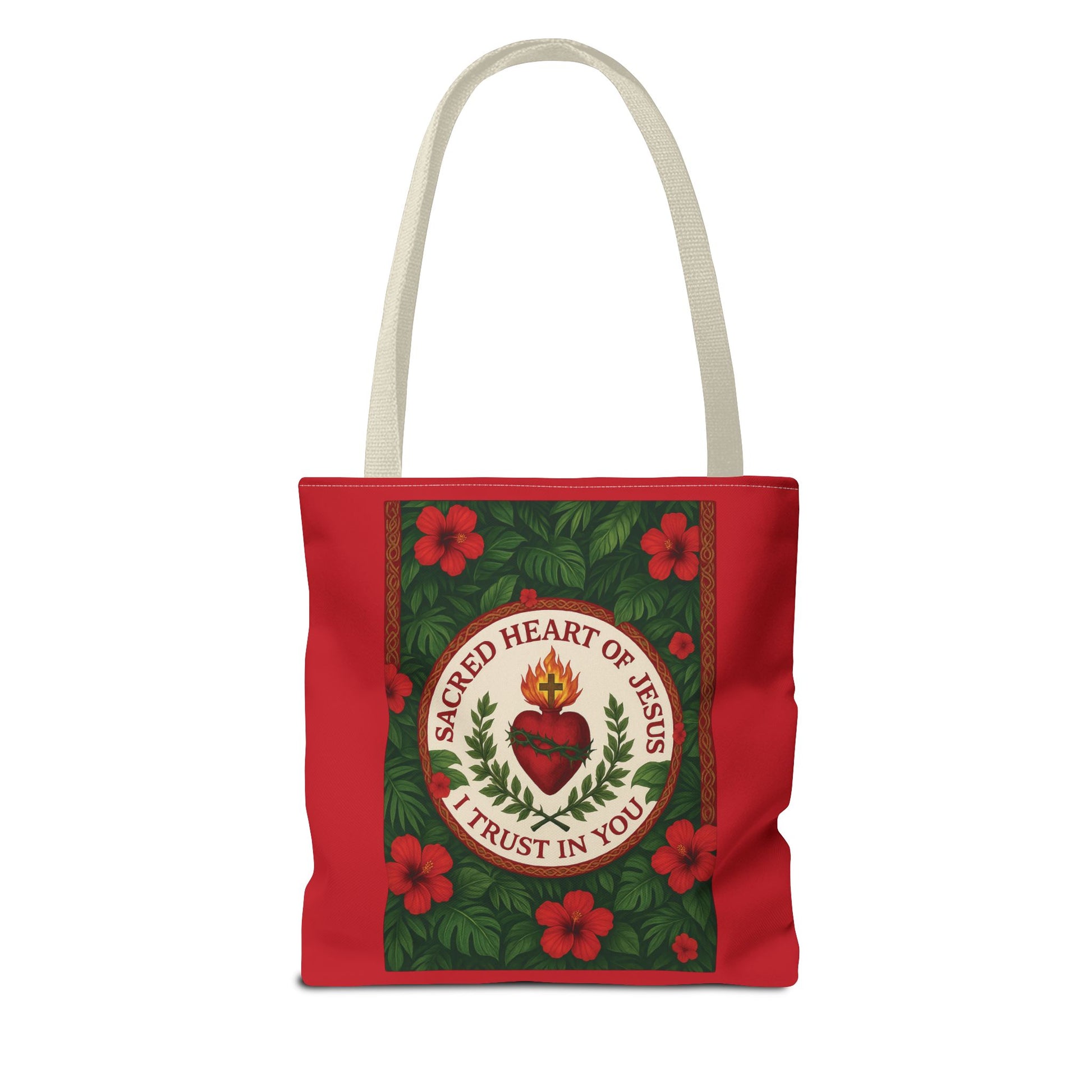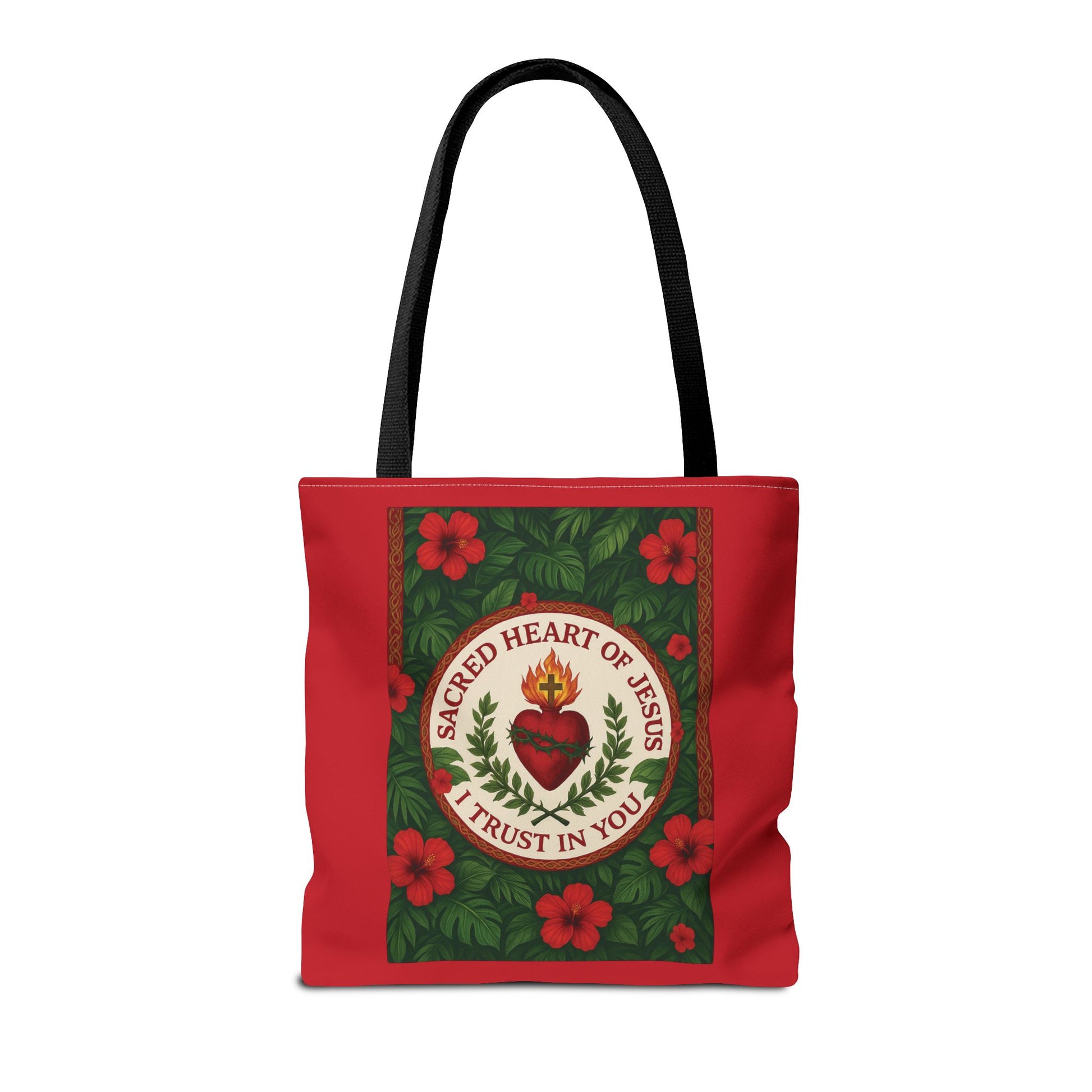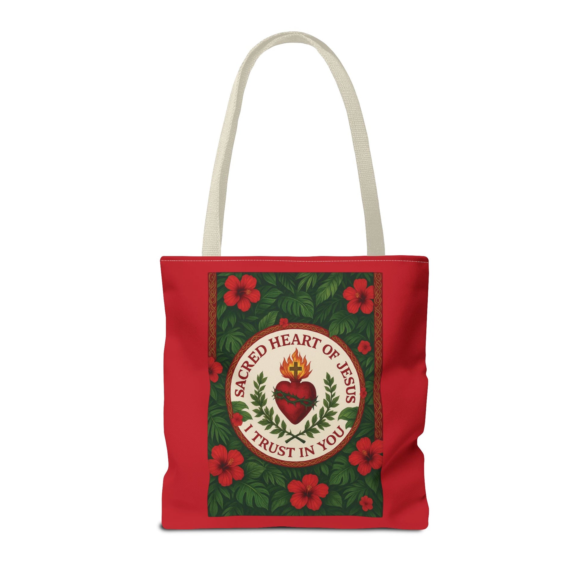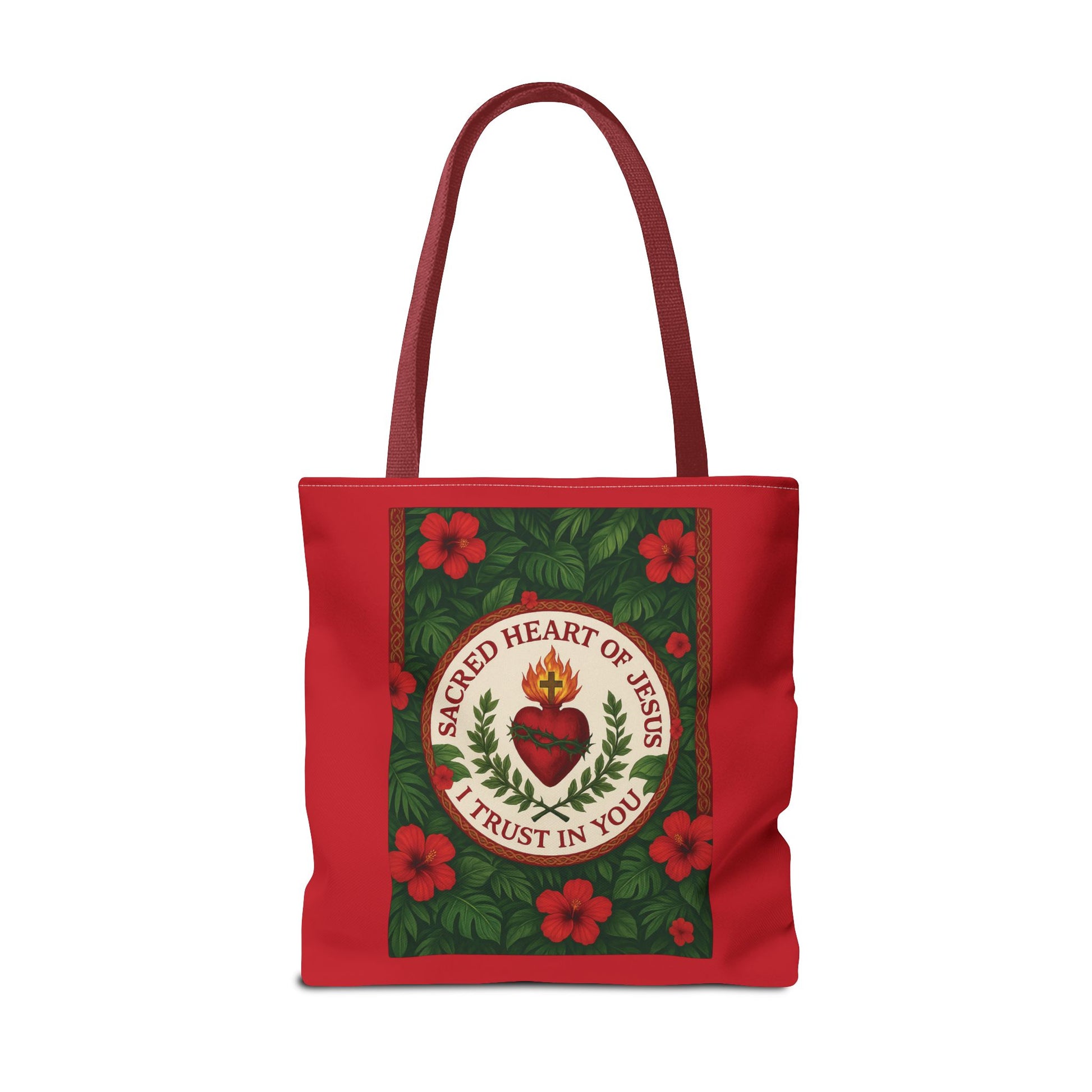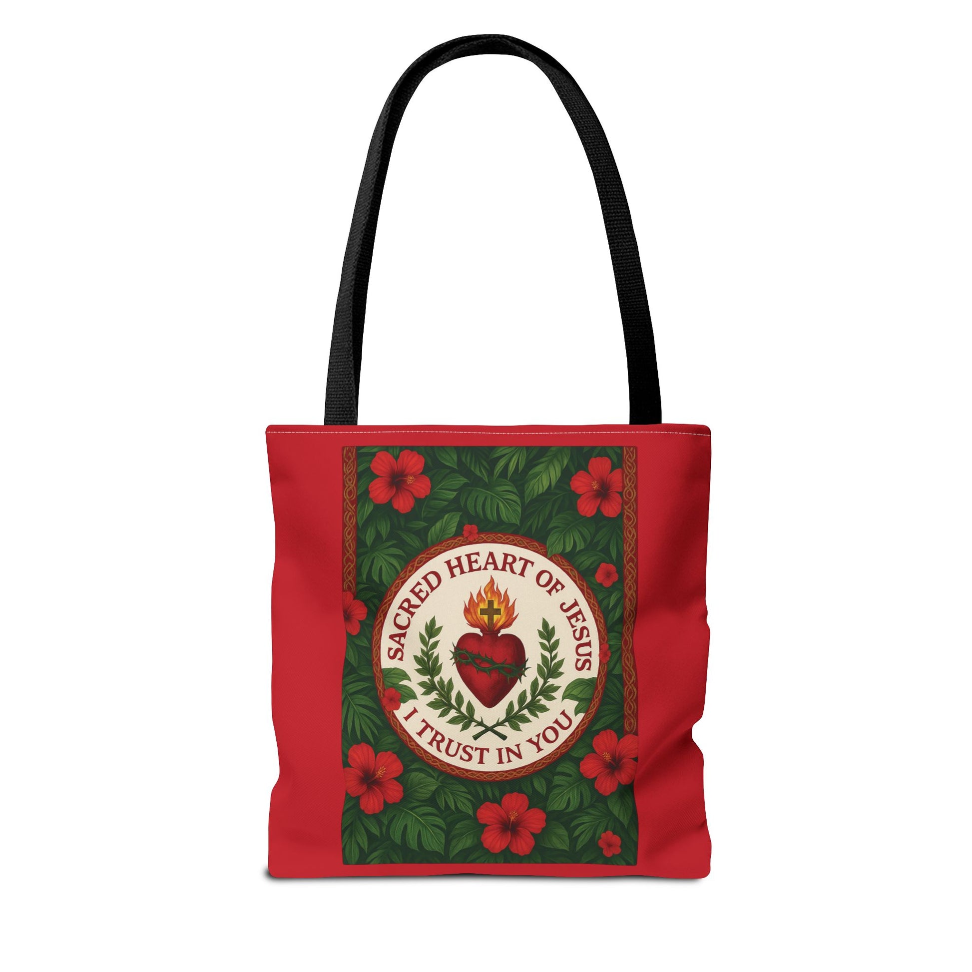 Religious Tote Bag - 3 Sizes / Sacred Heart of Jesus Prayer, Red