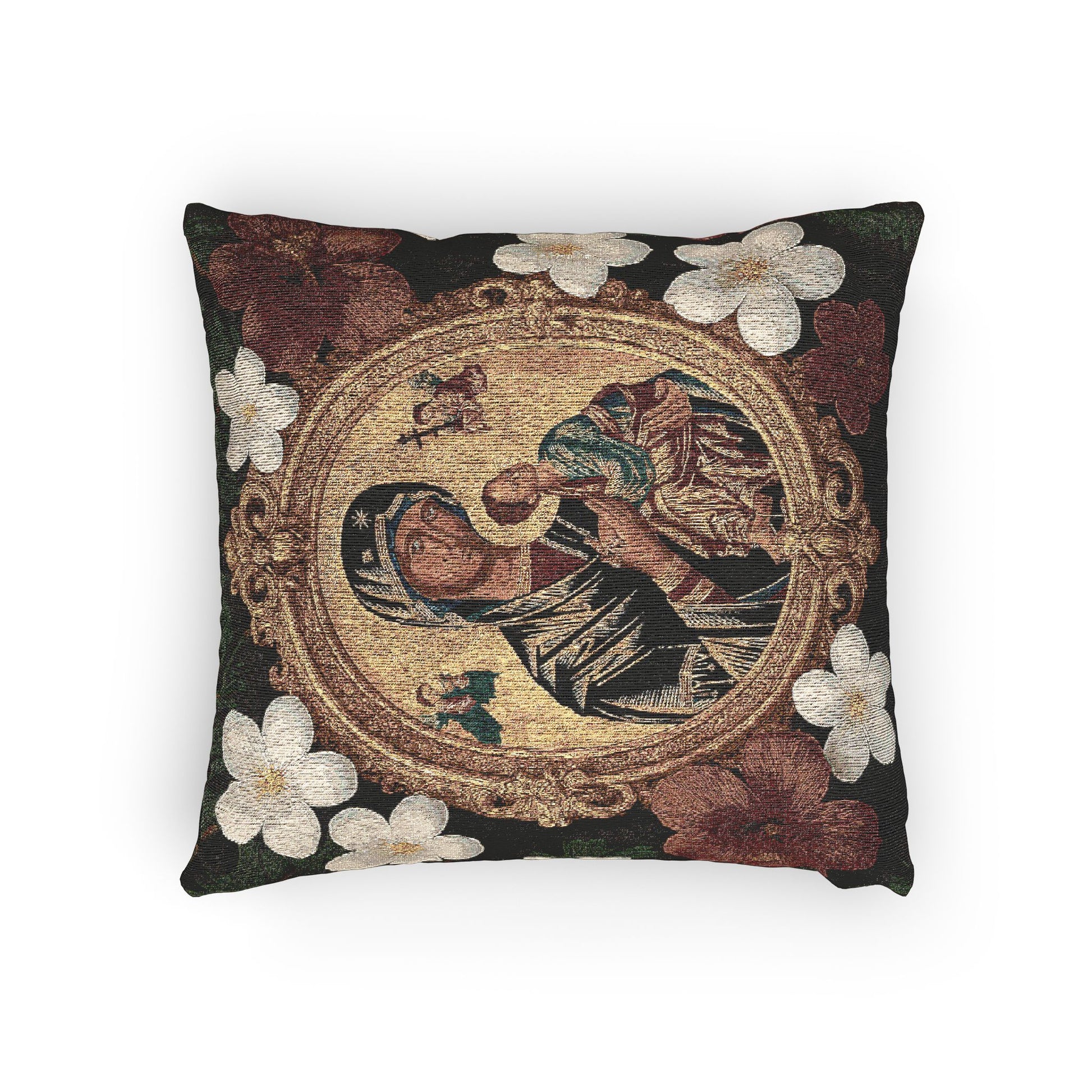 Religious Woven Pillow, 17"W x 18"L - Floral Maria and Child Design