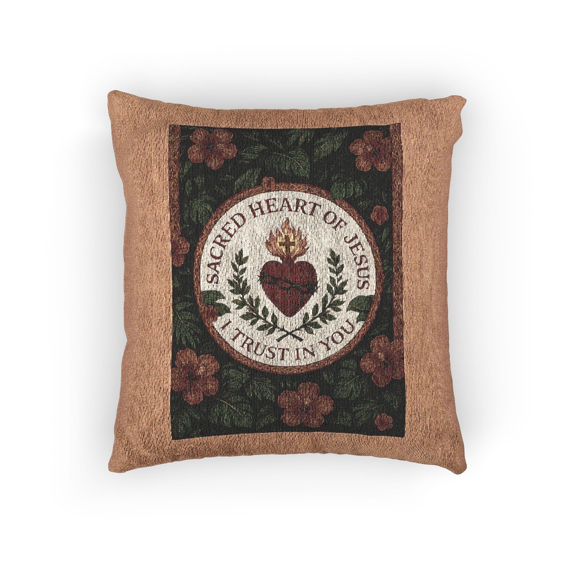 Introducing our beautifully crafted Woven Pillow, perfect for adding a touch of elegance to your home decor. This cozy accent piece showcases stunning artwork of the Sacred Heart of Jesus prayer, with rainforest flowers, making it an ideal choice for those who appreciate artistic flair and warmth in their living spaces. Whether you're snuggling up on the couch for movie night or hosting friends for a festive gathering, this pillow enhances your atmosphere with its rich colors and captivating design. Perfect for art lovers and those looking to create a serene, inviting environment, this woven pillow is a great addition for anyone celebrating occasions like housewarmings, birthdays, or holidays. Its timeless beauty makes it suitable for any season, inviting comfort year-round.