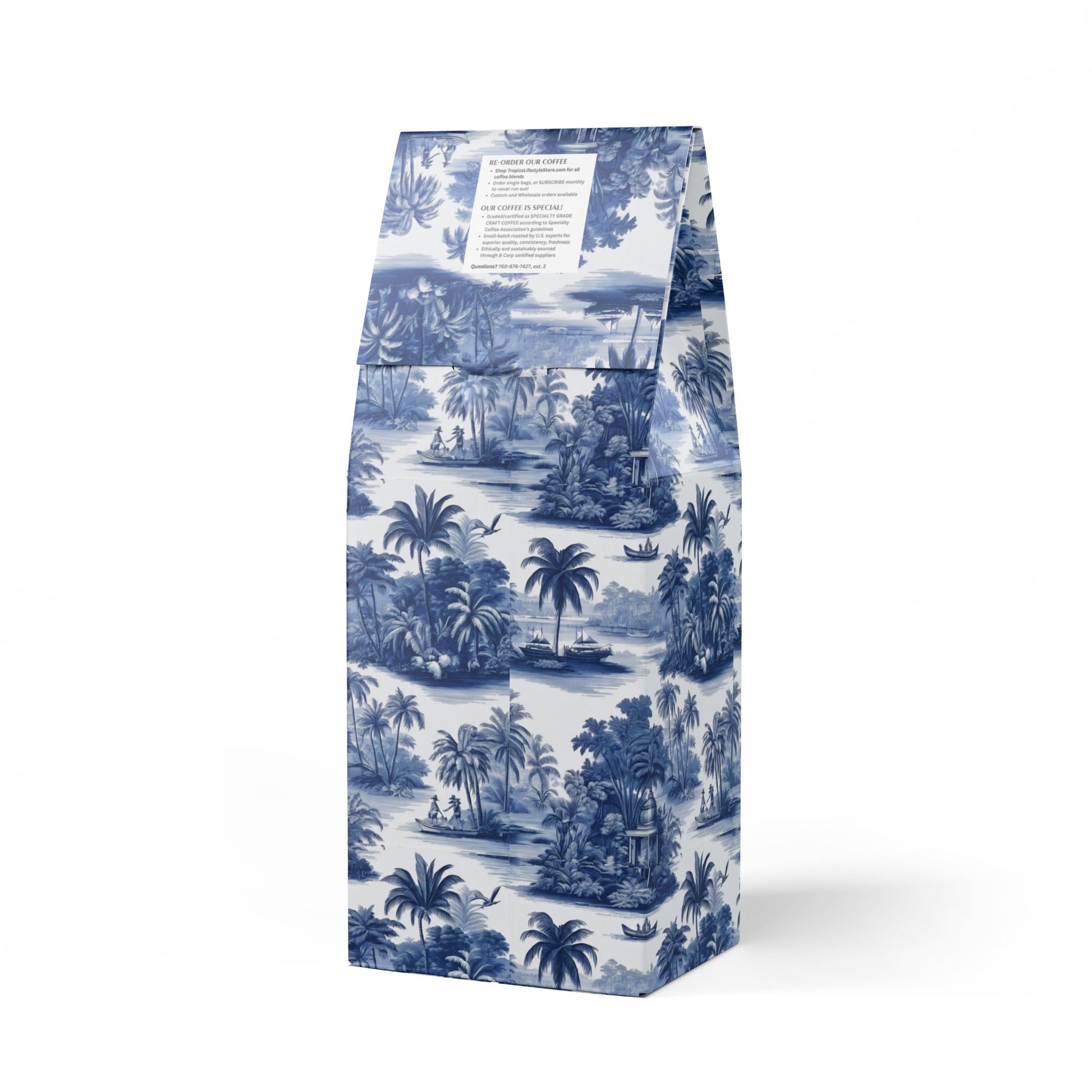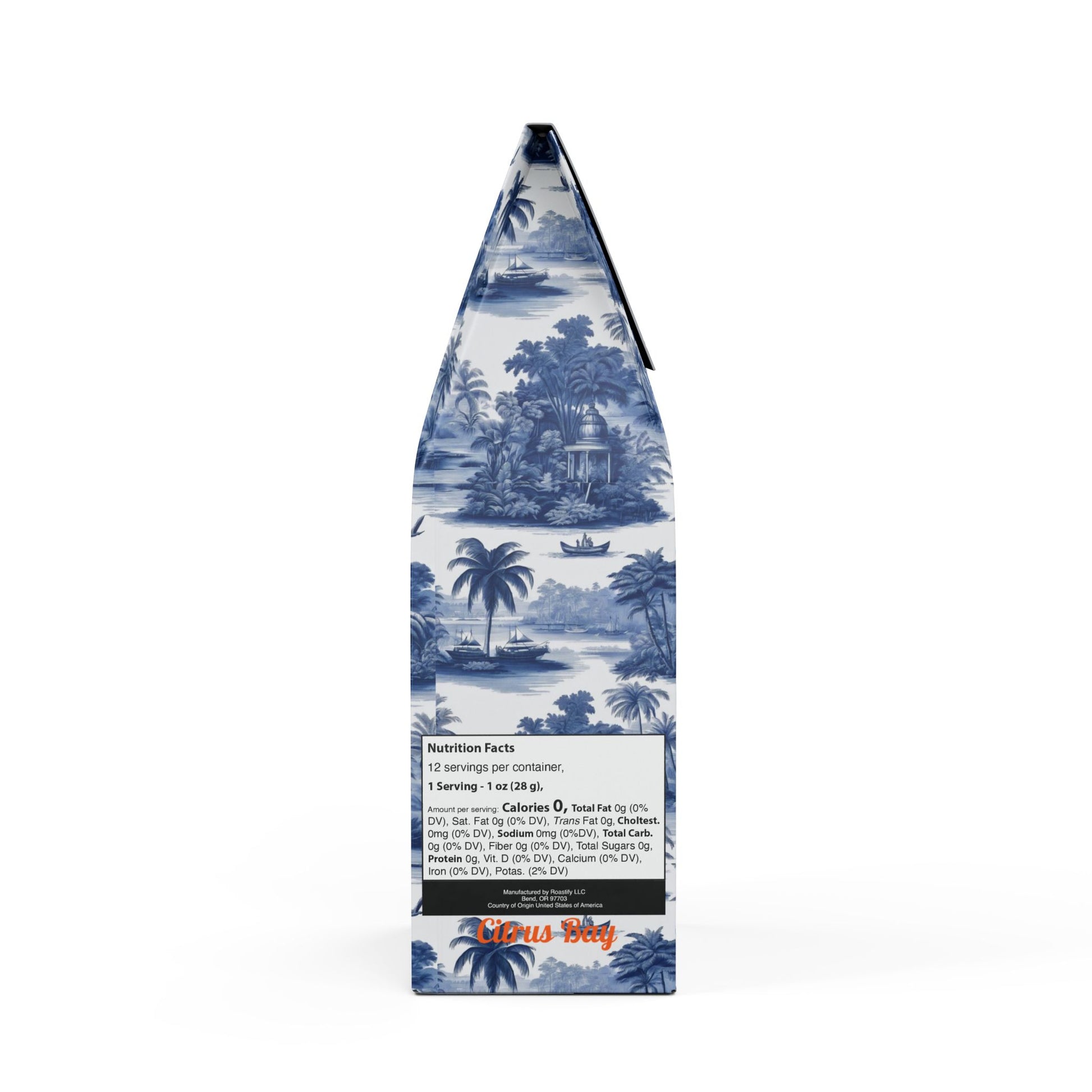 The Citrus Bay Blend™ was made to be your new daily pick-me-up! This 12oz pack boasts a medium roast, delivering a delightful fusion of toffee, dark chocolate, and citrus flavors with tasting notes reminiscent of sweet orange, chocolate, and brown sugar. Sourced from the lush region of Central America, this blend is perfect for brewing in your drip coffee maker, pour-over, espresso machine, Moka Pot, or even a refreshing cold brew. Whether you prefer whole bean or ground, we've got you covered. Certified as "Specialty Grade Craft Coffee." Limted-edition bag art features our original My Last Voyage design, with beautiful stylized coastal toile motifs taking you on a virtual vacay. Don't run out! Join our monthly Subscription coffee plan.