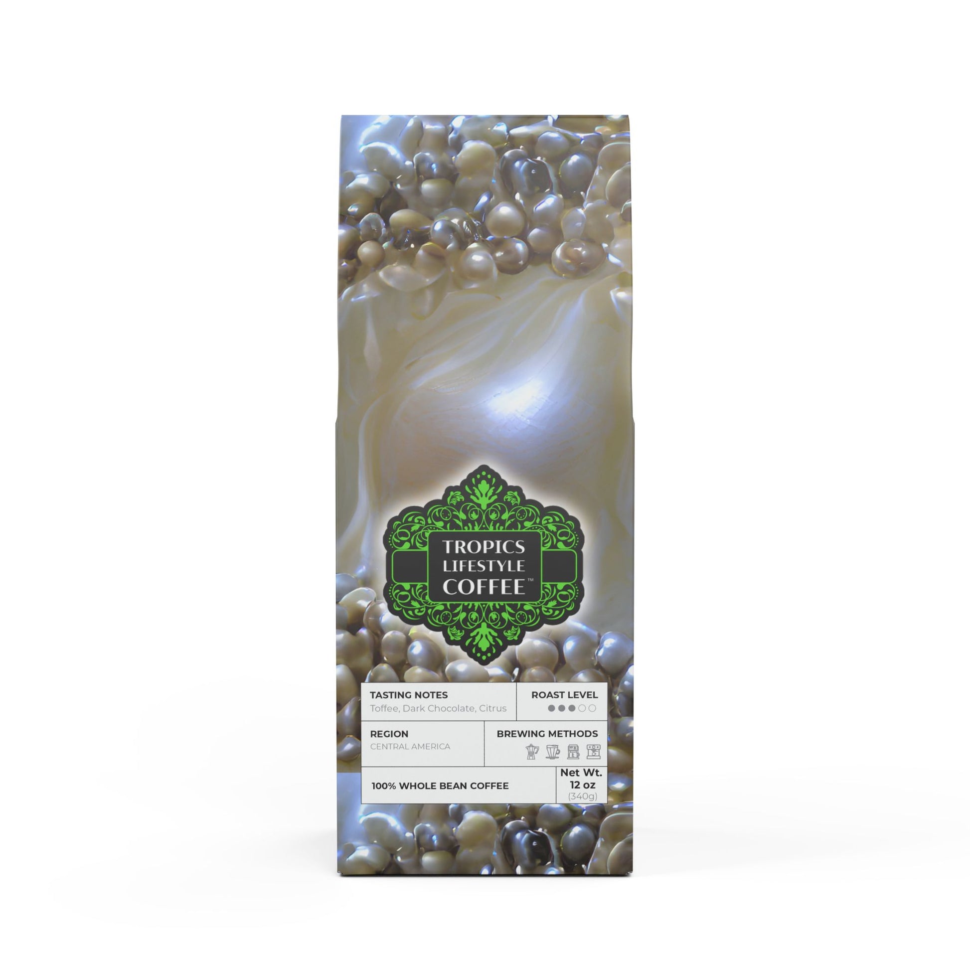 The Citrus Bay Blend™ was made to be your new daily pick-me-up! This 12oz pack boasts a medium roast, delivering a delightful fusion of toffee, dark chocolate, and citrus flavors with tasting notes reminiscent of sweet orange, chocolate, and brown sugar. Sourced from the lush region of Central America, this blend is perfect for brewing in your drip coffee maker, pour-over, espresso machine, Moka Pot, or even a refreshing cold brew. Whether you prefer whole bean or ground, we've got you covered. Certified as "Specialty Grade Craft Coffee." Limited-edition bag artwork features our exclusive Natural Pearls Dream design celebrating the beauty of the pearl, the gemstone of the sea, reimagined and full of luster! Design makes this bag even more gift-able. Consider subscribing to our monthly coffee club to never run out of this stellar coffee blend
