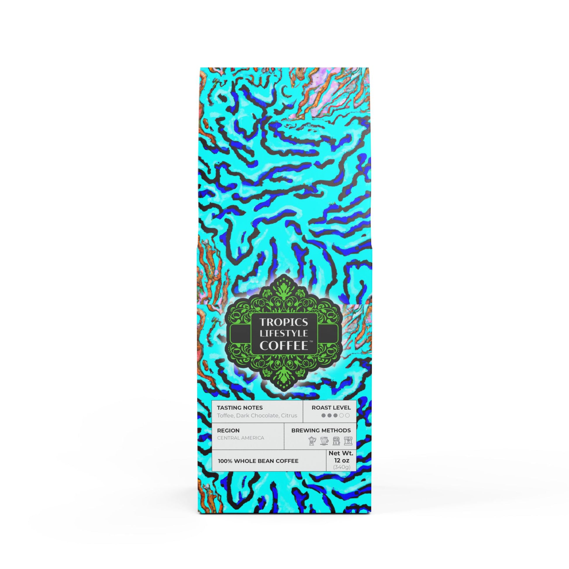 The Citrus Bay Blend™ was made to be your new daily pick-me-up! This 12oz pack boasts a medium roast, delivering a delightful fusion of toffee, dark chocolate, and citrus flavors with tasting notes reminiscent of sweet orange, chocolate, and brown sugar. Sourced from the lush region of Central America, this blend is perfect for brewing in your drip coffee maker, pour-over, espresso machine, Moka Pot, or even a refreshing cold brew. Whether you prefer whole bean or ground, we've got you covered. Certified as "Specialty Grade Craft Coffee." Top 10% of all coffee produced in world. Limited-edition bag art features our original Wild Coral Reef stylized design, evoking feelings of a dreamy underwater tropical destination to explore. Don't run out! Join our monthly Subscription coffee plan.