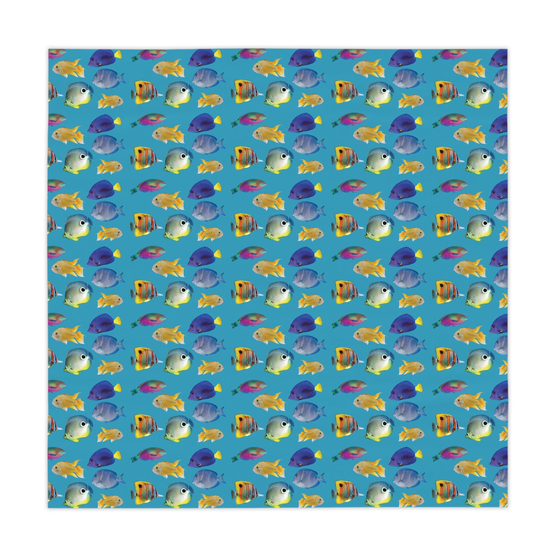 Add a touch of vibrant tropical art to your dining experience with this beautiful tablecloth. Crafted from 100% polyester, this one-size 55.1" x 55.1" square table decor it's not only durable but also retains its shape while drying quickly. The full-print school of fish tropical design brings to life a stunning array of colors, making it the perfect centerpiece for any meal or gathering. Lightweight and soft to the touch, this tablecloth creates an inviting atmosphere, ideal for both casual family dinners and festive occasions. Perfect for those who love to host, entertain, or simply enjoy a beautifully adorned table. This tablecloth is ideal for holidays, celebrations, or cozy dinners at home, enriching every event with its lively charm. Suitable for enthusiasts of home decor, gardening, and nature-inspired designs, it adds a splash of style to any setting.