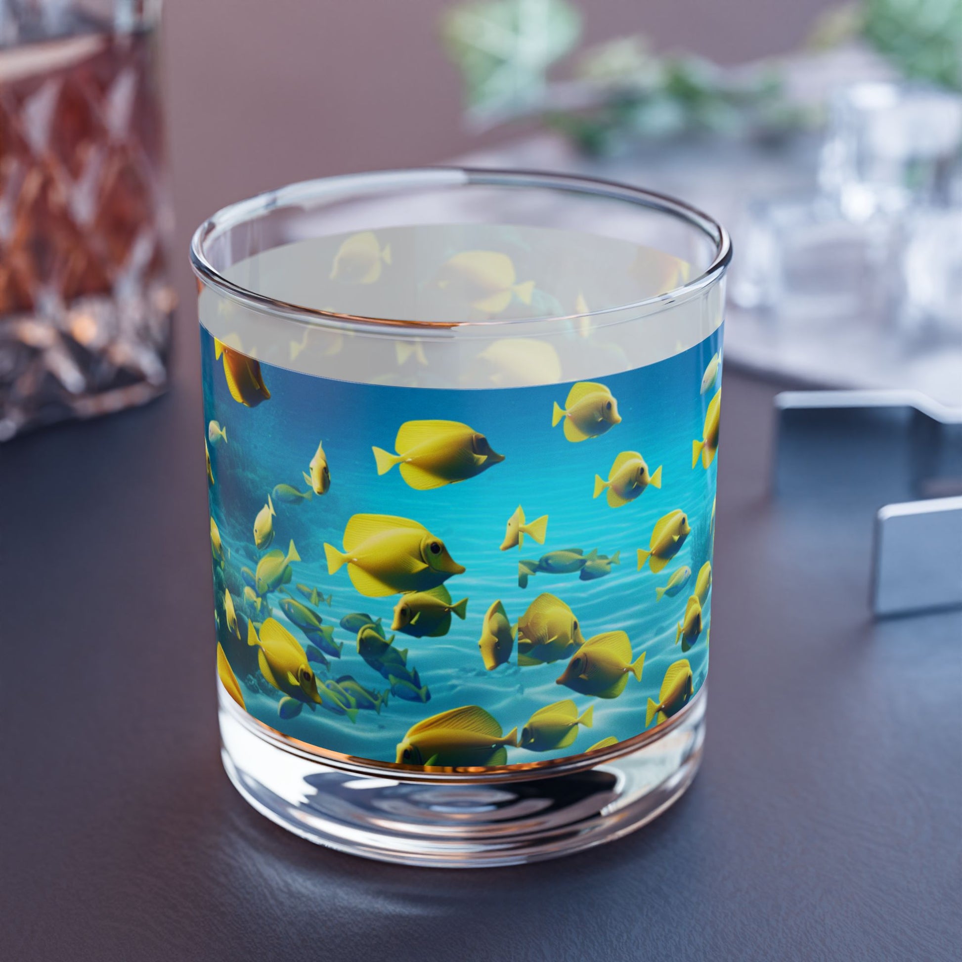 School of Fish/Yellow Tangs Rocks Glass - 10oz Colorful Tropical Design