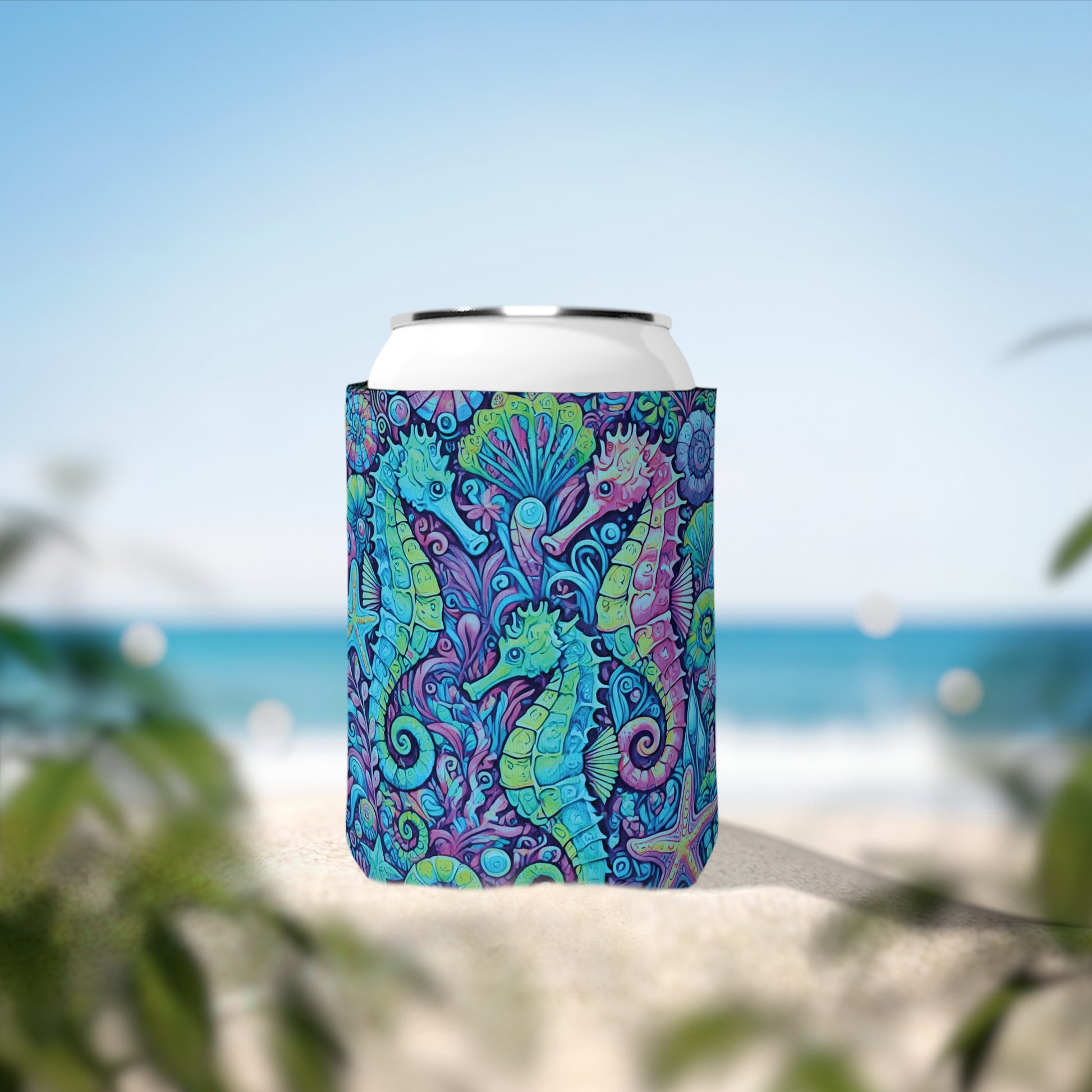 Seahorse Trio/Turquoise Pop Can Cooler Sleeve - Perfect for Outdoor Picnics