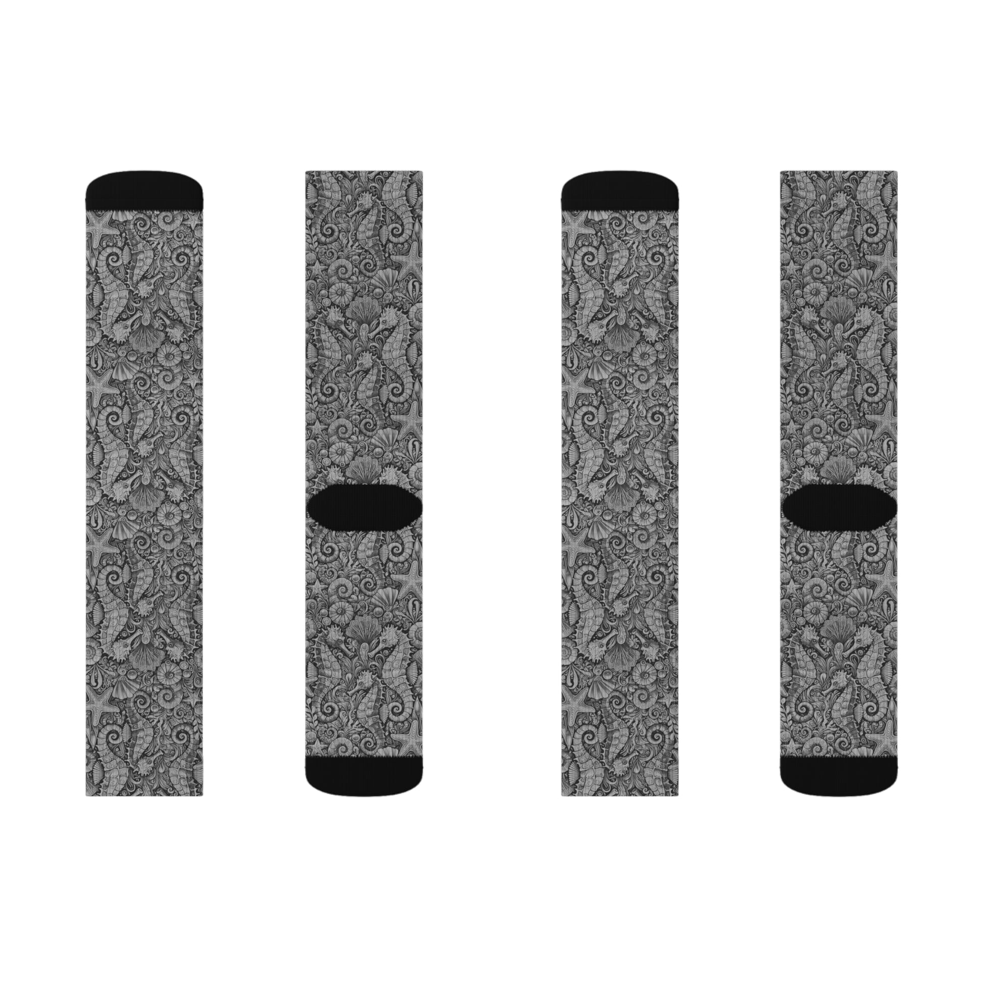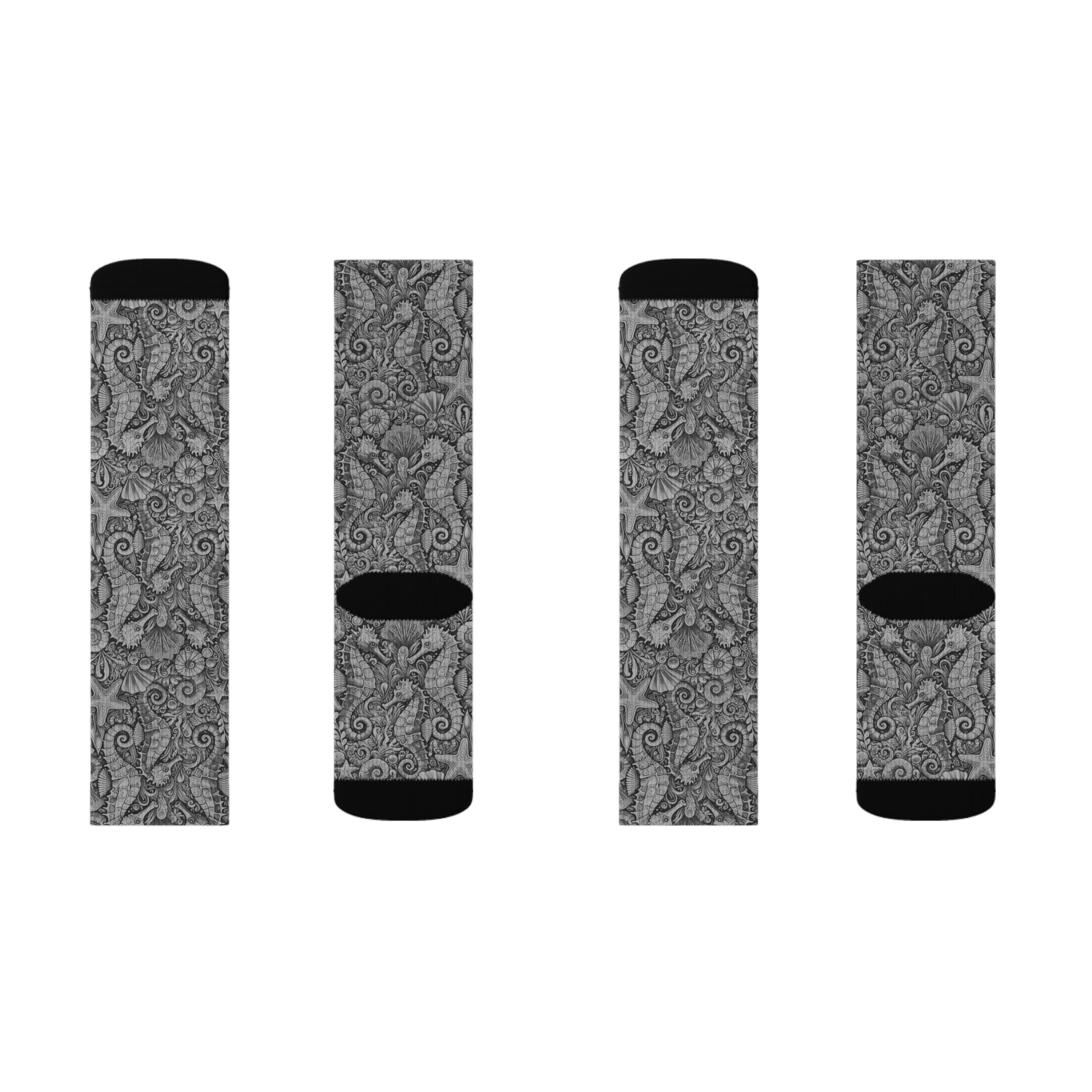 Seahorses/Noir Sublimation Fleece-Lined Socks - Colorful Tropical Design