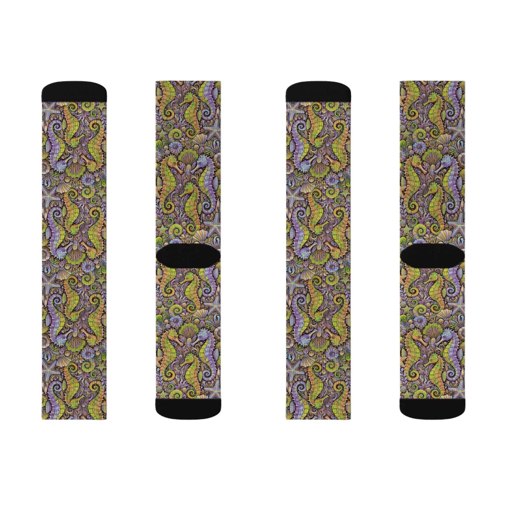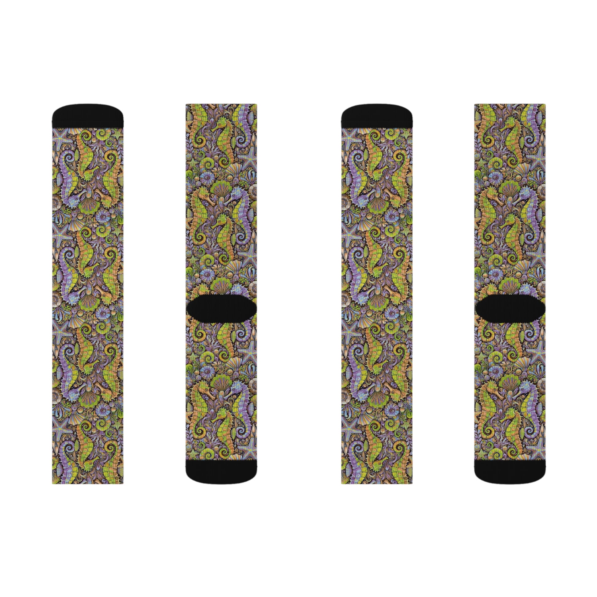 Seahorses/Purple Sublimation Fleece-Lined Socks - Colorful Tropical Design