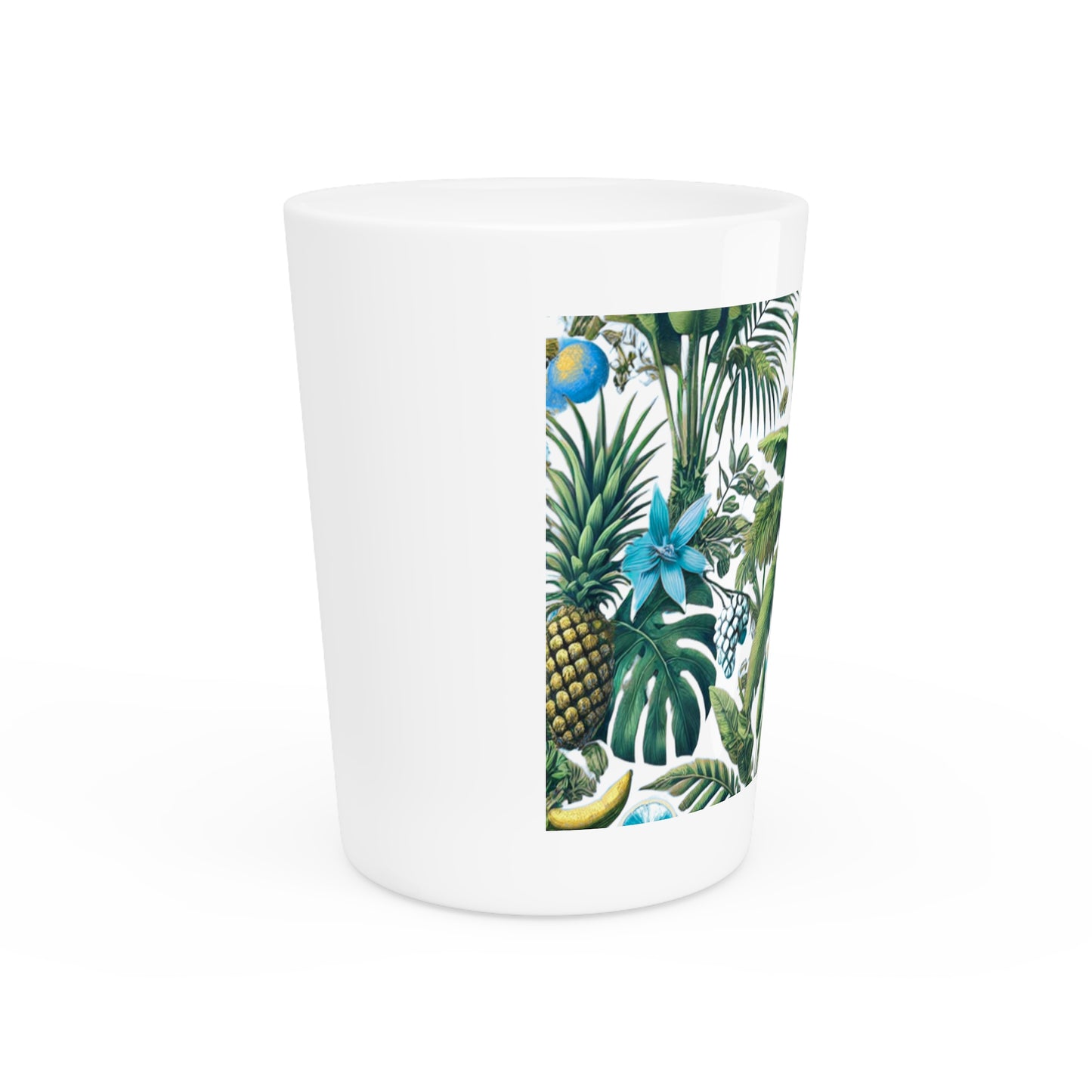 Add a touch of the tropics to your home with a custom shot glass featuring our exclusive classic design of a brown wicker button. Made with ceramic material, this shot glass is available with a white or black interior. Functional art for yourself or to give as a gift!