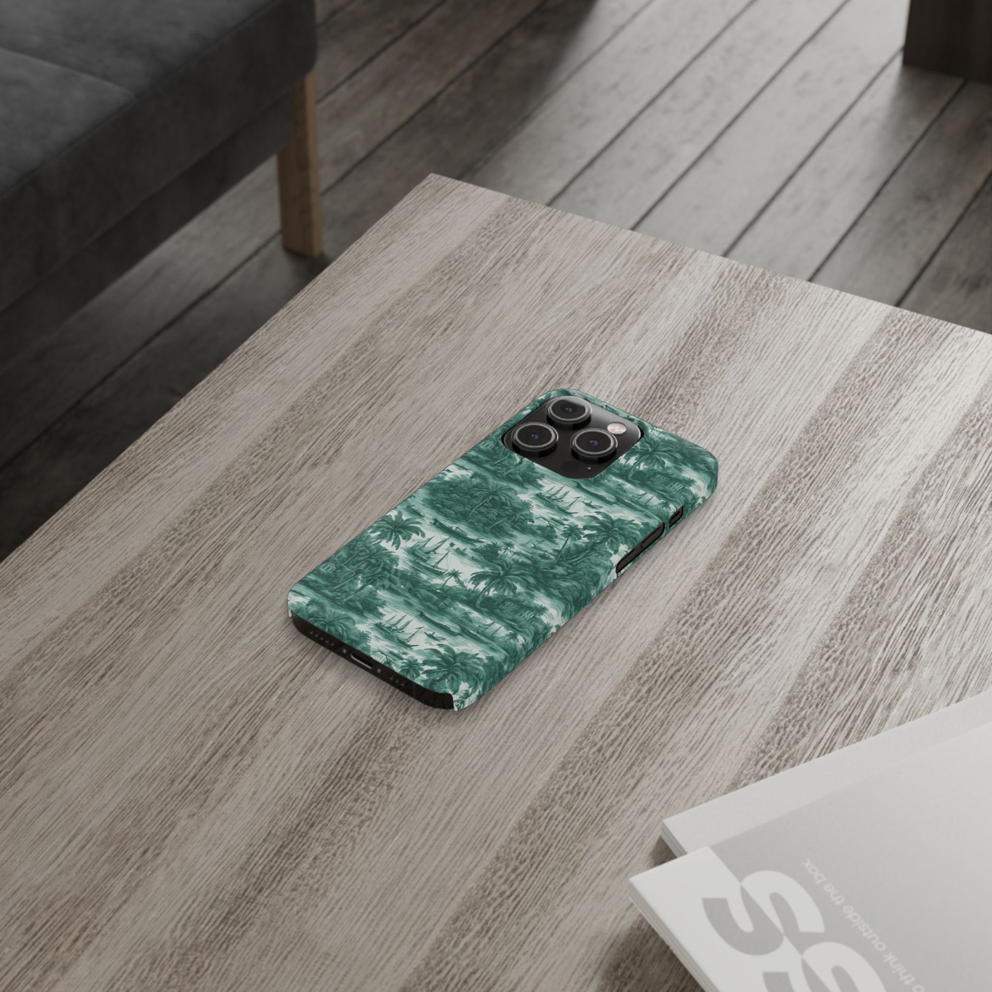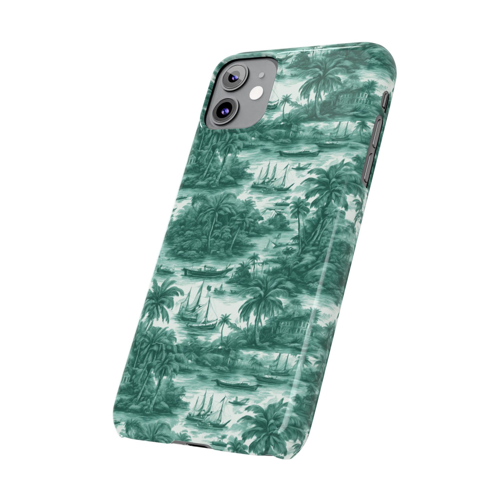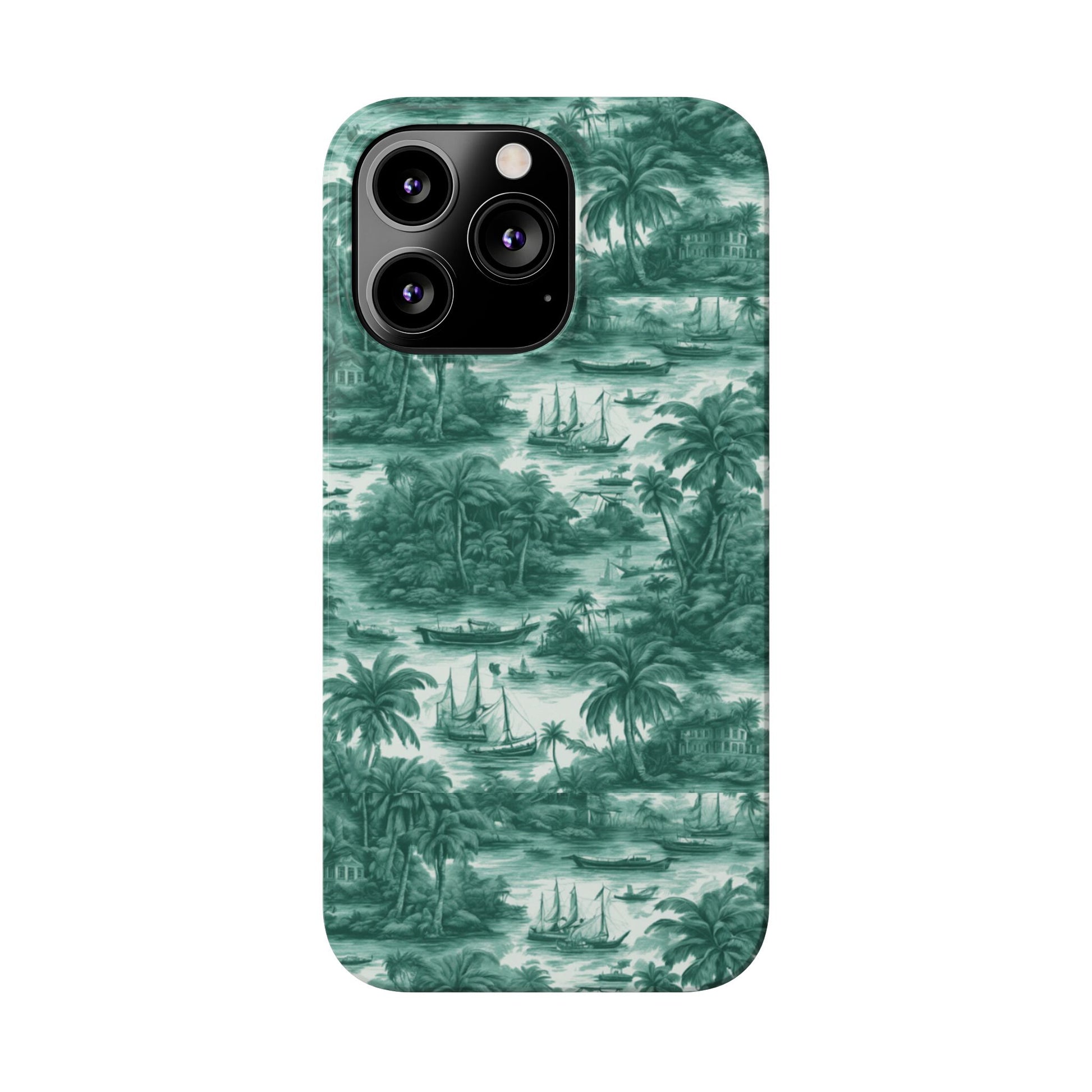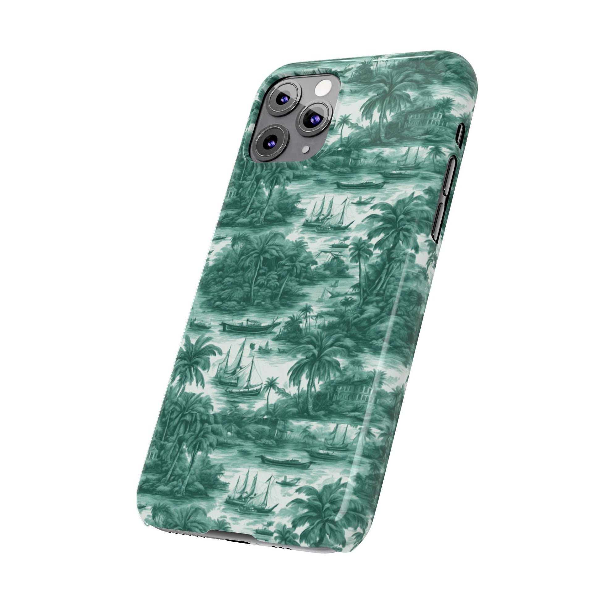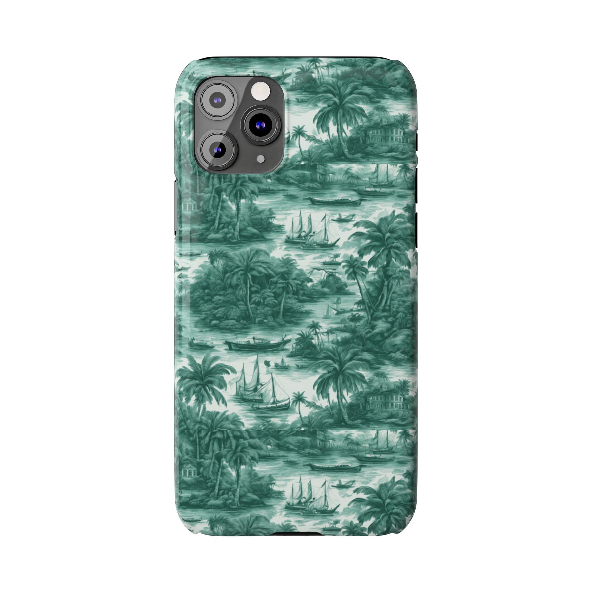 Slim Phone Cases - Tropical Toile #1, evergreen
