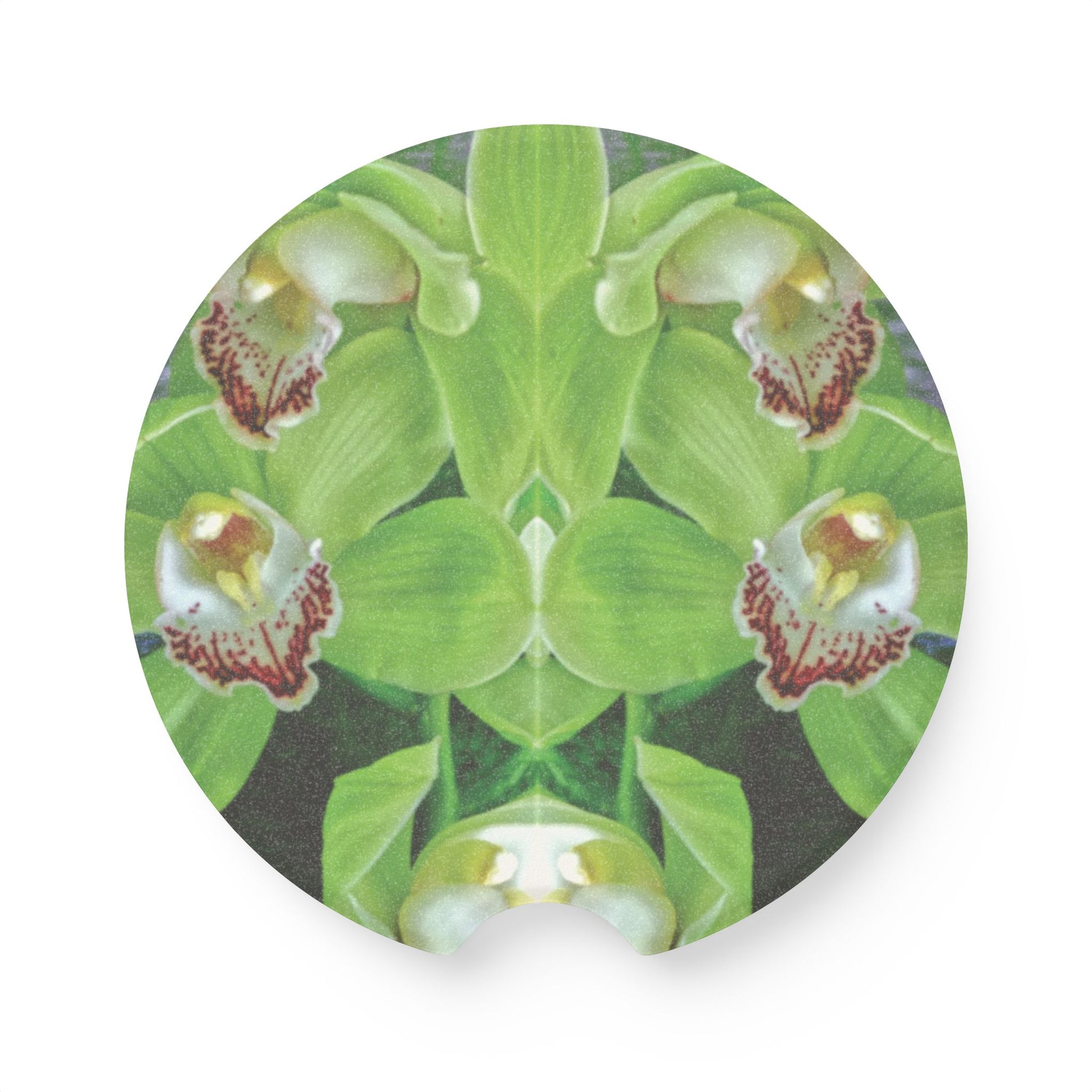 Soapstone Car Coaster - Kaleido Green Orchids
