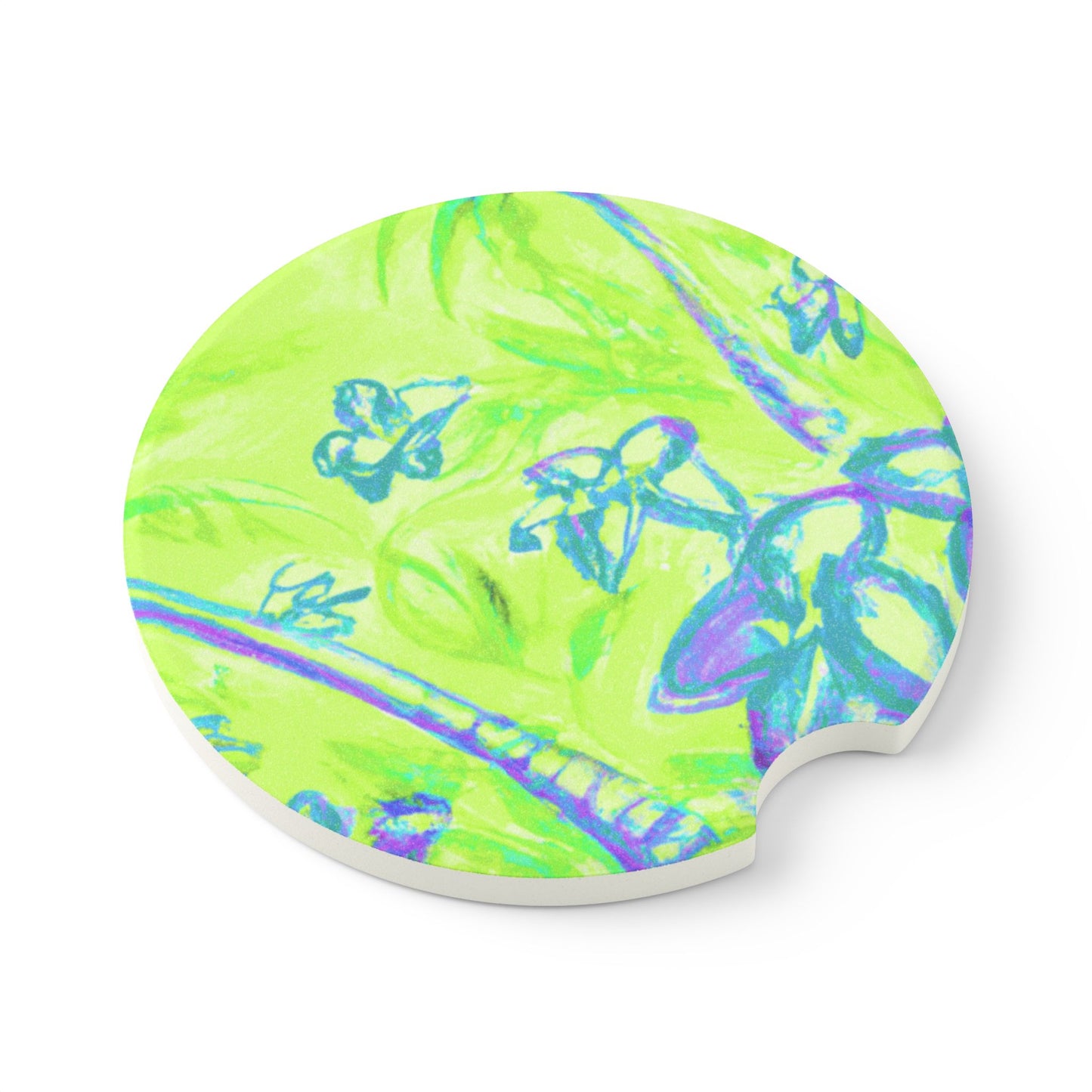 Soapstone Car Coaster - Tropical Doodles, Lime Green