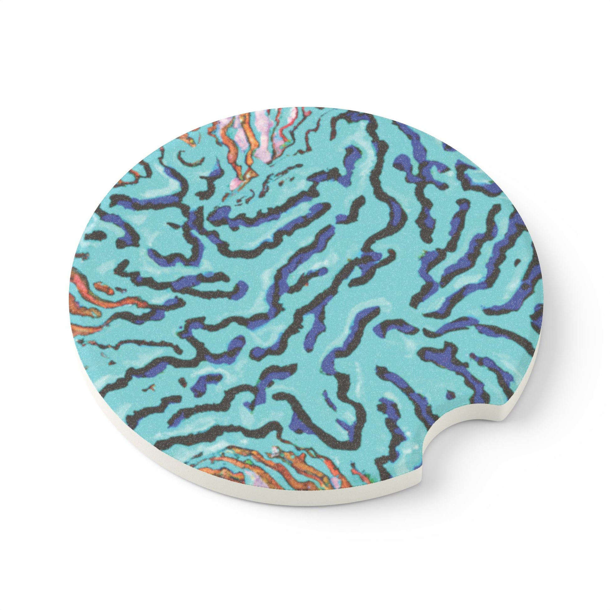Crafted from highly durable and absorbent soapstone, these car coasters blend custom looks and functionality in one neat package for every car. This must-have car accessory absorbs all moisture from your cold or hot en-route drinks and looks perfect in any car interior. Buy 1, 2 or 4 coasters to match your commuting needs. Features wild coral reef design based on photo of real coral.