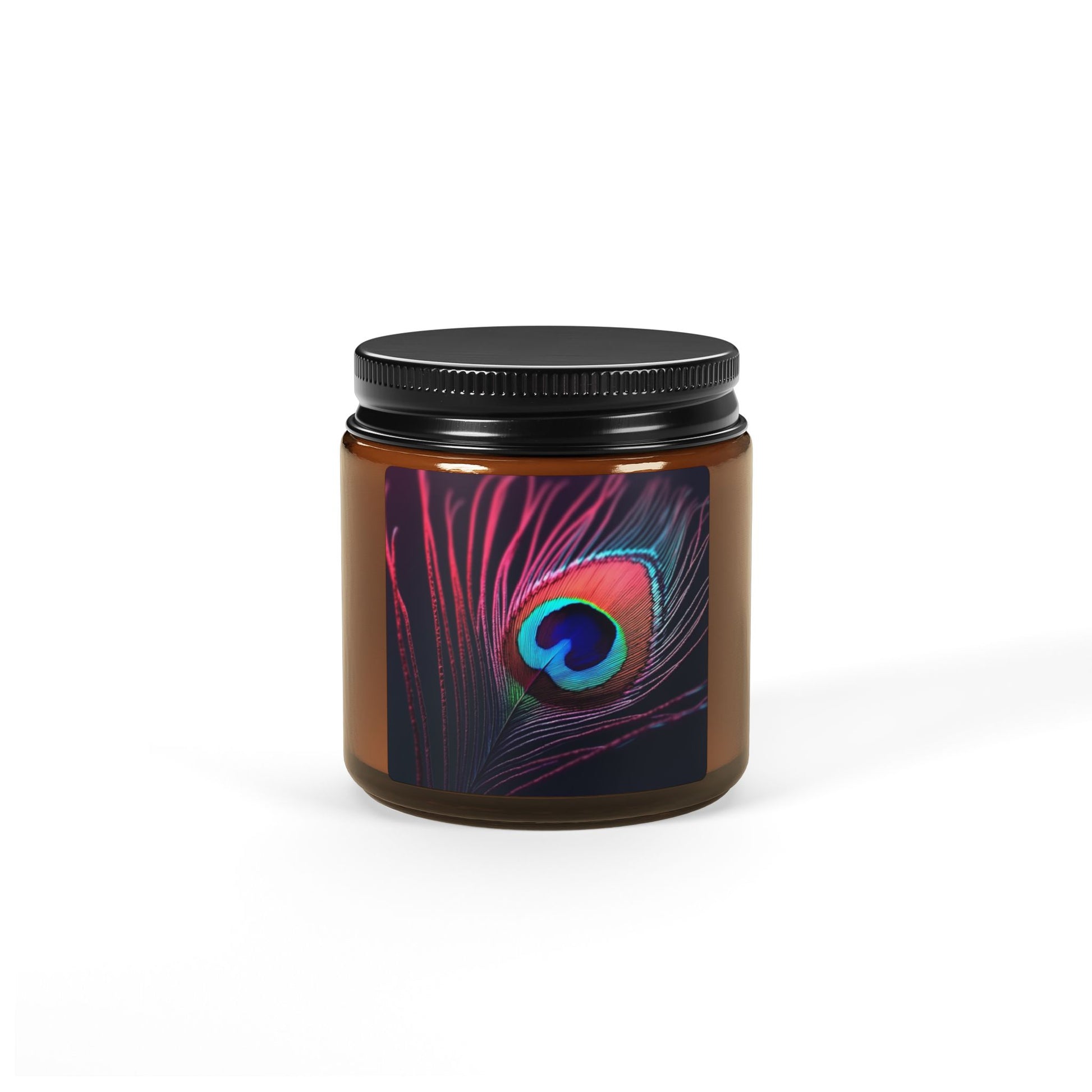 Soy Candle in Amber Jar - Multi-Size / Peacock Eye Feather, Magenta