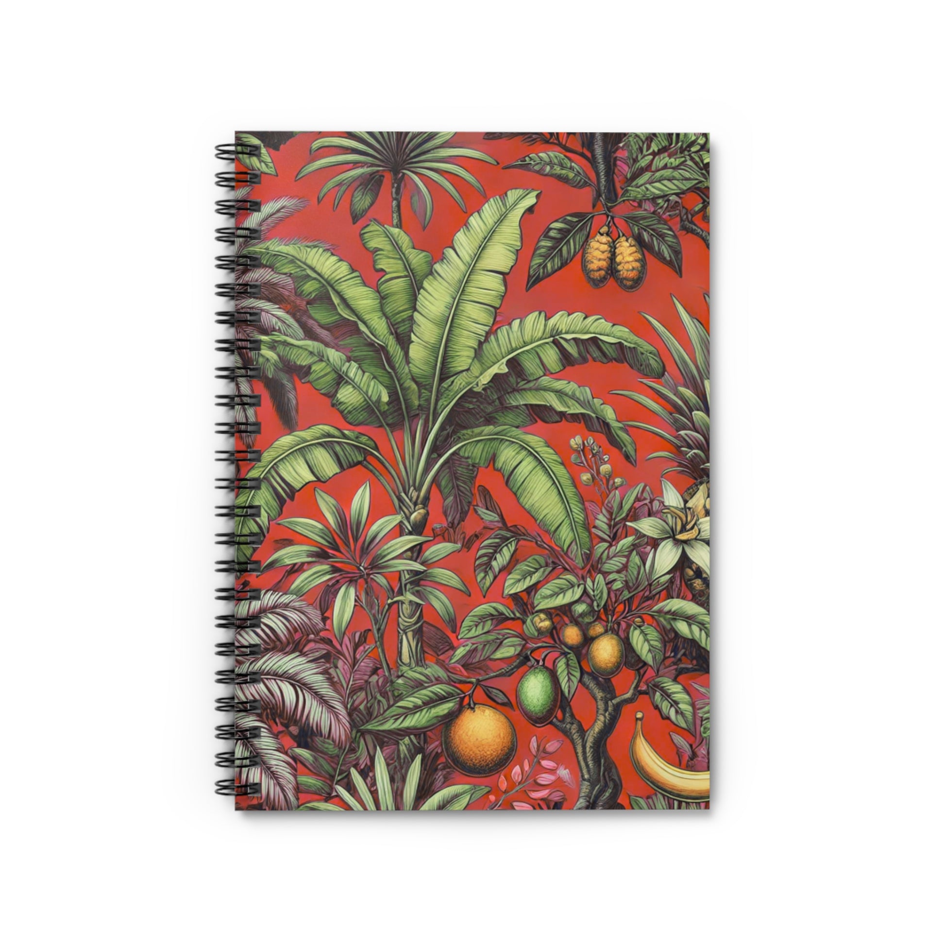 Stay organized and inspired with our exclusive tropical palm trees and fruit cover art design on a 6" x 8" notebook. Notebook is a great size for jotting down shopping lists, school notes, or poems, and a great addition to your everyday life. Ideal for students, writers, and anyone who loves to stay organized in style. Relevant for back-to-school season, birthday gifts, and everyday use.