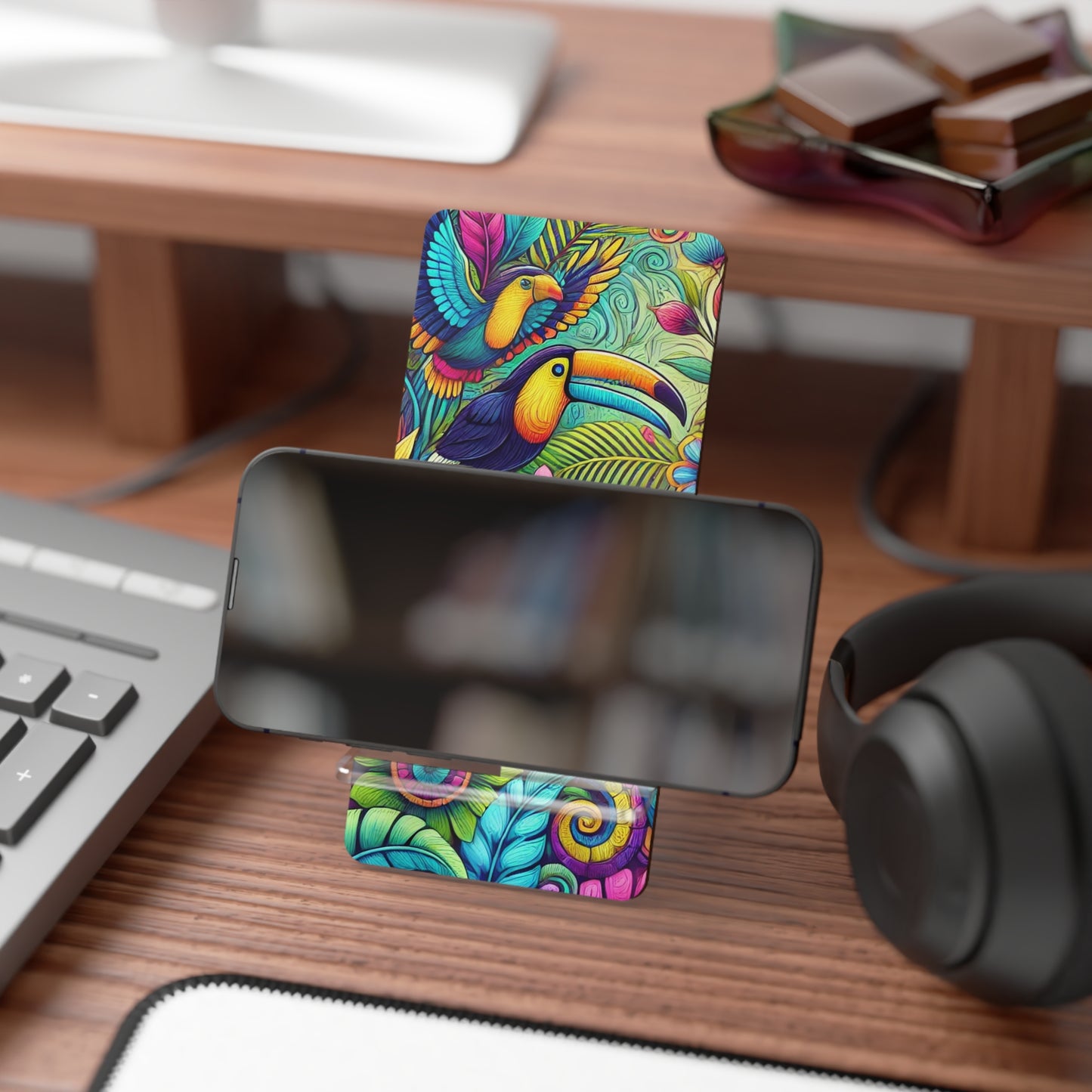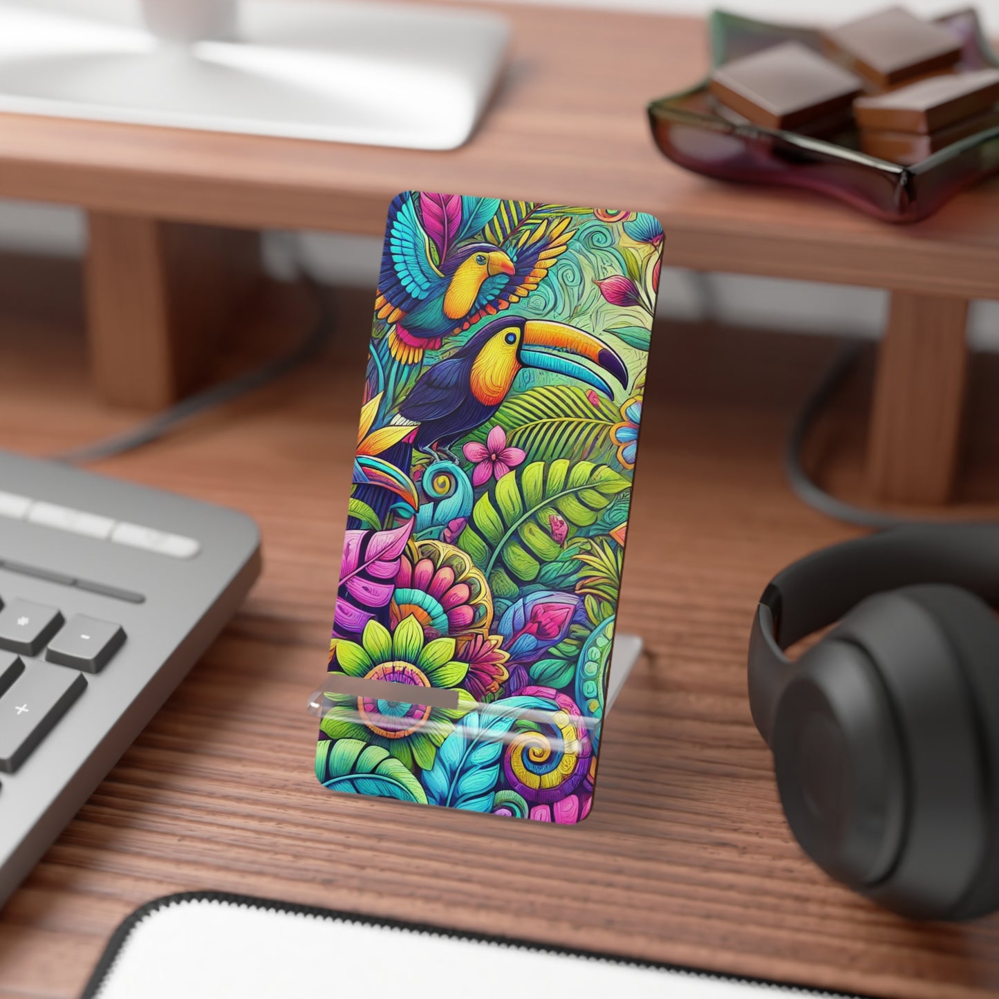 Elevate your workspace with this stylish tropical Mobile Display Stand for Smartphones. Featuring vibrant colors and our original tropical design, it adds a lively touch to any setting. The glossy finish enhances its appeal, making it a perfect gift for loved ones, friends, or yourself! Ideal for students, professionals, or anyone who values organization, this stand keeps your phone accessible while you work, study, or relax. It’s perfect for any occasion, from birthdays to holiday celebrations, and even as a thoughtful gesture for housewarming events. Bring creativity and functionality into your daily life with this exceptional smartphone accessory.
