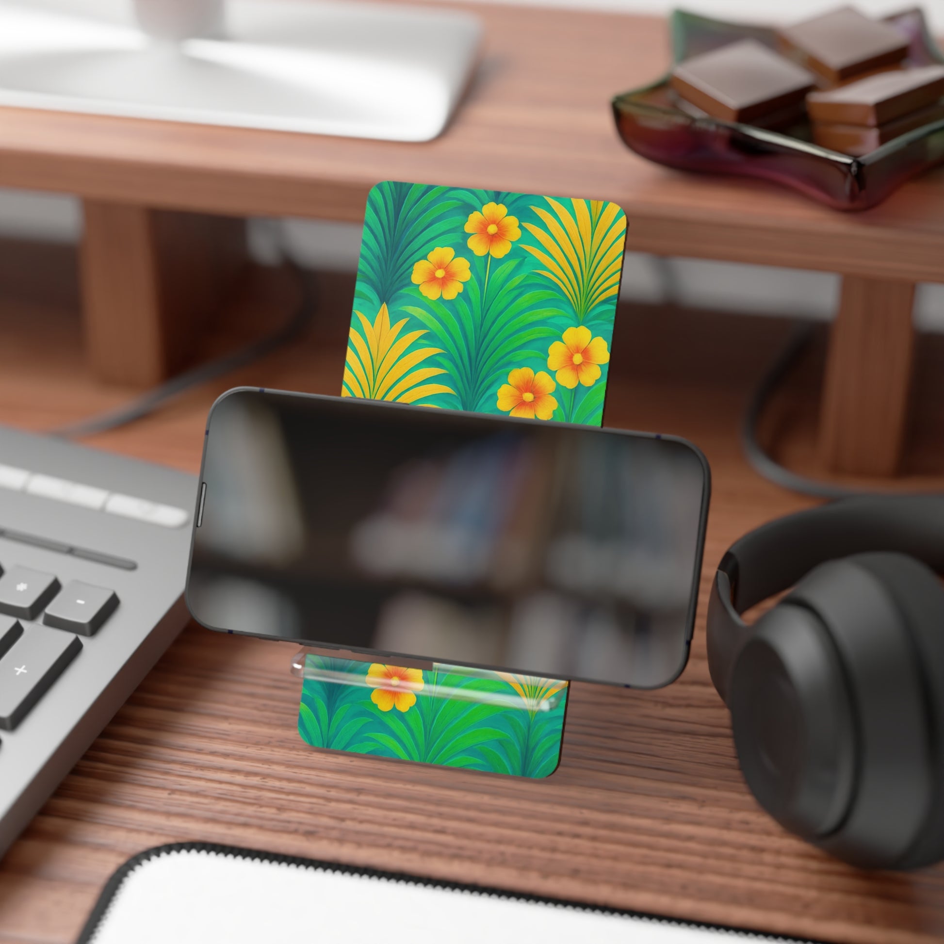 Elevate your workspace with this stylish tropical Mobile Display Stand for Smartphones. Featuring vibrant colors that bring your favorite designs to life, it adds a lively touch to any setting. The glossy finish enhances its appeal, making it a perfect gift for loved ones, friends, or yourself! Ideal for students, professionals, or anyone who values organization, this stand keeps your phone accessible while you work, study, or relax. It’s perfect for any occasion, from birthdays to holiday celebrations, and even as a thoughtful gesture for housewarming events. Bring creativity and functionality into your daily life with this exceptional smartphone accessory.