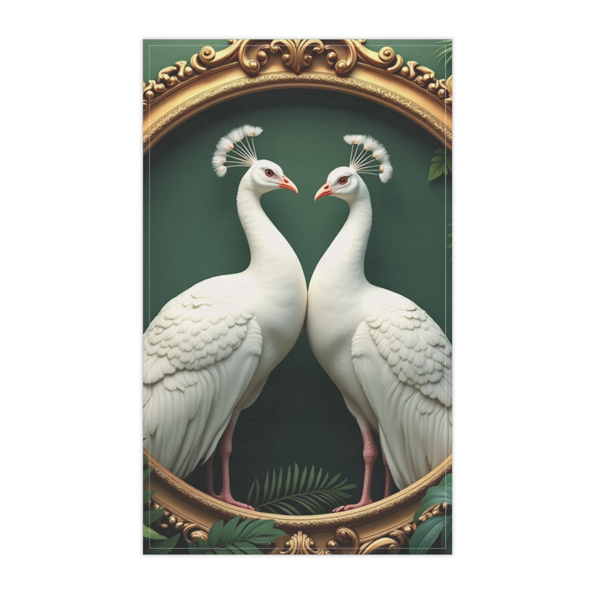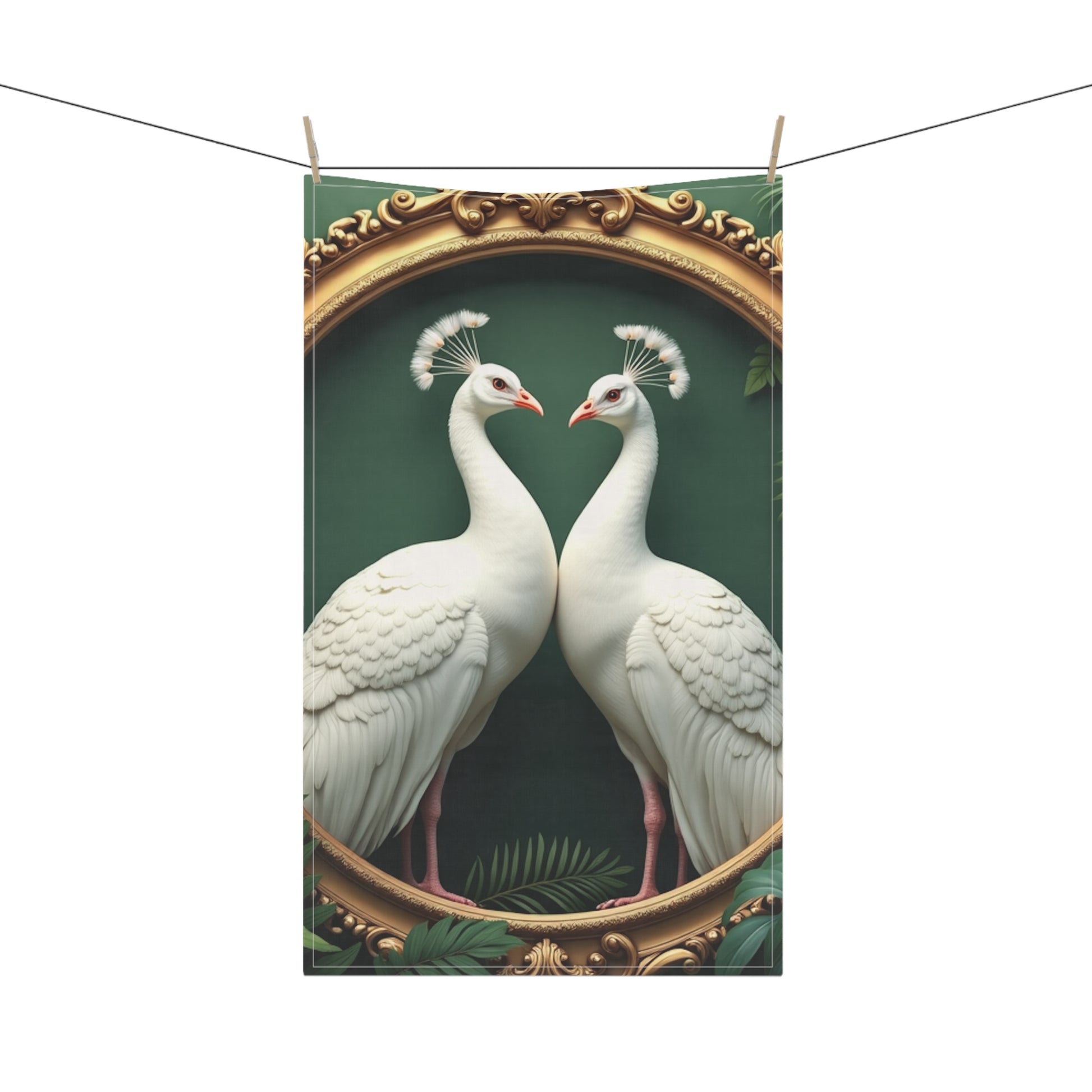 Tea Towels (cotton, poly) - Framed White Pecocks