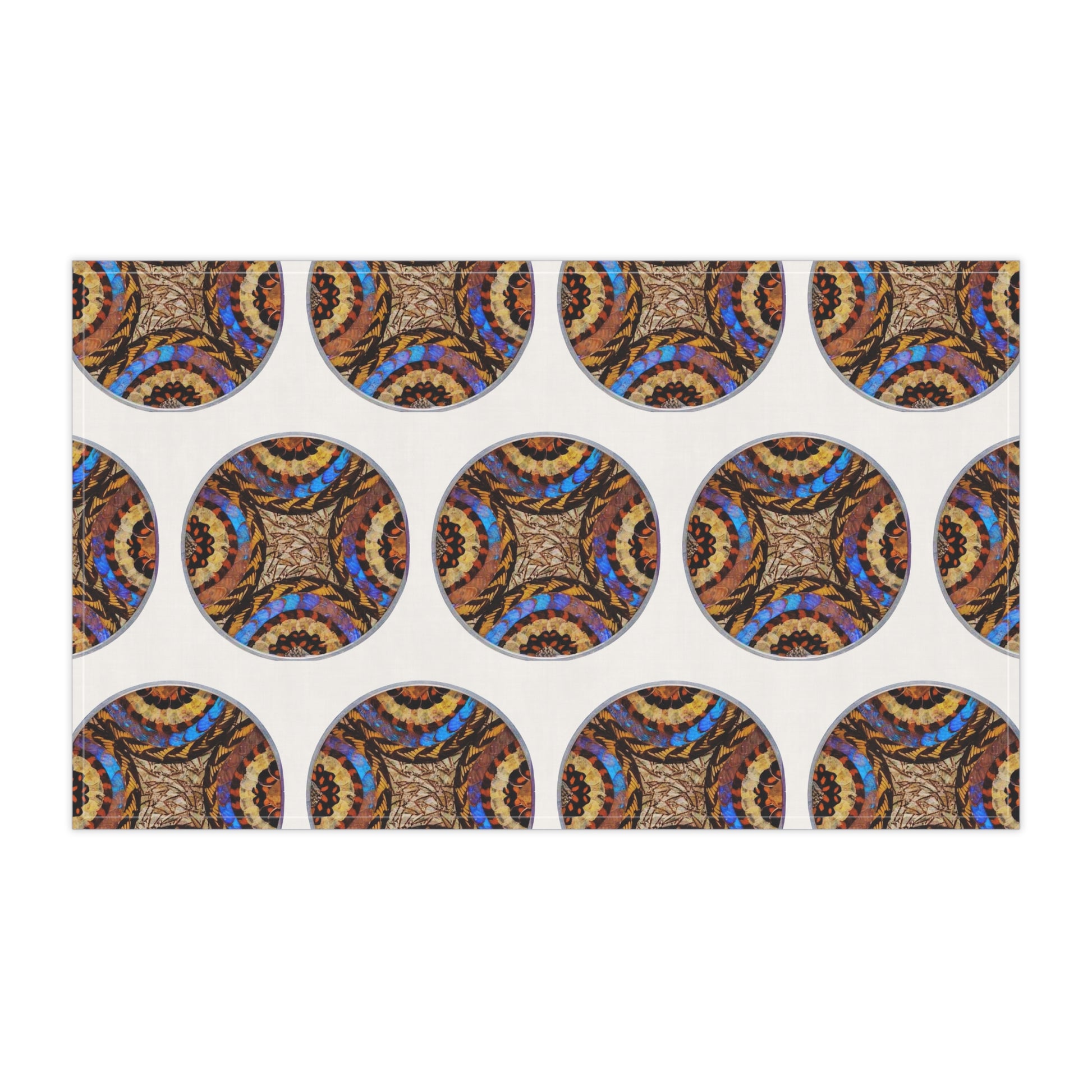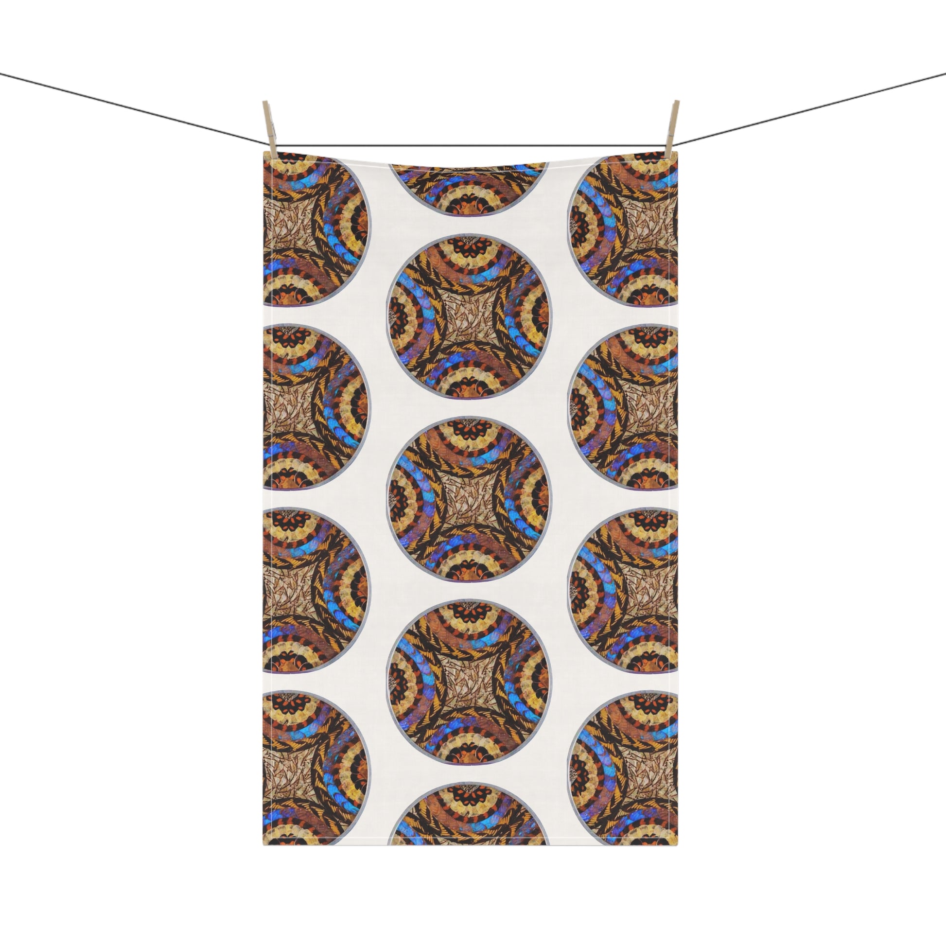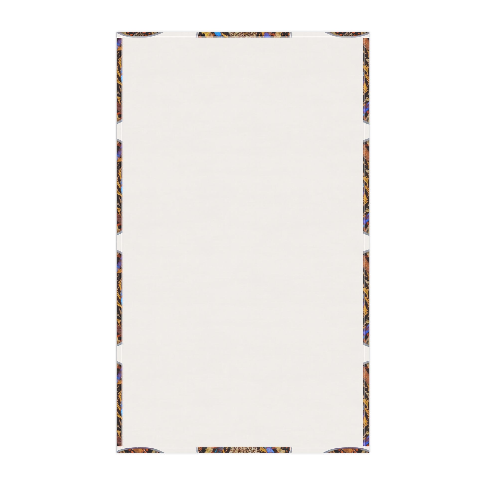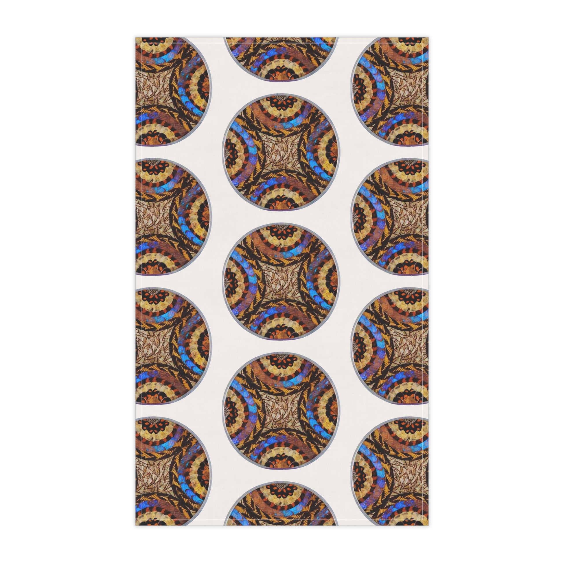 Here to add a touch of character & utility to any kitchen. Not only does it have a stunning one-sided print, but it's also a trusty and expressive helper to the cook. Choose between polyester or cotton material to best match your decorative or cooking needs. Features photo of 1950's Brazilian wall plate showcasing real exotic butterfly wings in a beautiful pattern under curved glass. Towel takes you to rainforest Paradise every day!