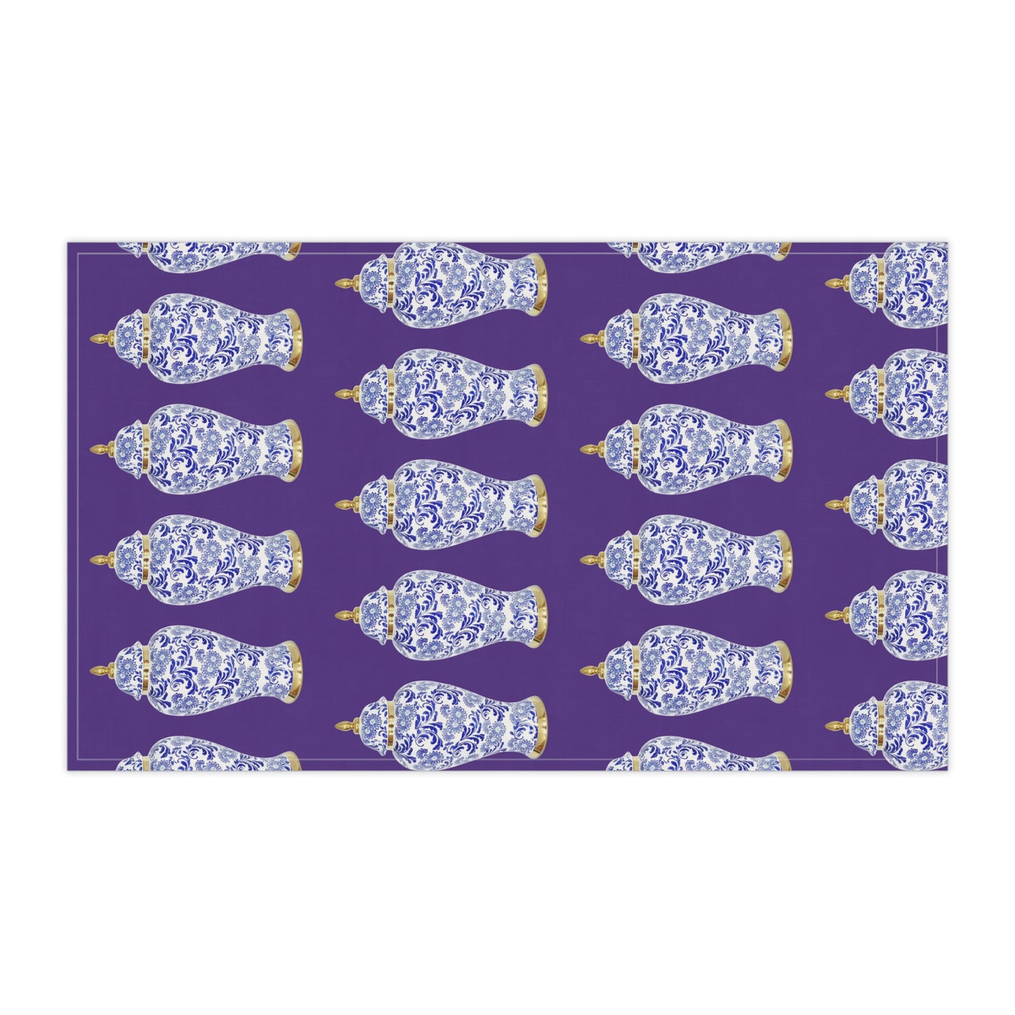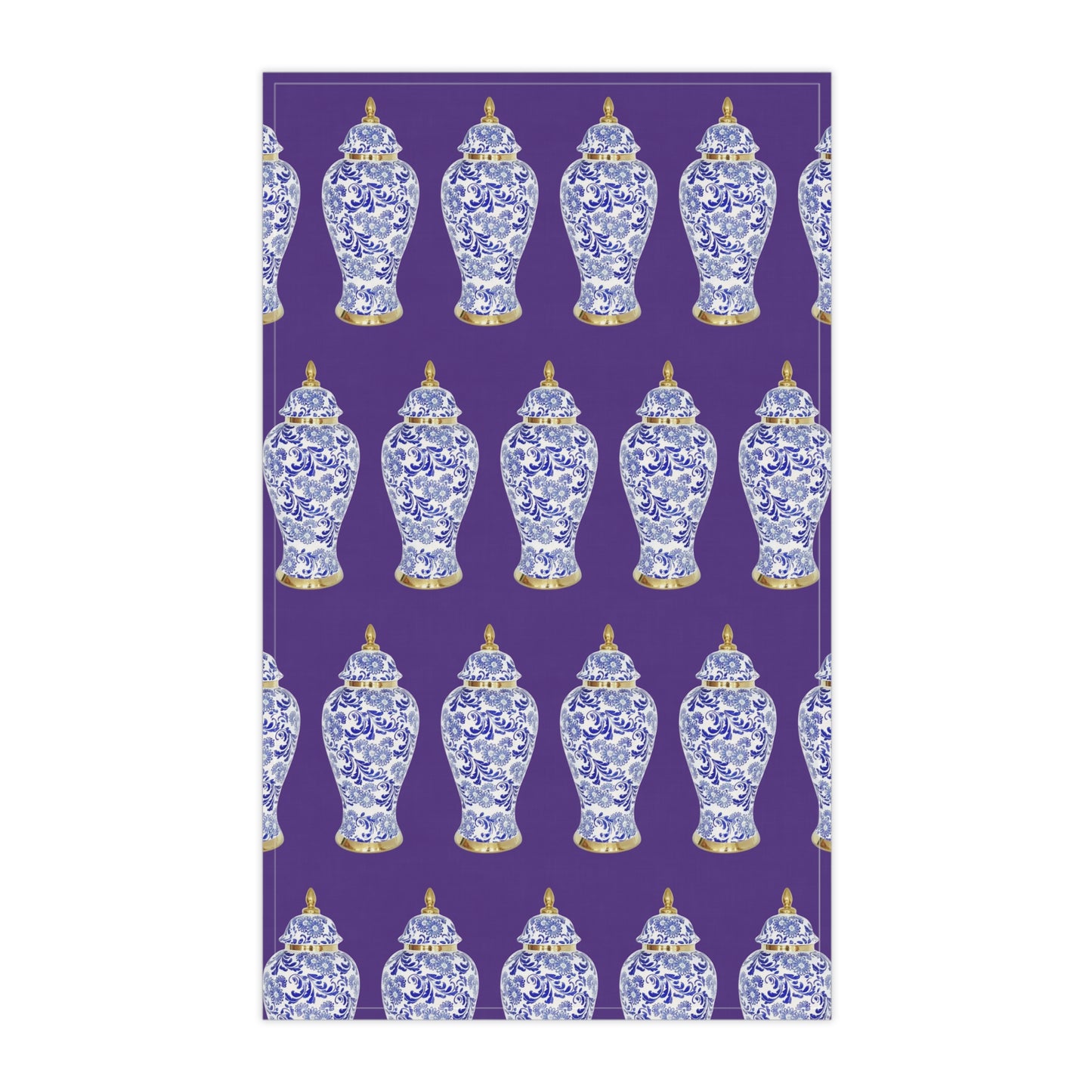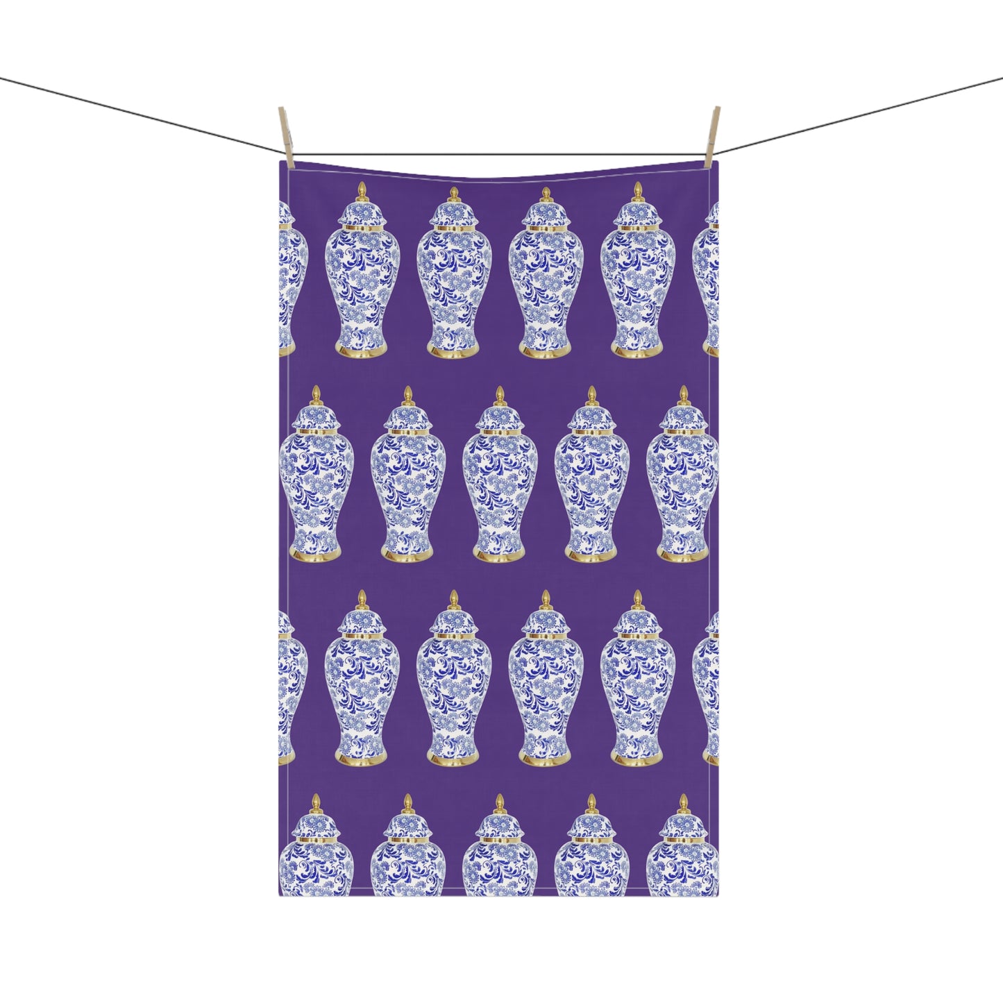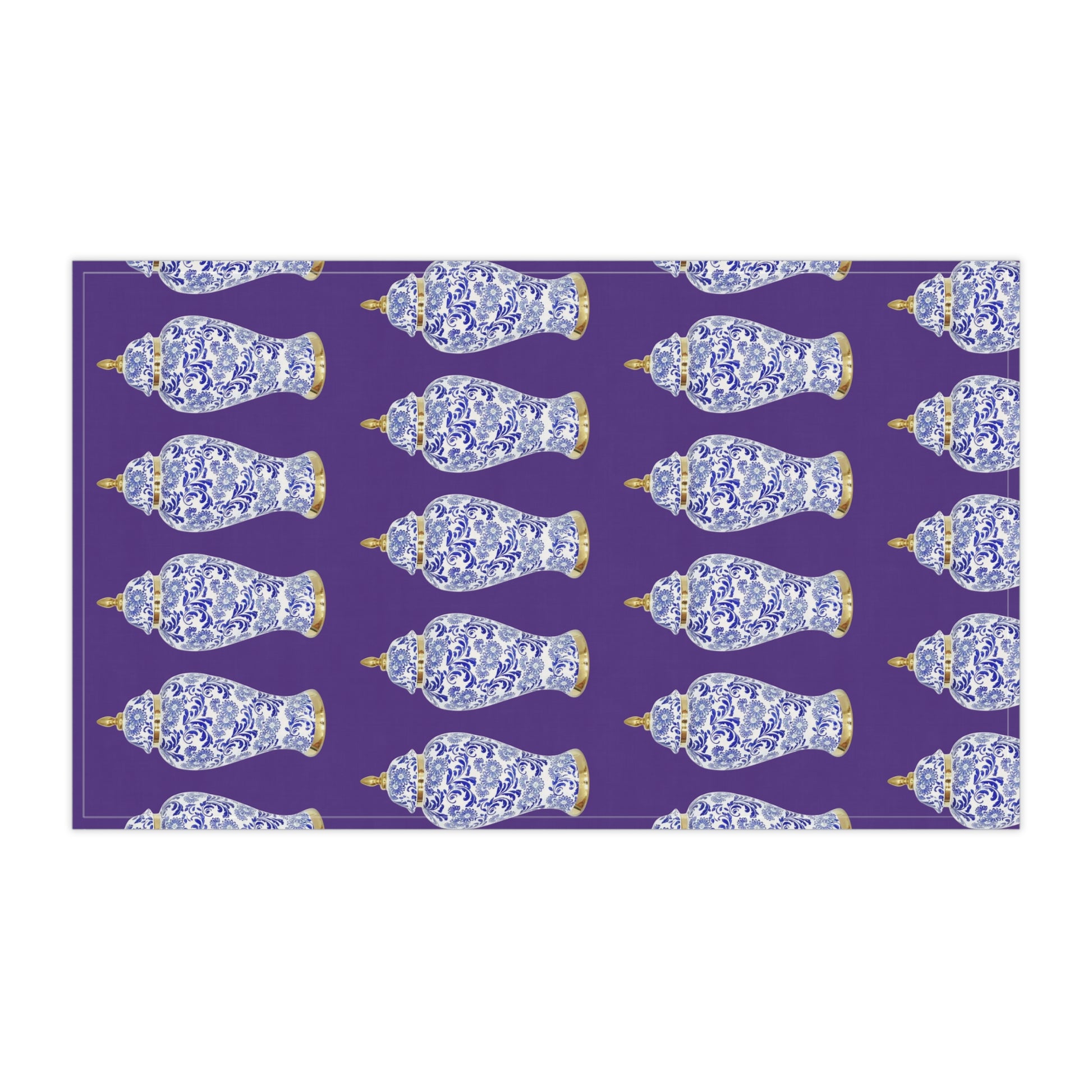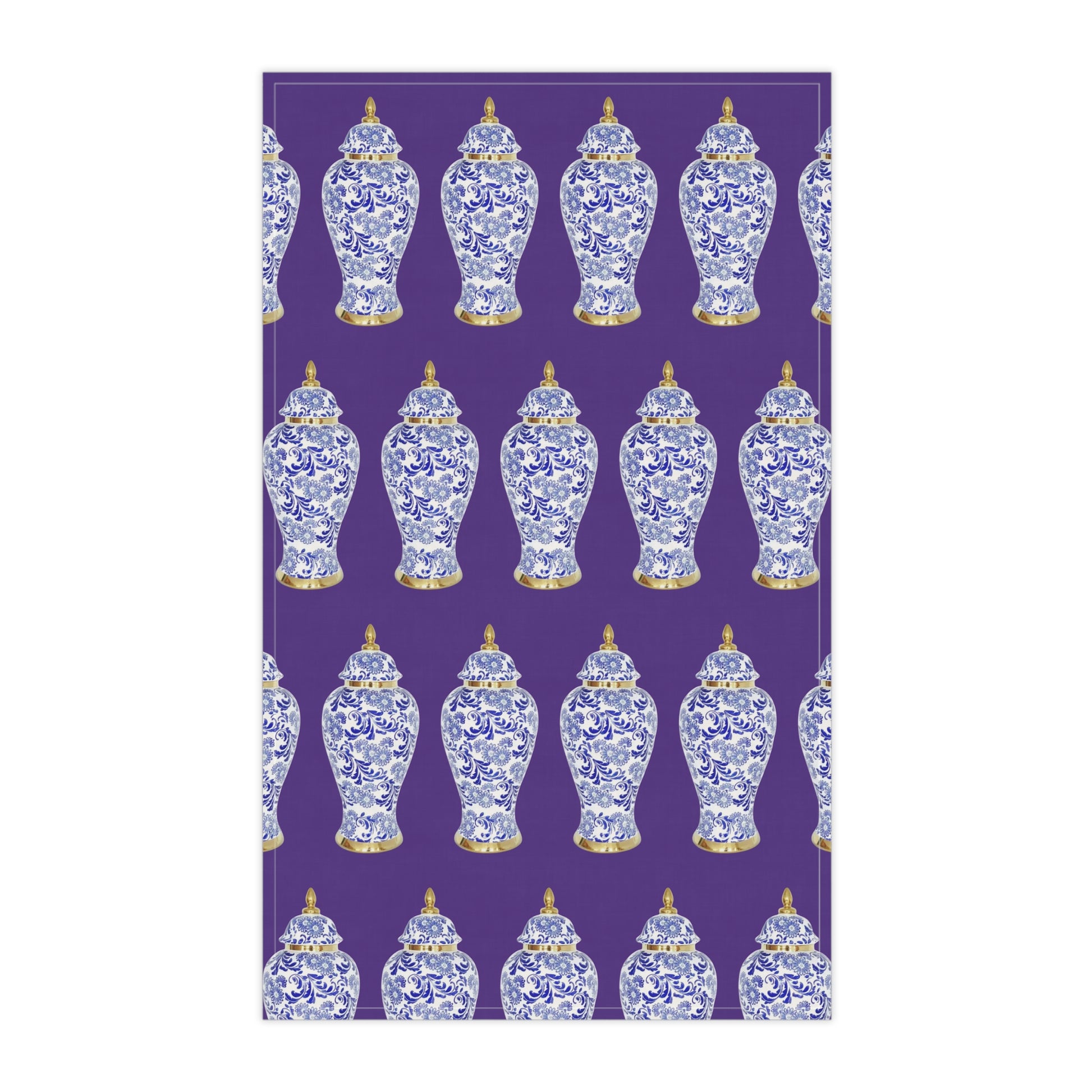 TeaTowels (cotton, poly), Blue and Gold Ginger Jar repeat purple
