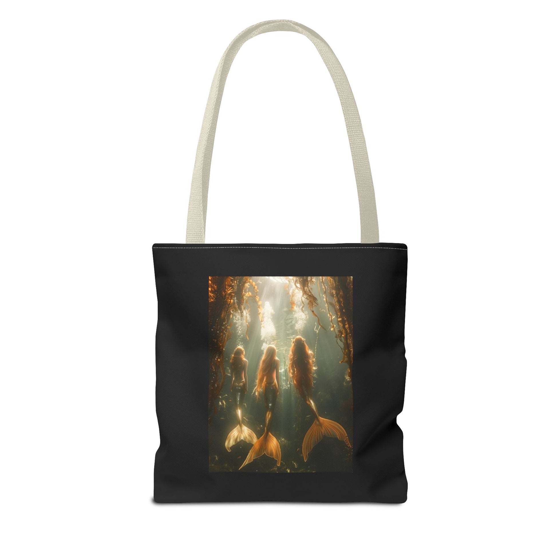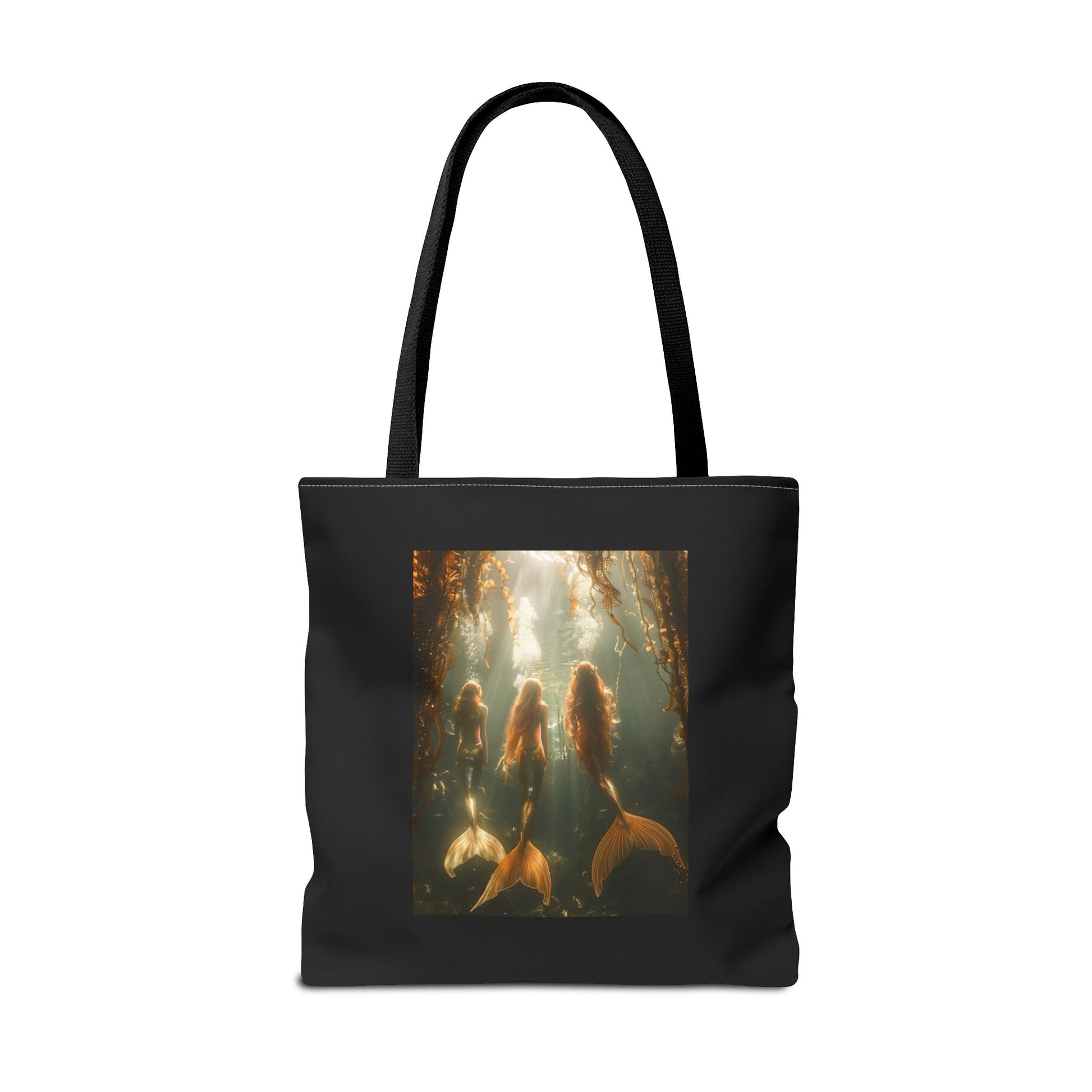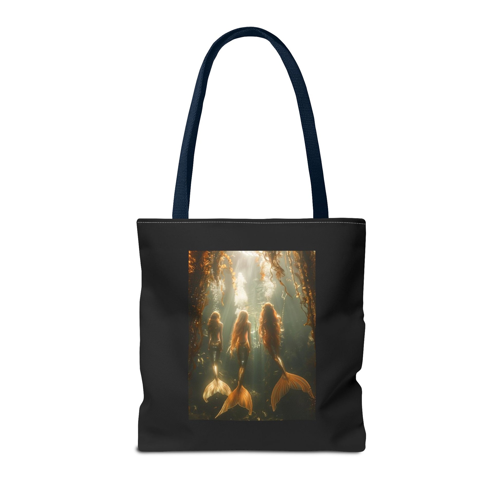 Three Mermaid Sisters, Black Tote Bag - 3 Sizes