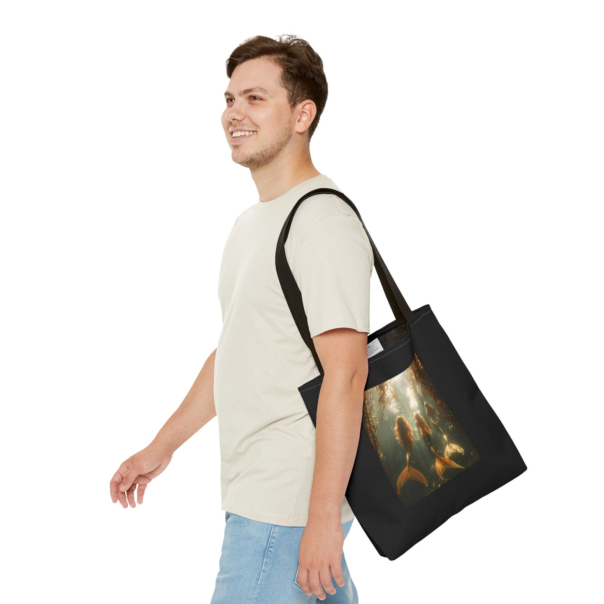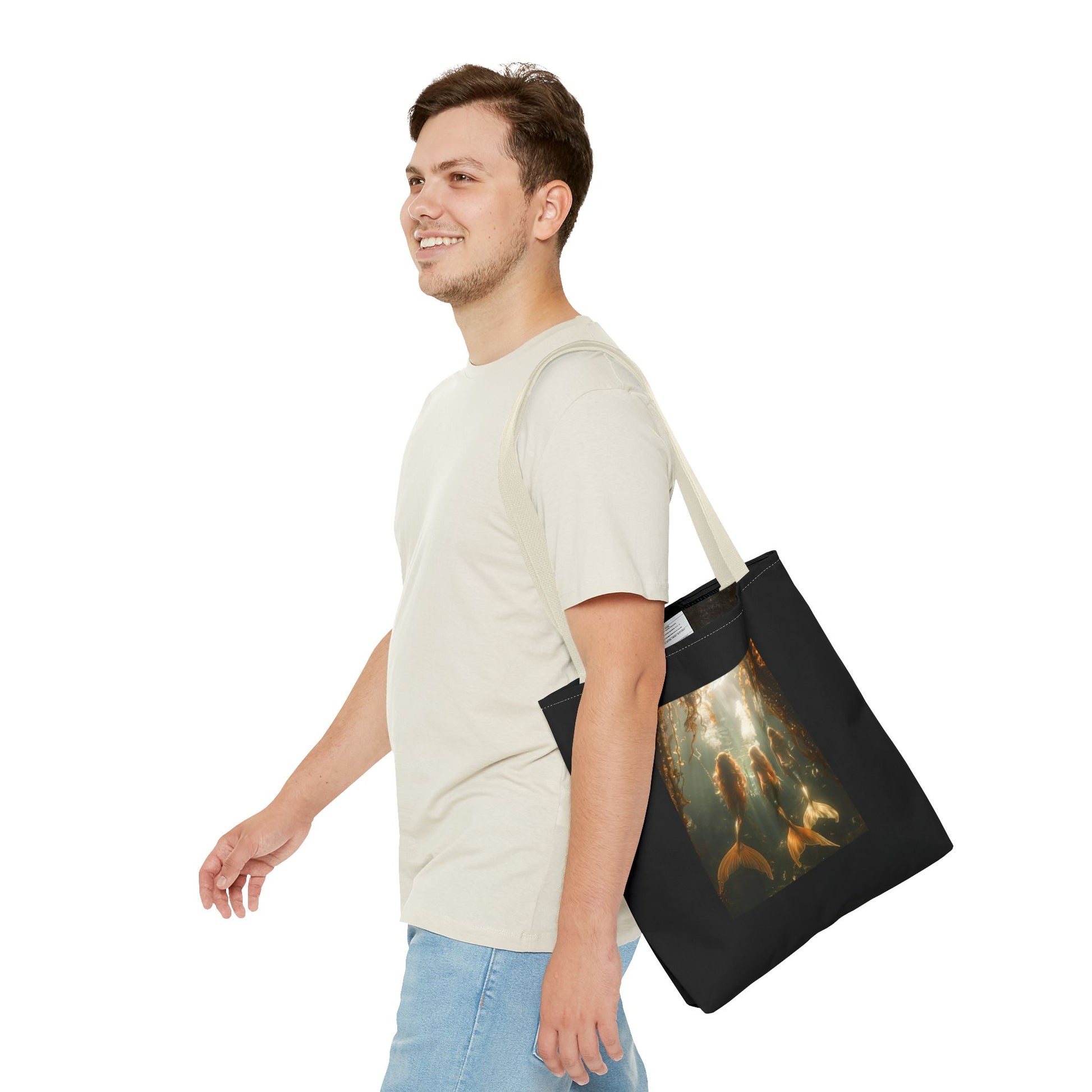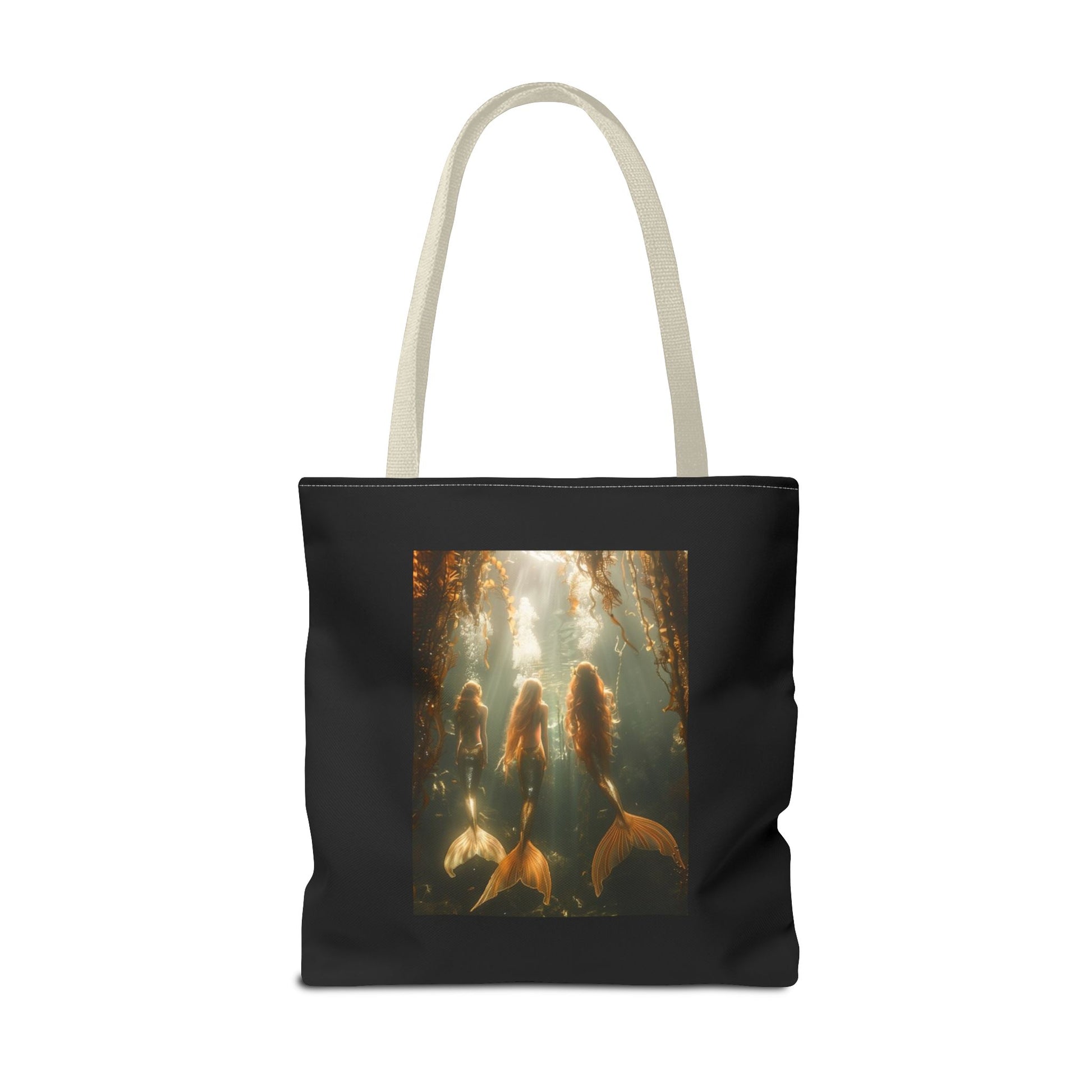 Three Mermaid Sisters, Black Tote Bag - 3 Sizes