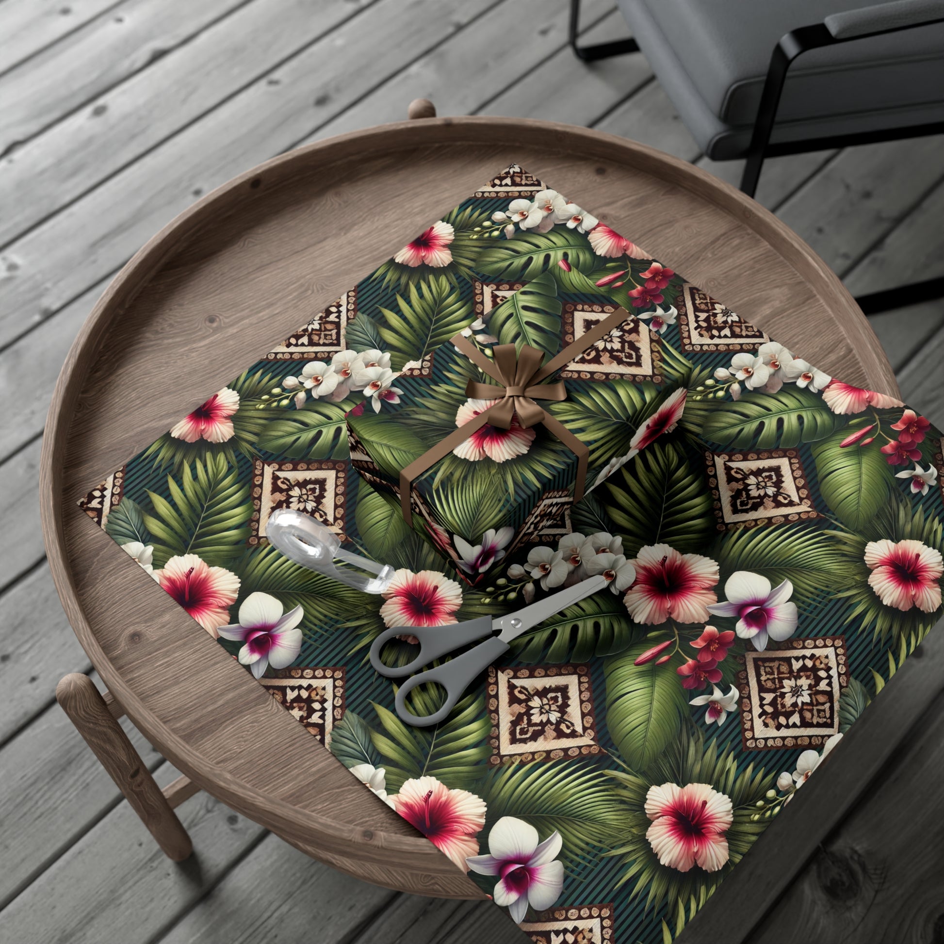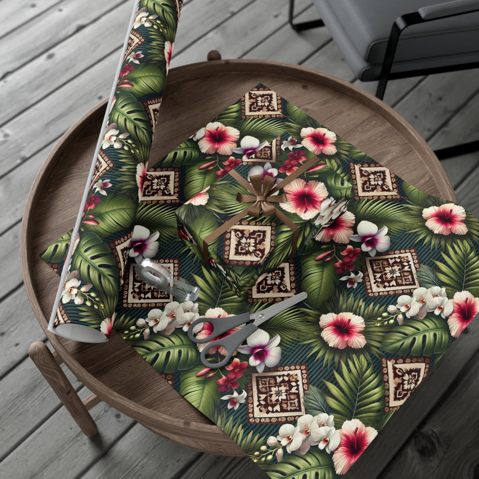 Wrapping Paper - Tropical Gift Wrap for All Occasions / 3 Sizes, 2 Finishes / Tiki Orchids