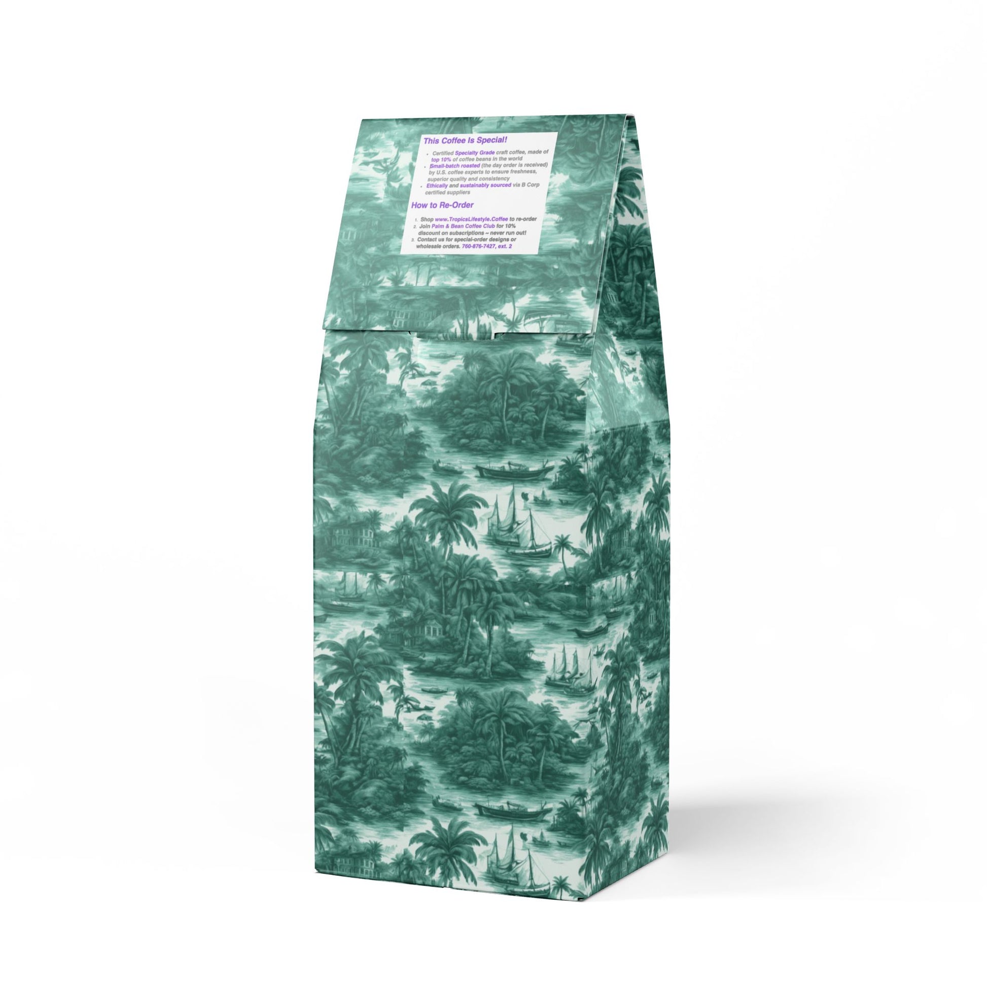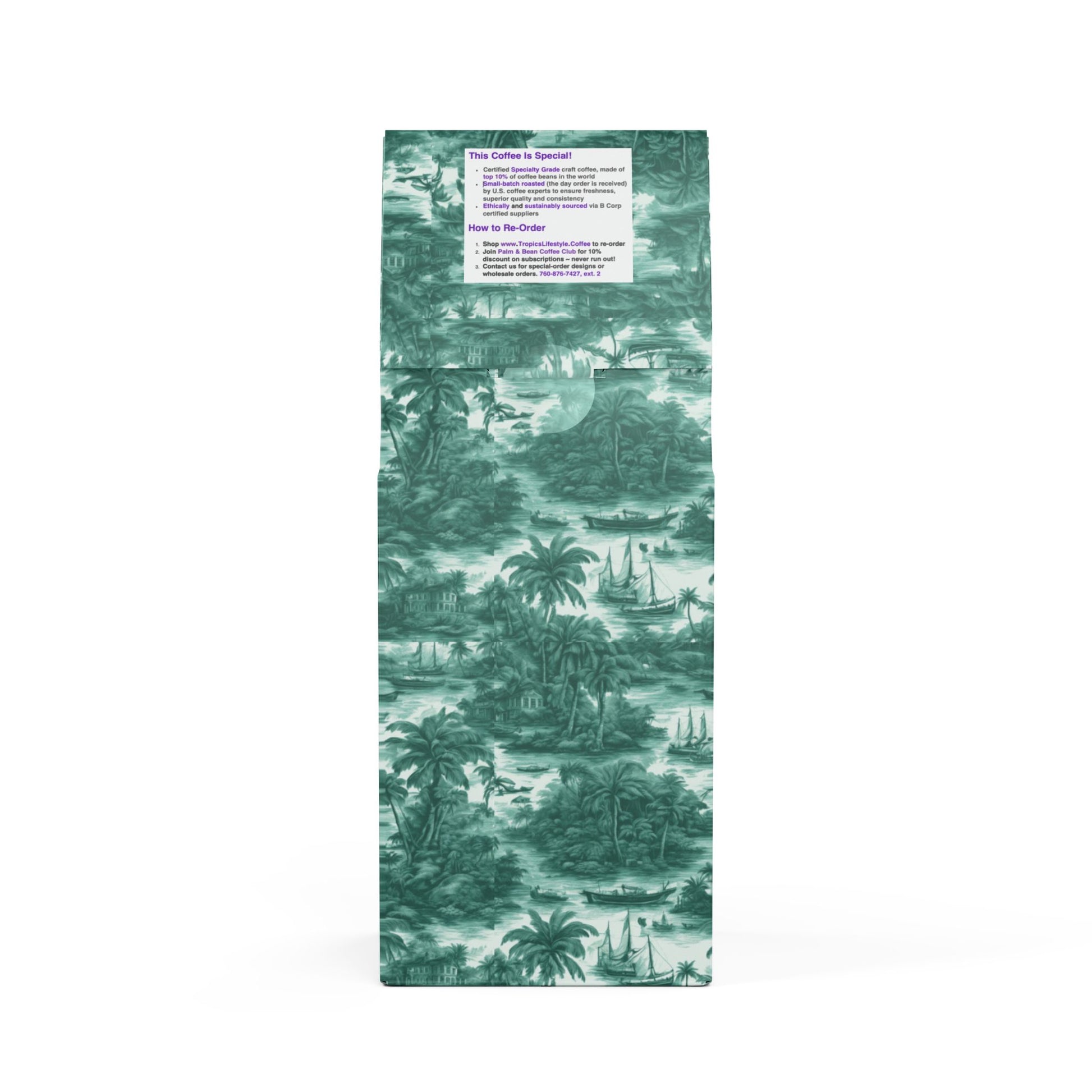 Rainforest Mist™ Single Origin DECAF (Medium Roast), Specialty Grade Craft Coffee / Tropical Toile, Evergreen